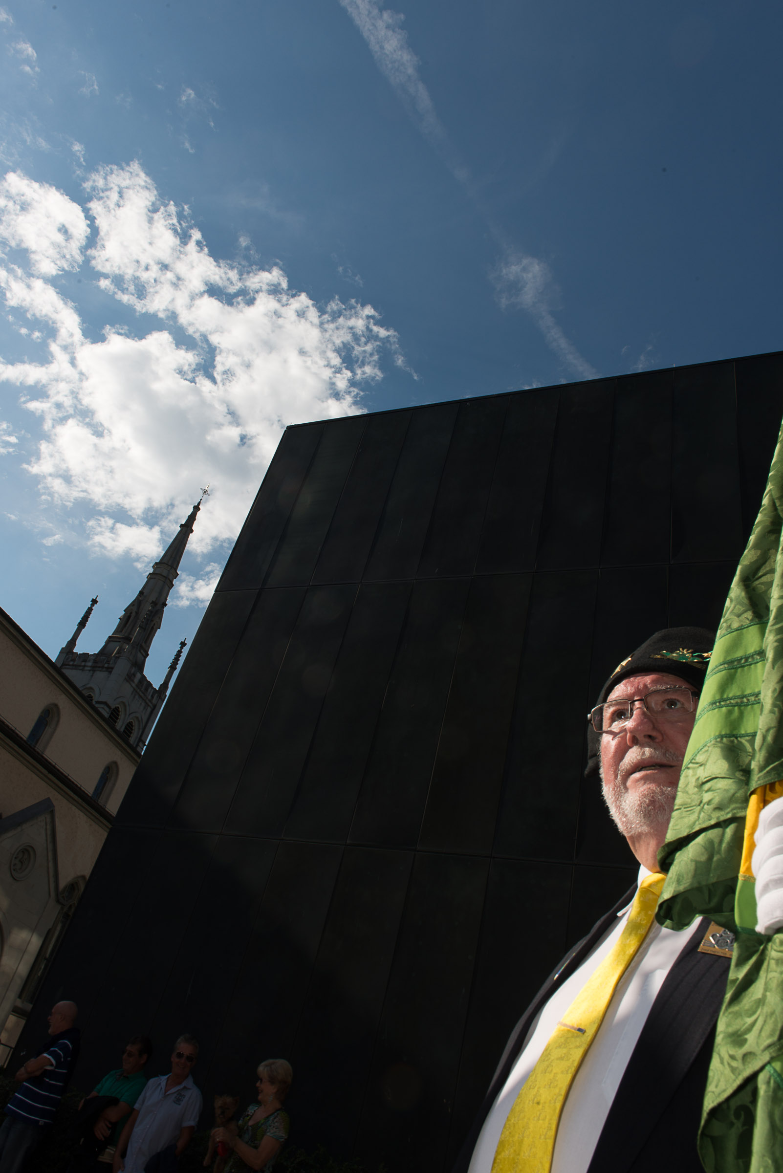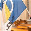 Der Bannerherr zu Fuss, Erich, darf das neue Banner entgegennehmen.