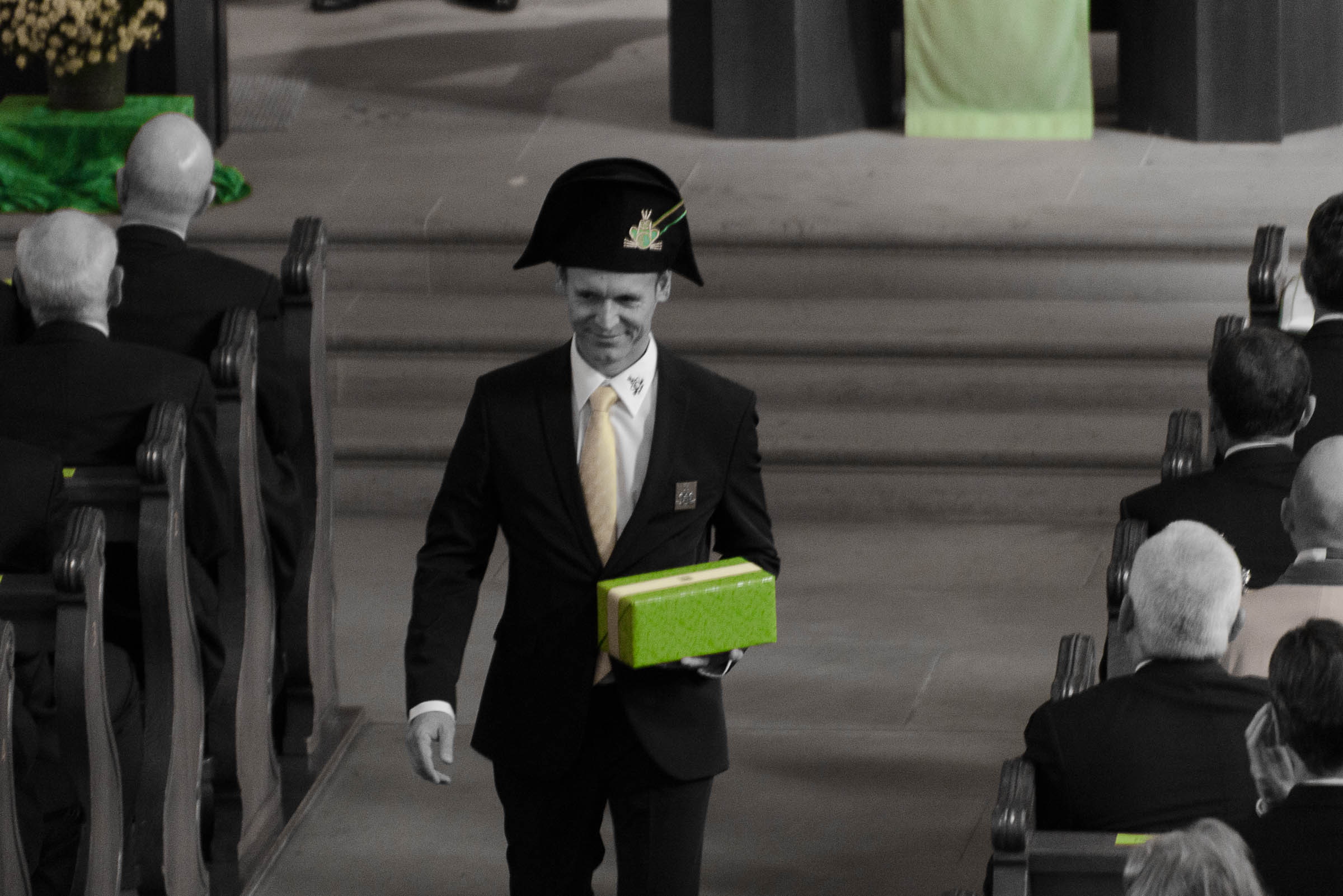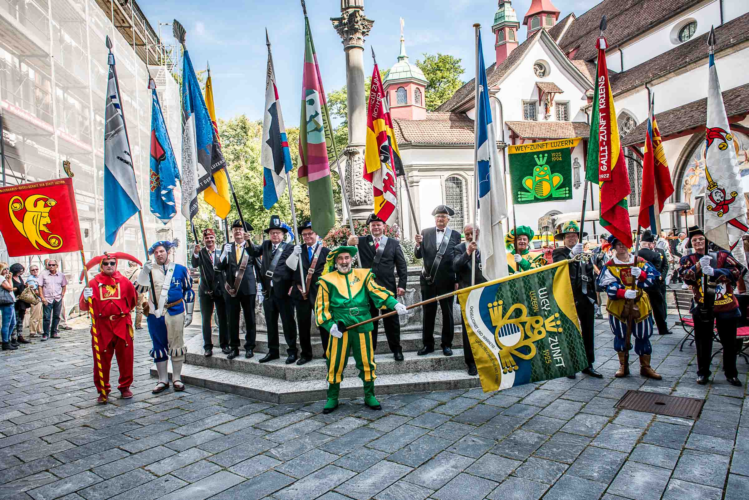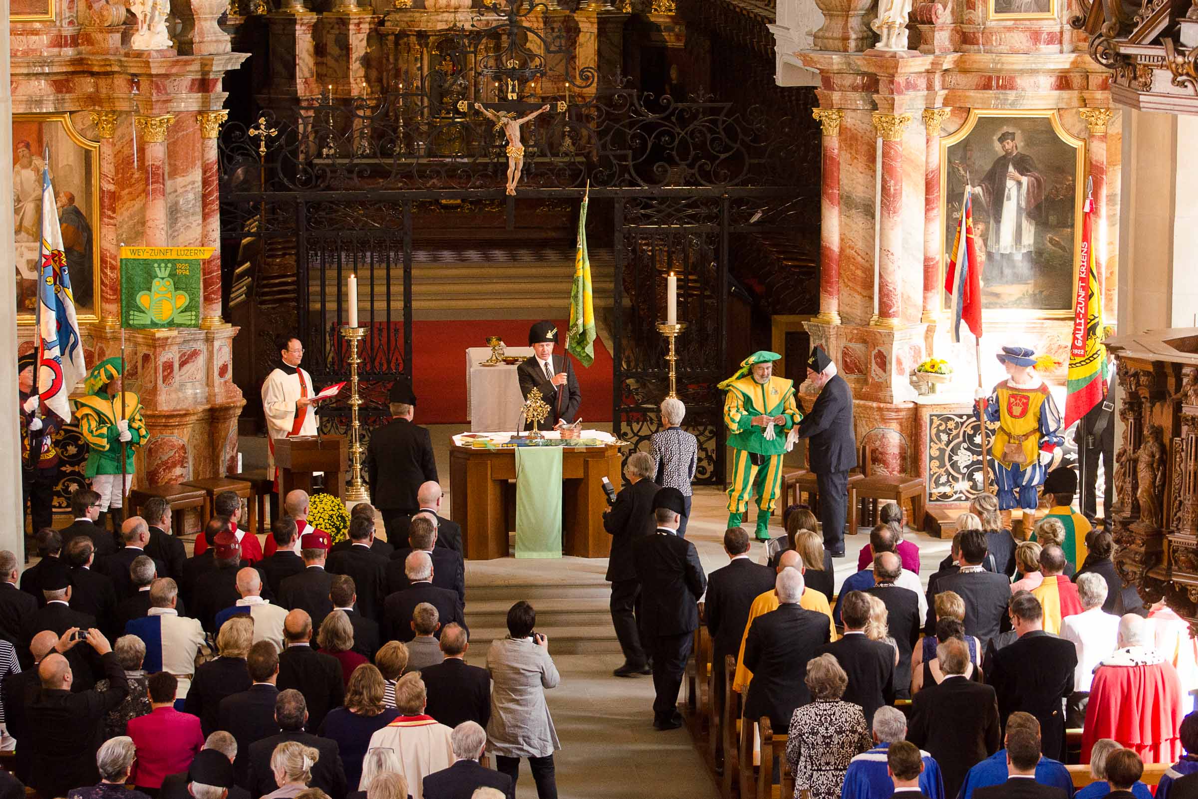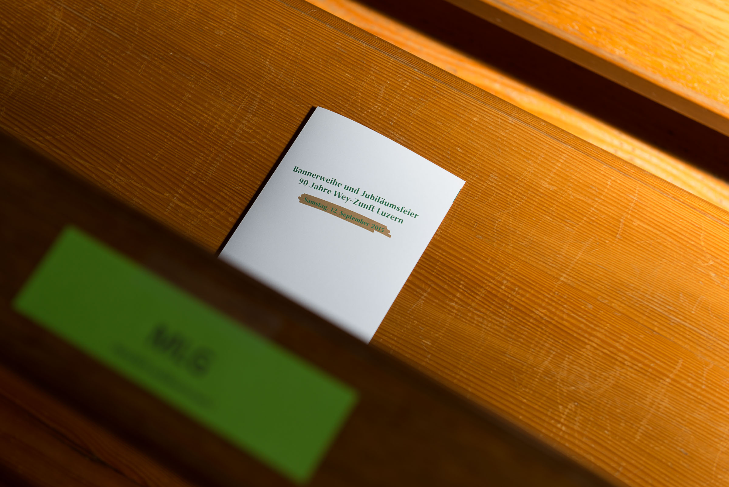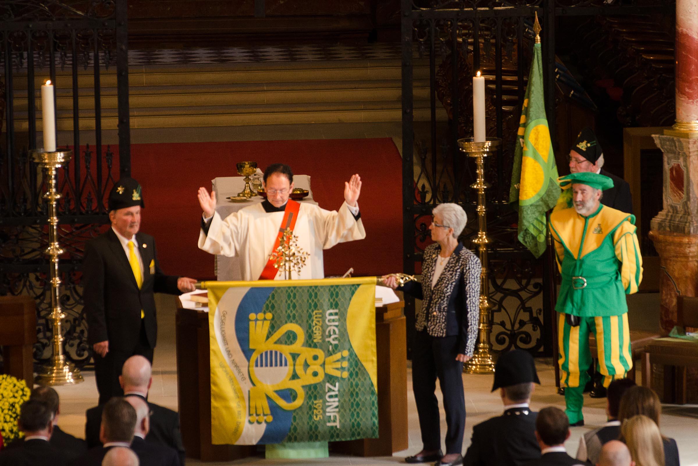 Pünktlich um 14.30 Uhr beginnt die Zeremonie der Bannerweihe in der Franziskanerkirche. Zwischen den zwei Photos liegen 40 Jahre. Zeit für ein neues Banner der Zunft mit Ursprung aus dem Weyquartier in Luzern.