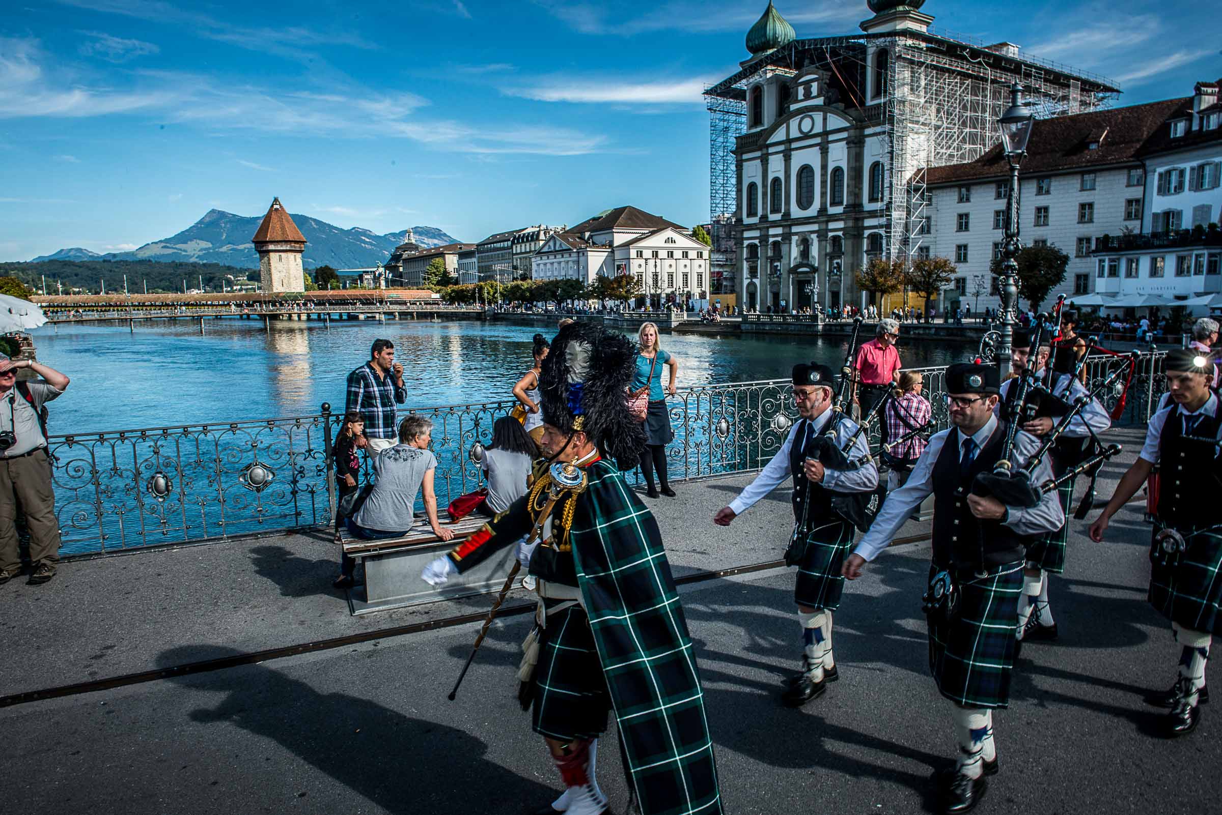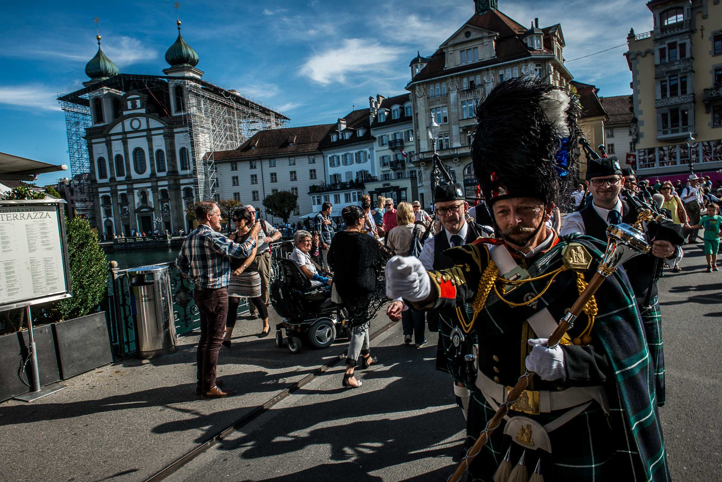 Der anschliessende Umzug durch die Altstadt Luzern, nach dem samstäglichen Ladenschluss, führte die Festgesellschaft via Grendel an photoschiesswilligen Chinesischen Touristen ins Hotel Schweizerhof.
