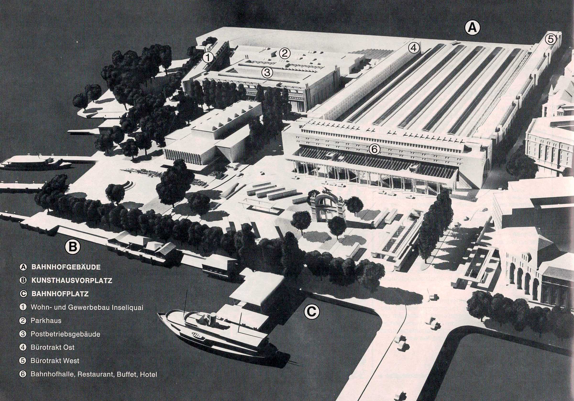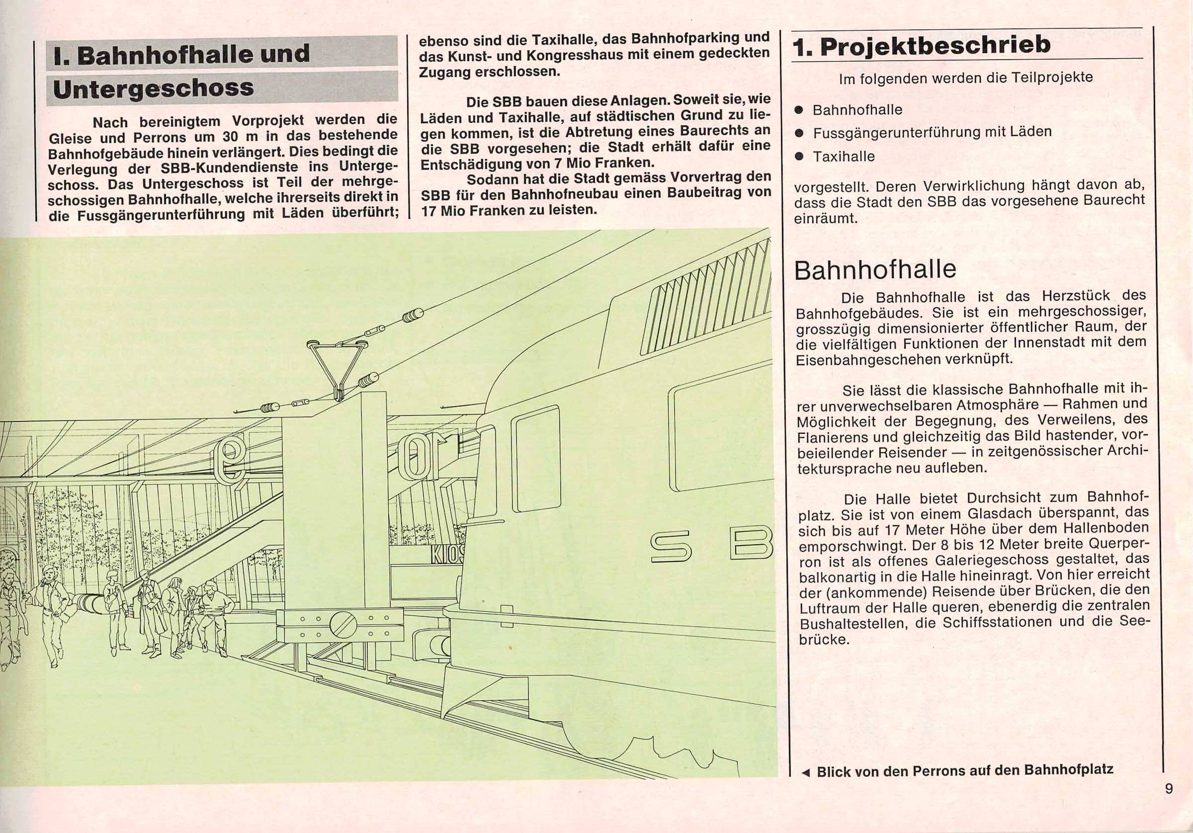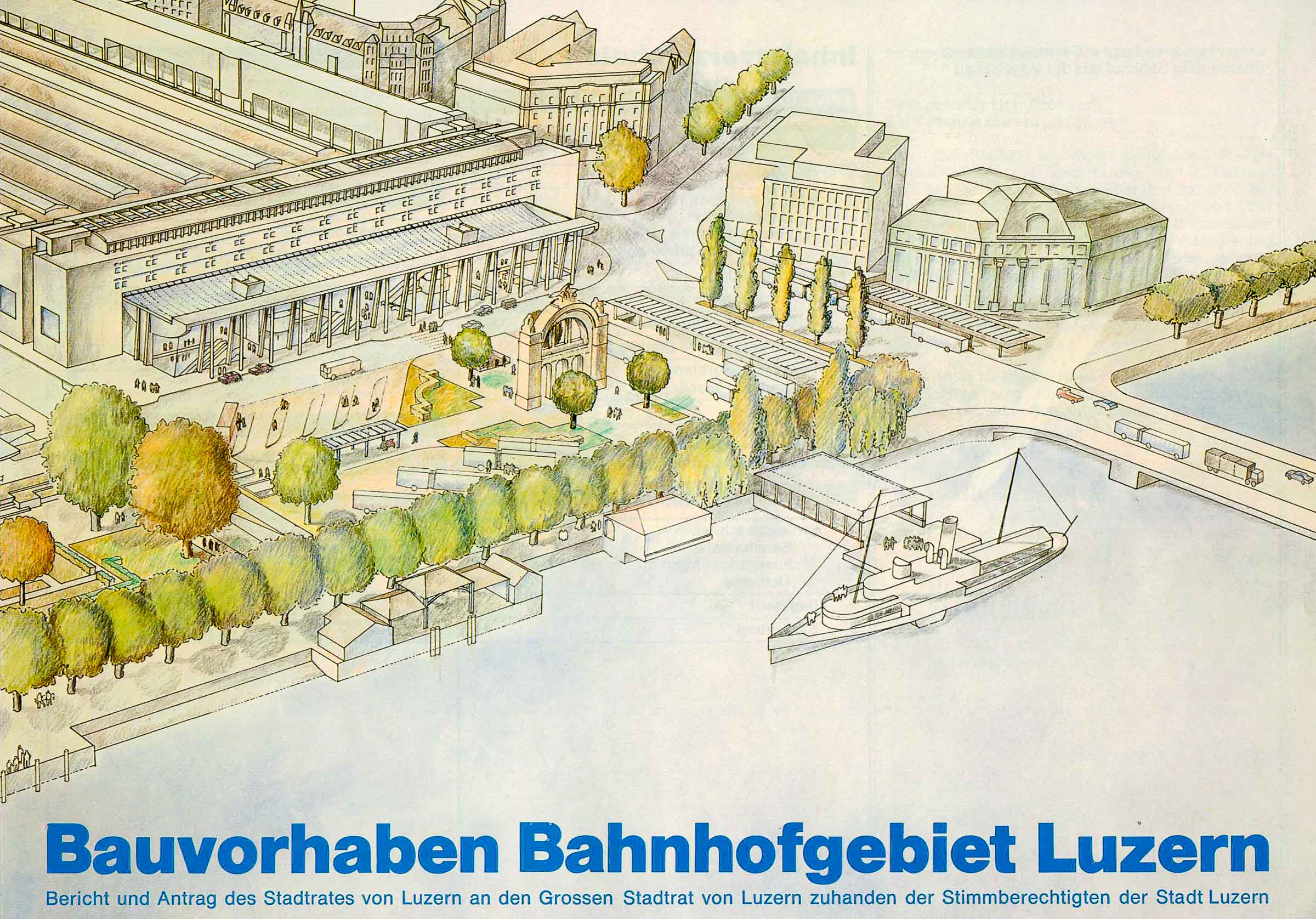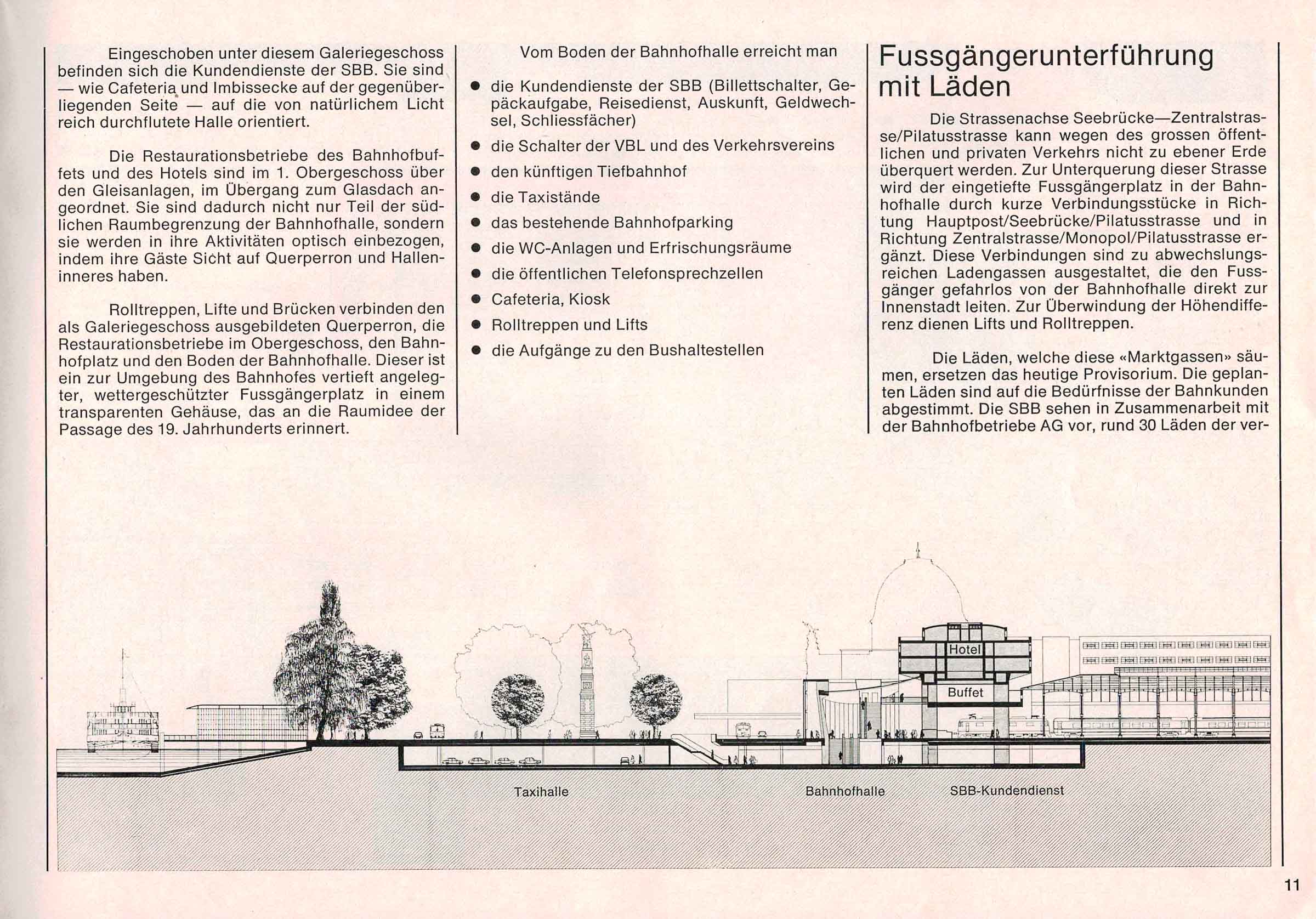 Der Text ist nachzulesen im B & A (Bericht und Antrag) von 1981 zum neuen Bahnhof in Luzern. Einige Passagen habe wir aus dem Text in den Blog Post hinzugefügt. Alle Texte sind in den Photos des Dokuments nachzulesen.