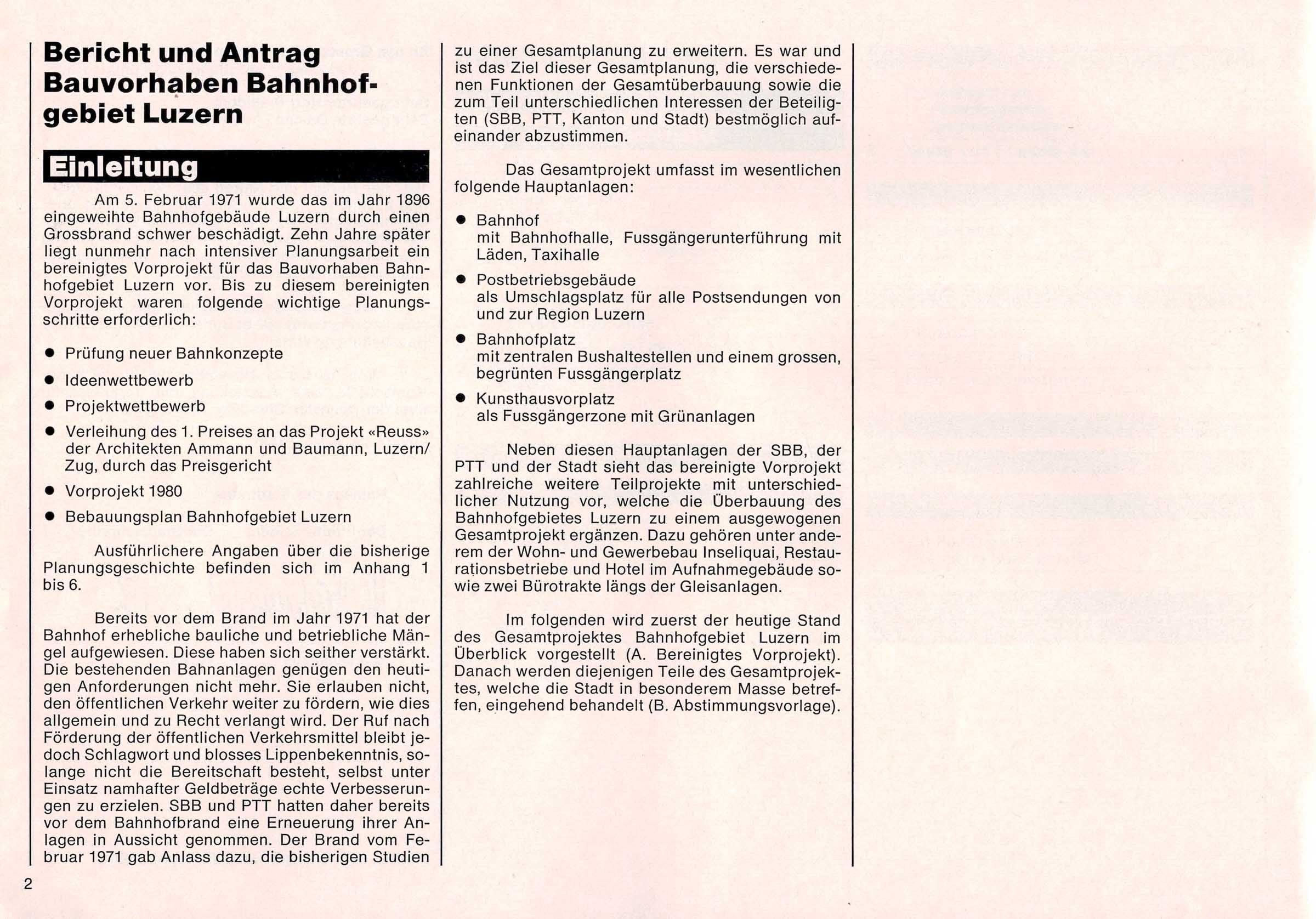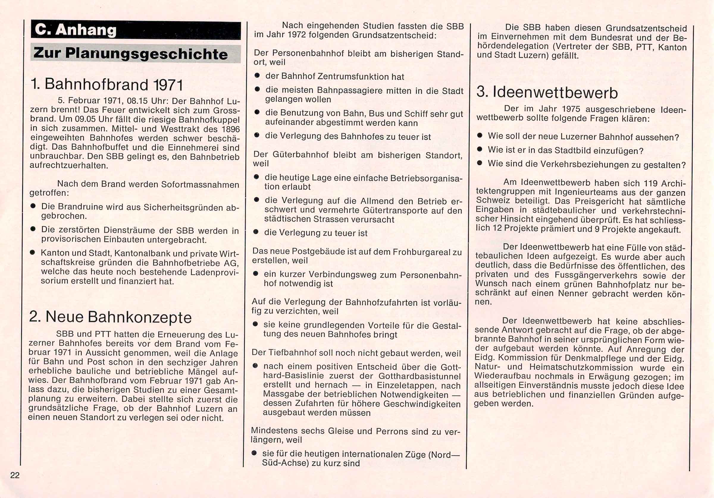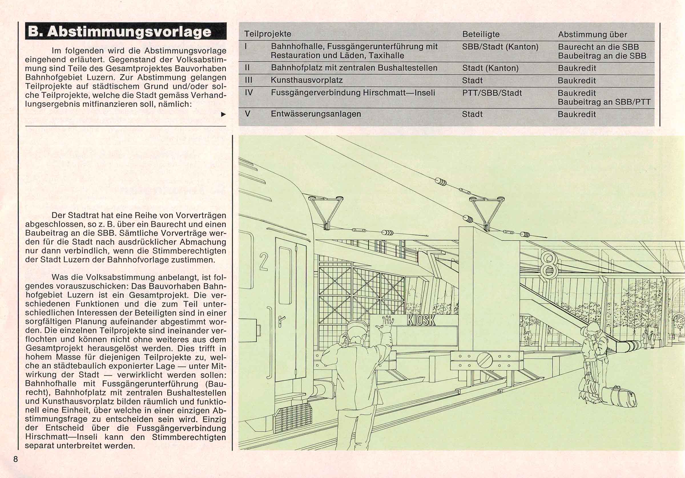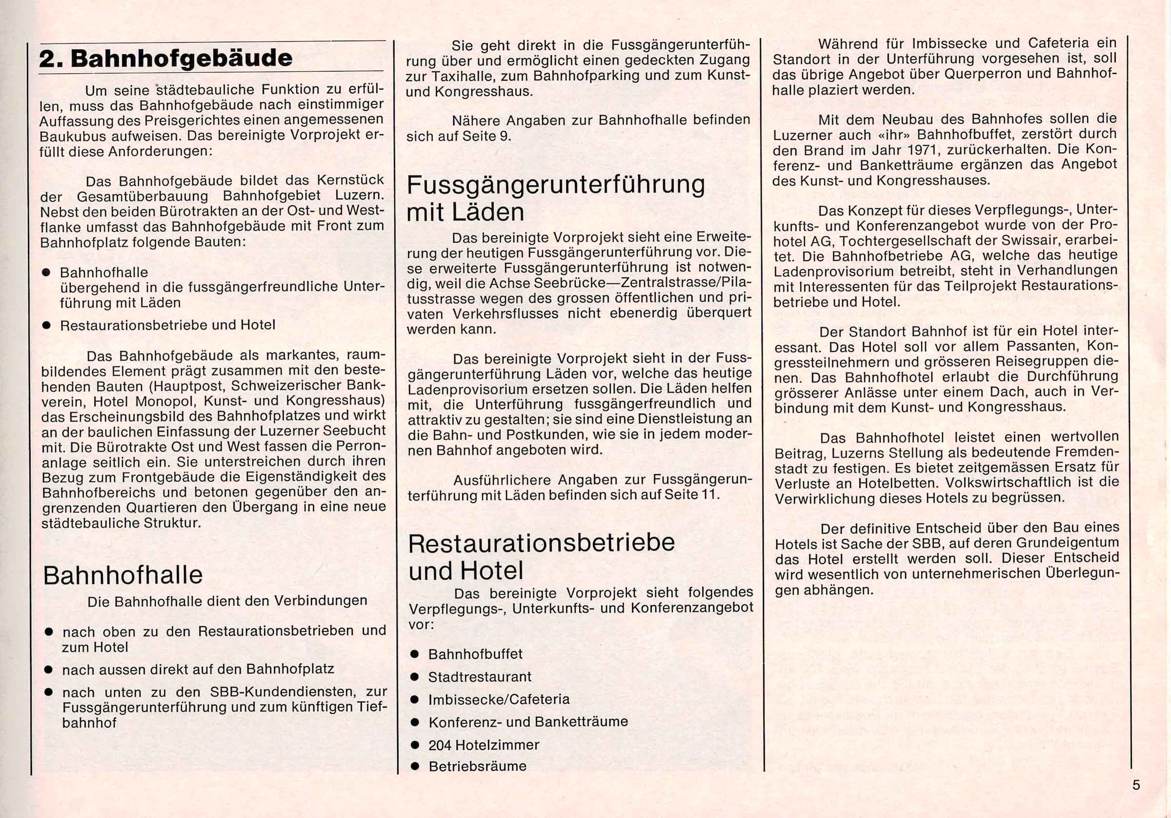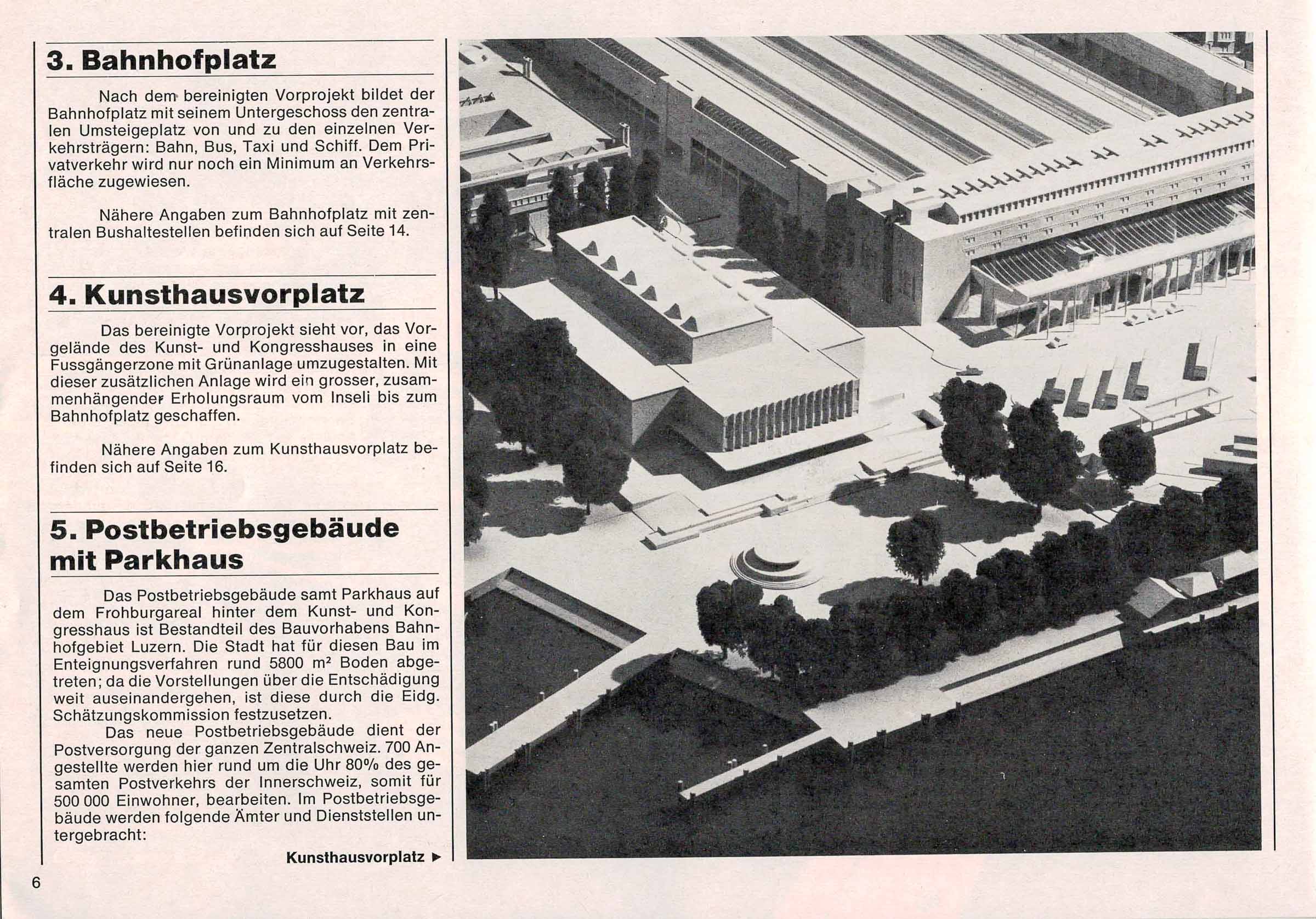 Der Text ist nachzulesen im B & A (Bericht und Antrag) von 1981 zum neuen Bahnhof in Luzern. Einige Passagen habe wir aus dem Text in den Blog Post hinzugefügt. Alle Texte sind in den Photos des Dokuments nachzulesen.