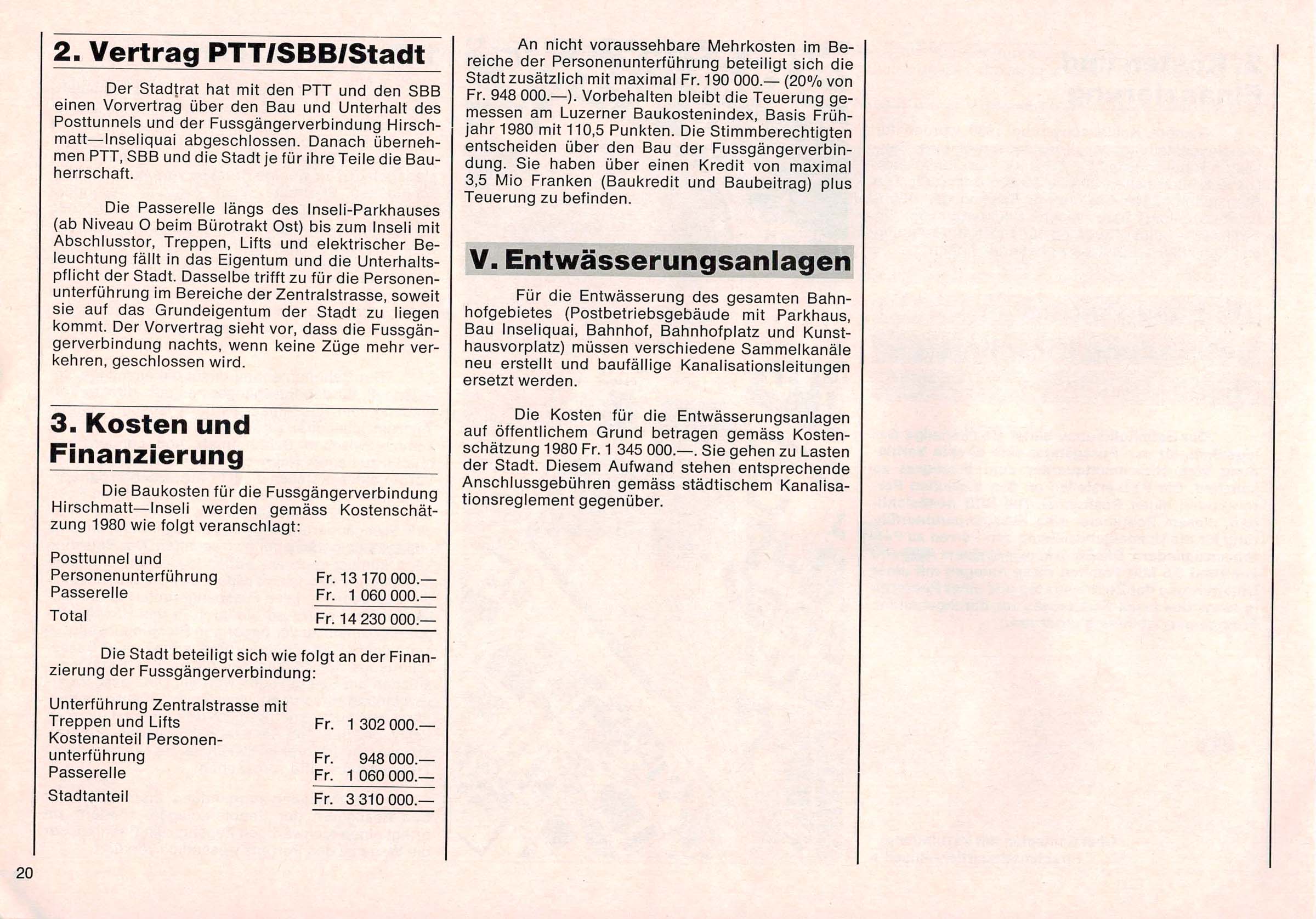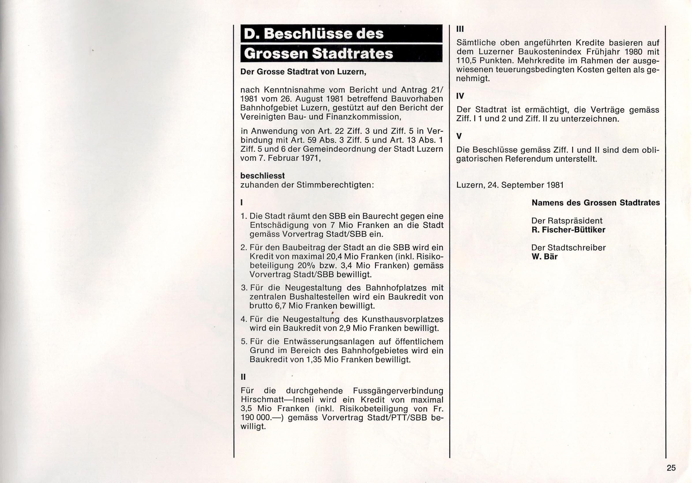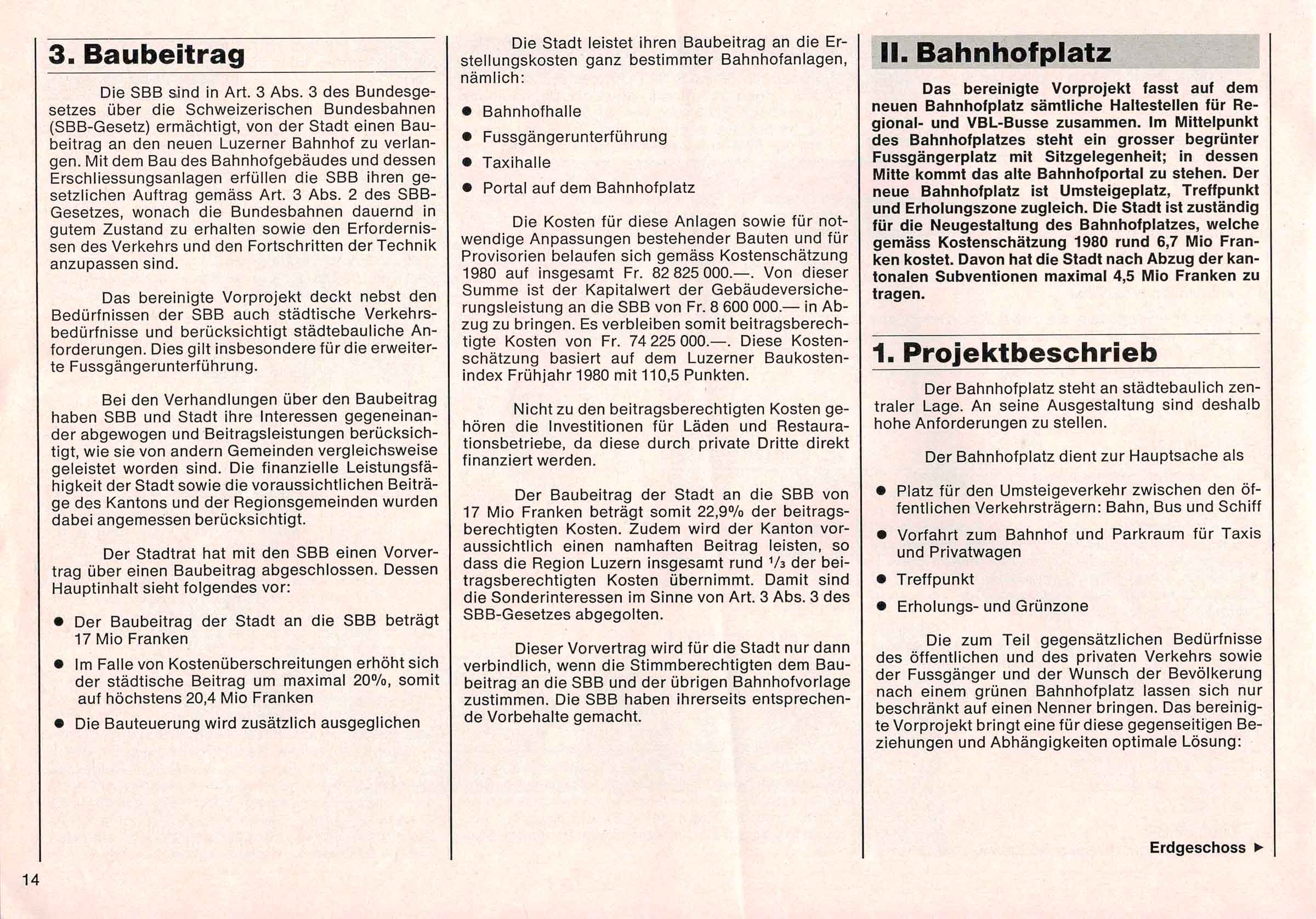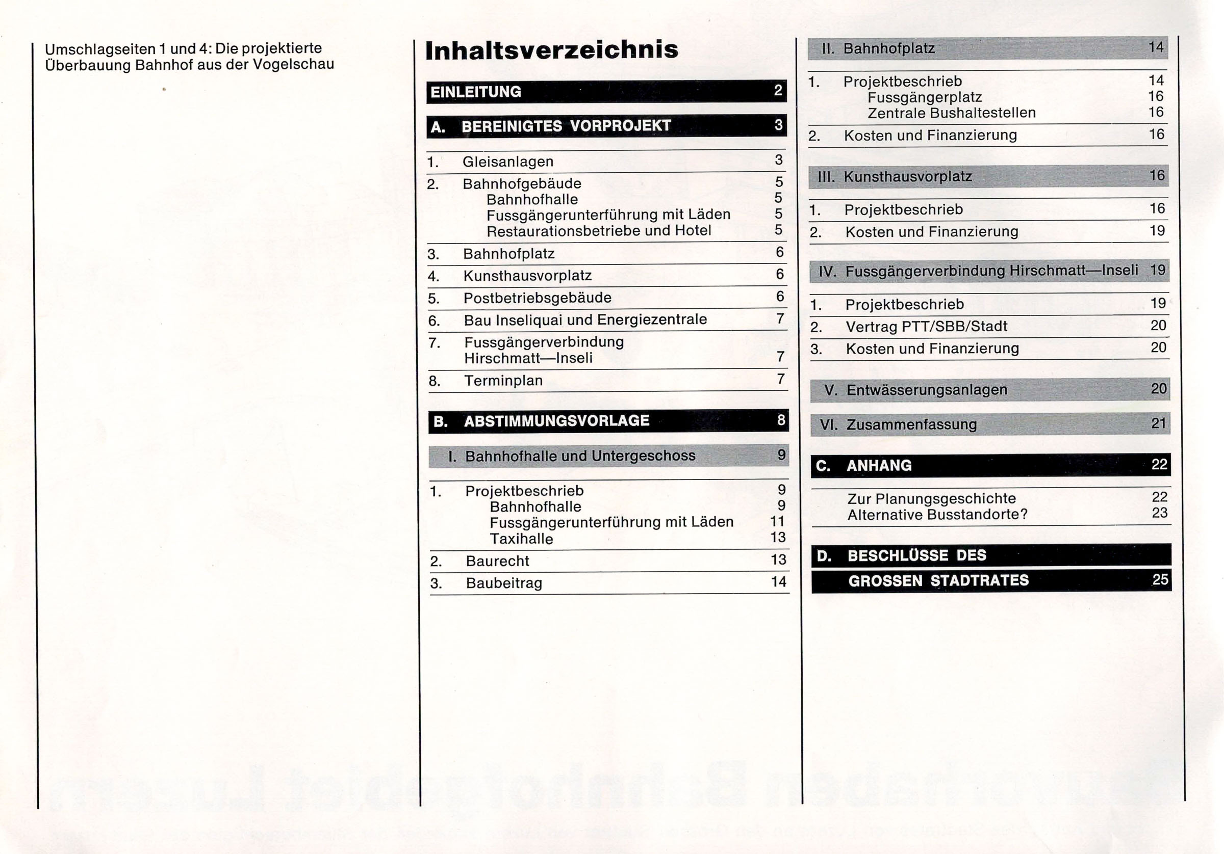 Der Text ist nachzulesen im B & A (Bericht und Antrag) von 1981 zum neuen Bahnhof in Luzern. Einige Passagen habe wir aus dem Text in den Blog Post hinzugefügt. Alle Texte sind in den Photos des Dokuments nachzulesen.