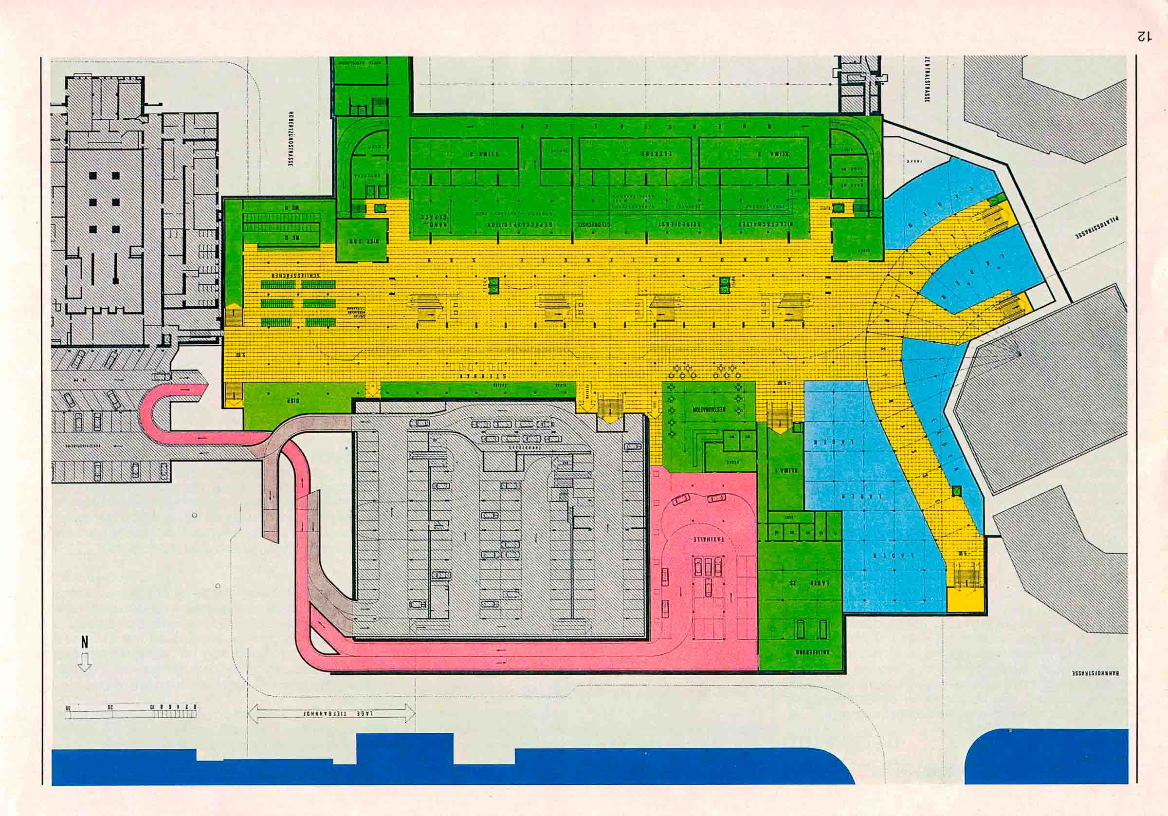 Die Taxihalle ist über eine separate Zu- und Wegfahrt, welche auch noch für die Belieferung der Läden benützt wird, an das Strassennetz angeschlossen.»