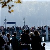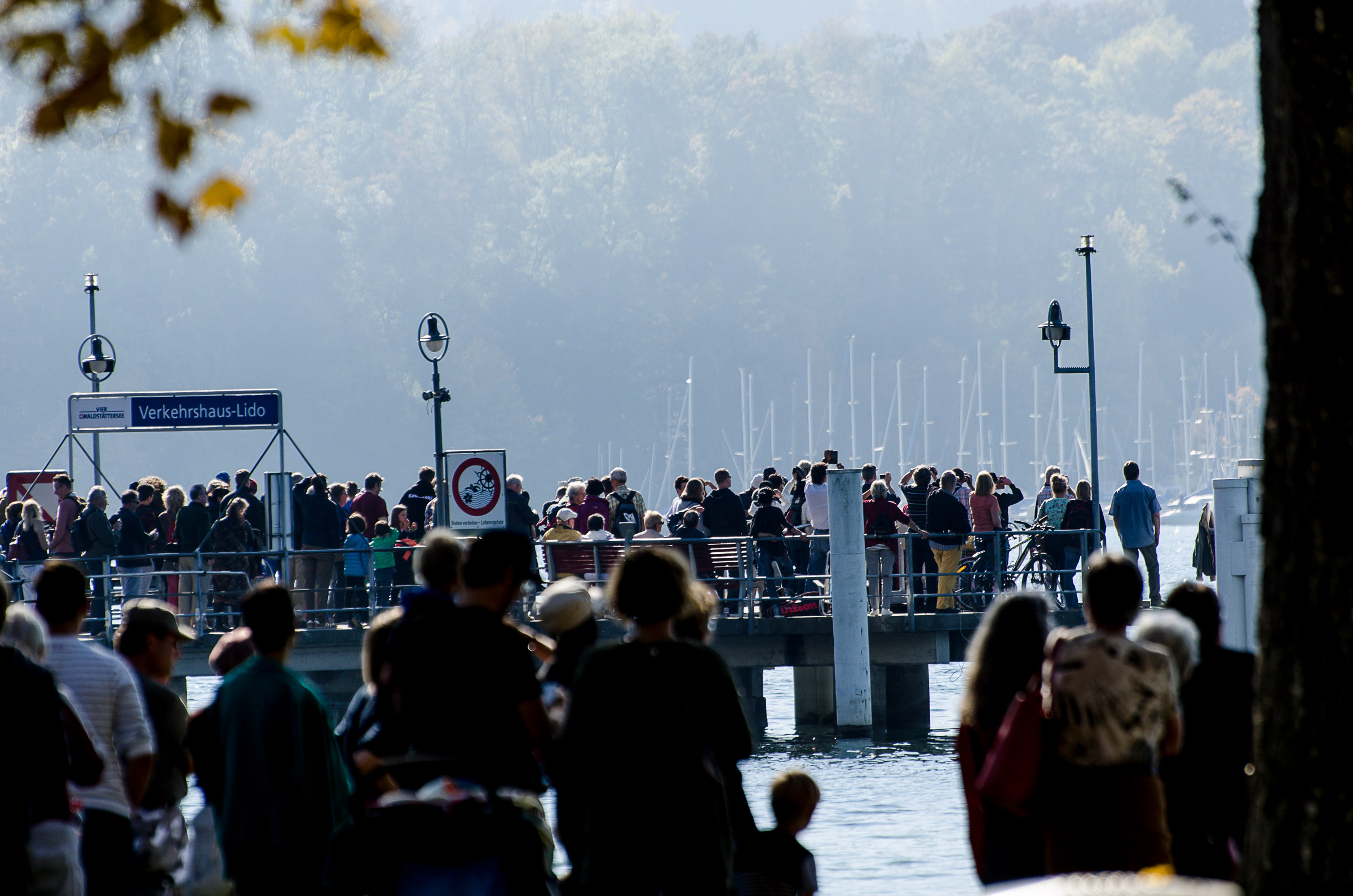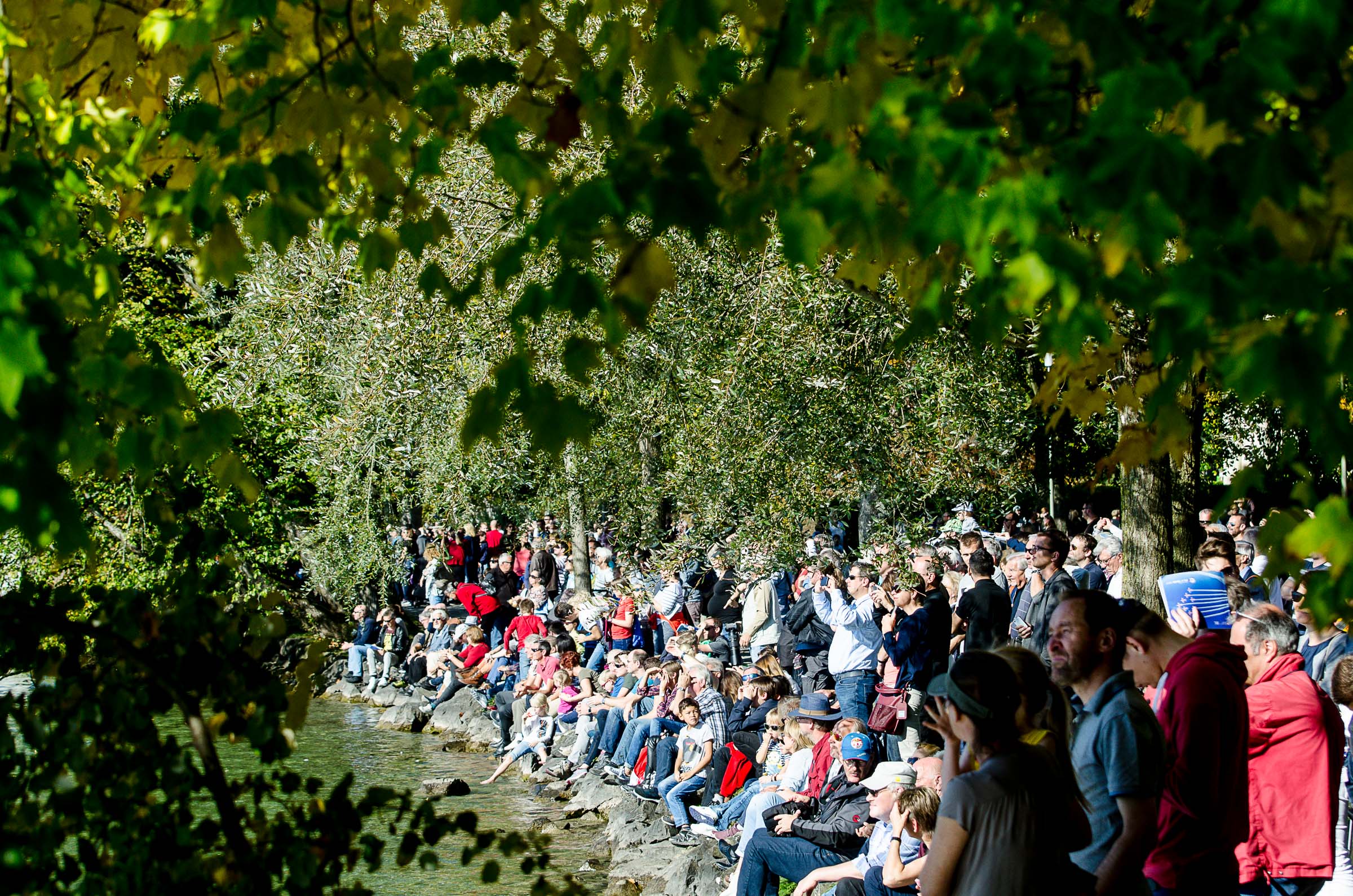 Die Dame sitzt am General-Guisan-Quai in Luzern und schaut Richtung Himmel. Die Air & Space Days 2017 im Verkehrshaus finden heute statt, vor ihr stehen die Leute dicht gedrängt am Ufer des Vierwaldstättersees.