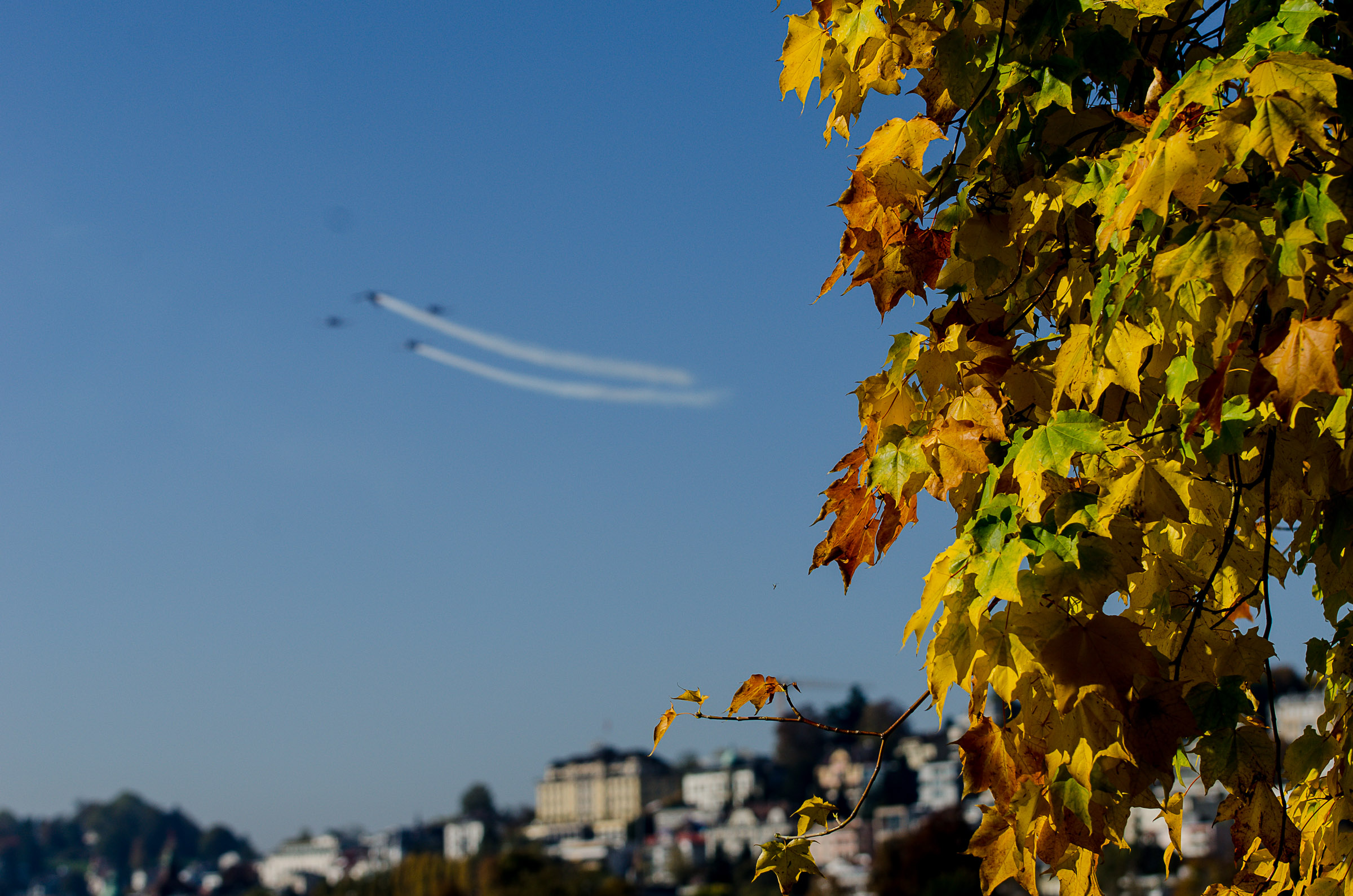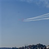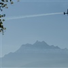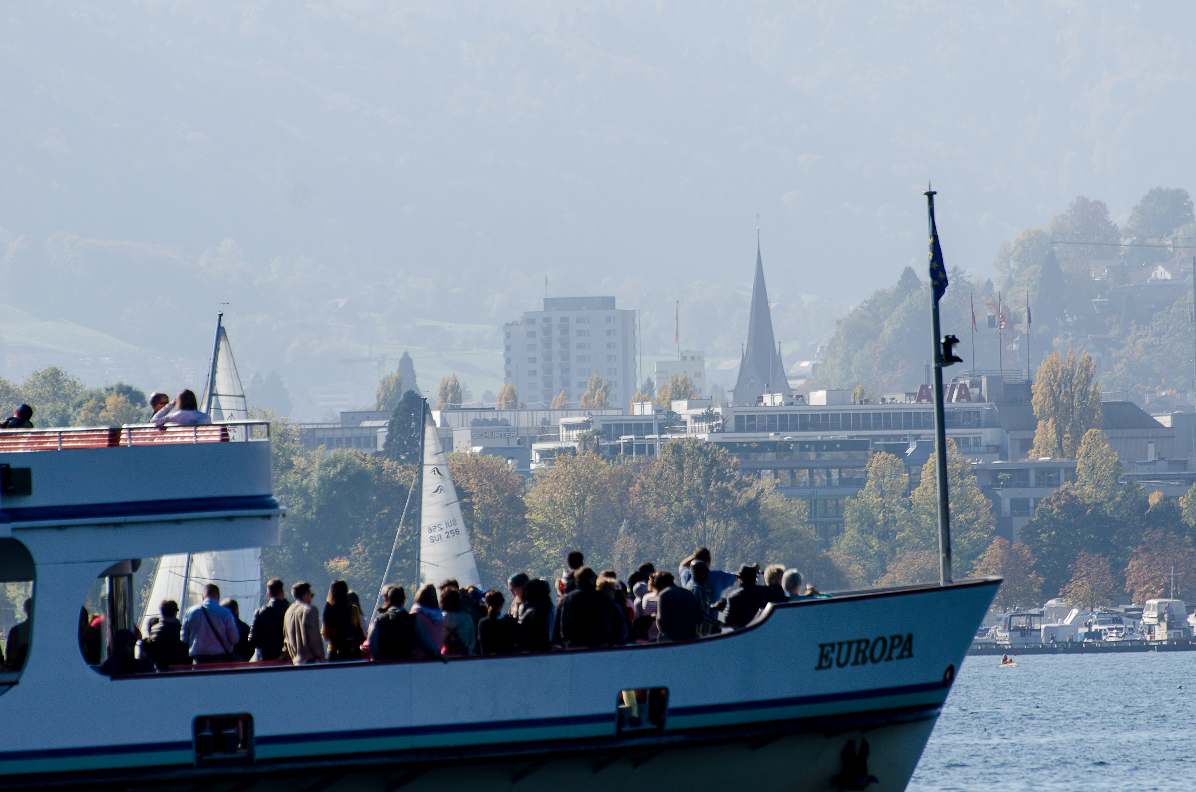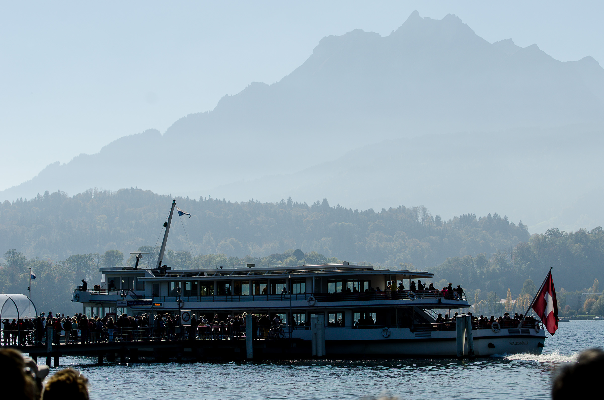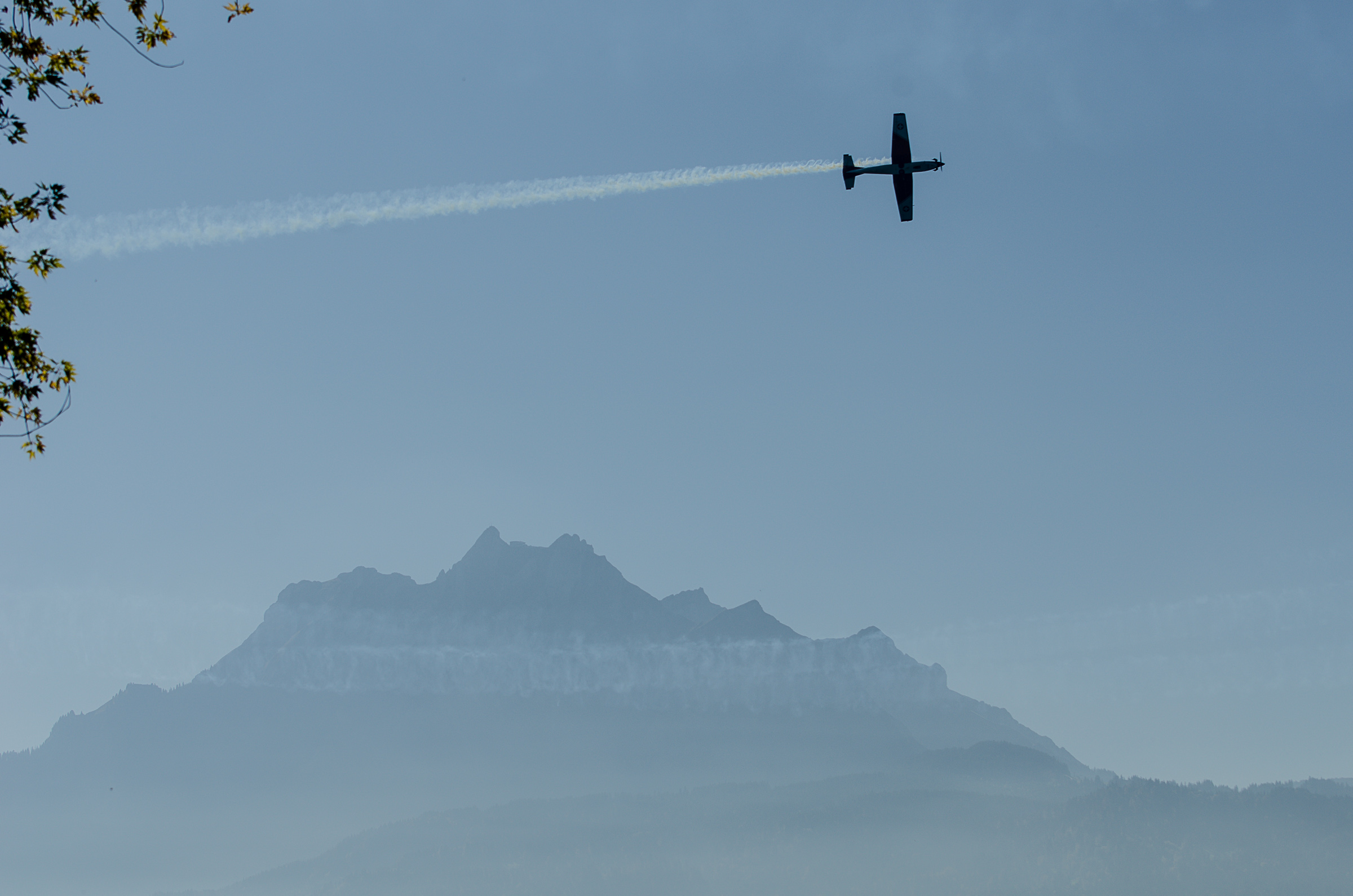 Ab 14:15 fliegt das PC-7 Team über die Köpfe der wartenden Zuschauer. Der Photograph neben mir schaut, wo es das beste Luzerner PC7 Photo gibt. Die Ansage, dass die Show pünktlich beginnt, lässt die angereisten Zuschauer, ob 3 Stunden mit der Bahn angereist aus Schaffhausen oder Besucher aus dem Würzenbachquartier, hinter dem Verkehrshaus, die Augen in den Himmel schweifen.