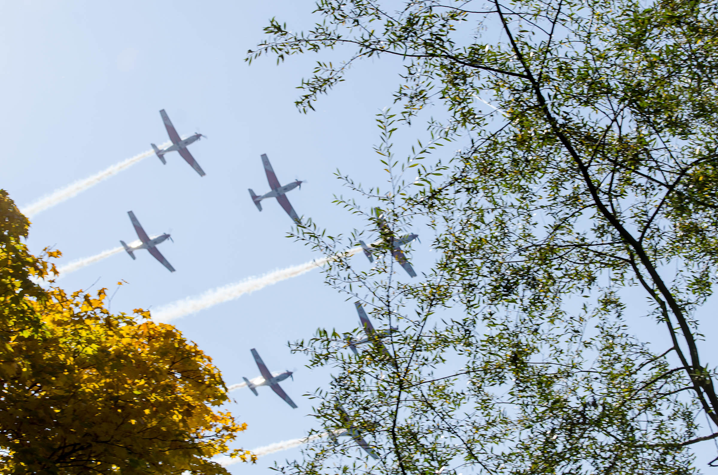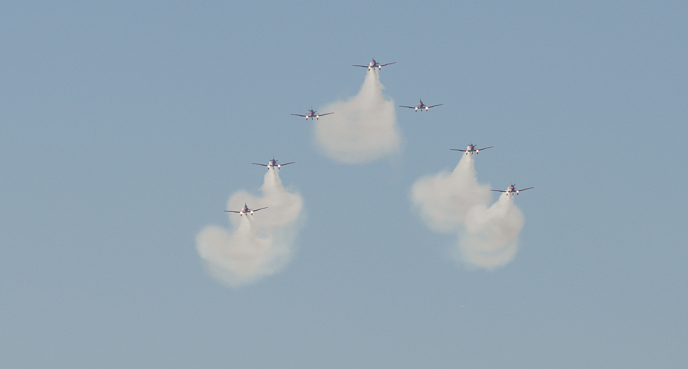 Ein Herz mit ausgefahrenen Landeklappen oder andere Formationen entzücken die Zuschauer.