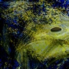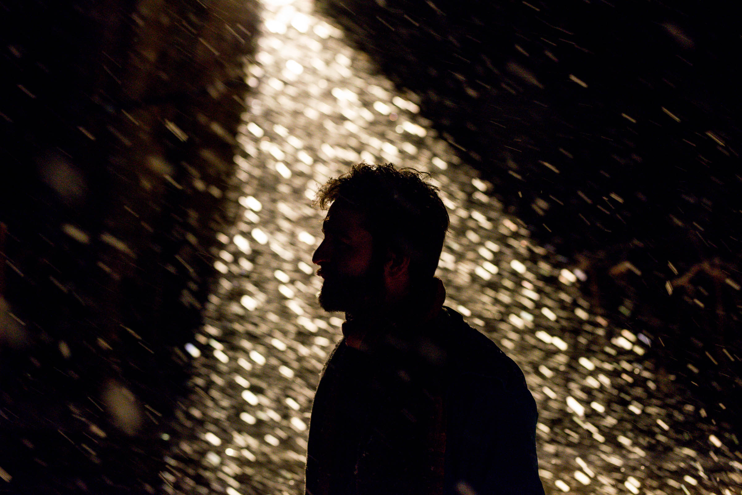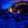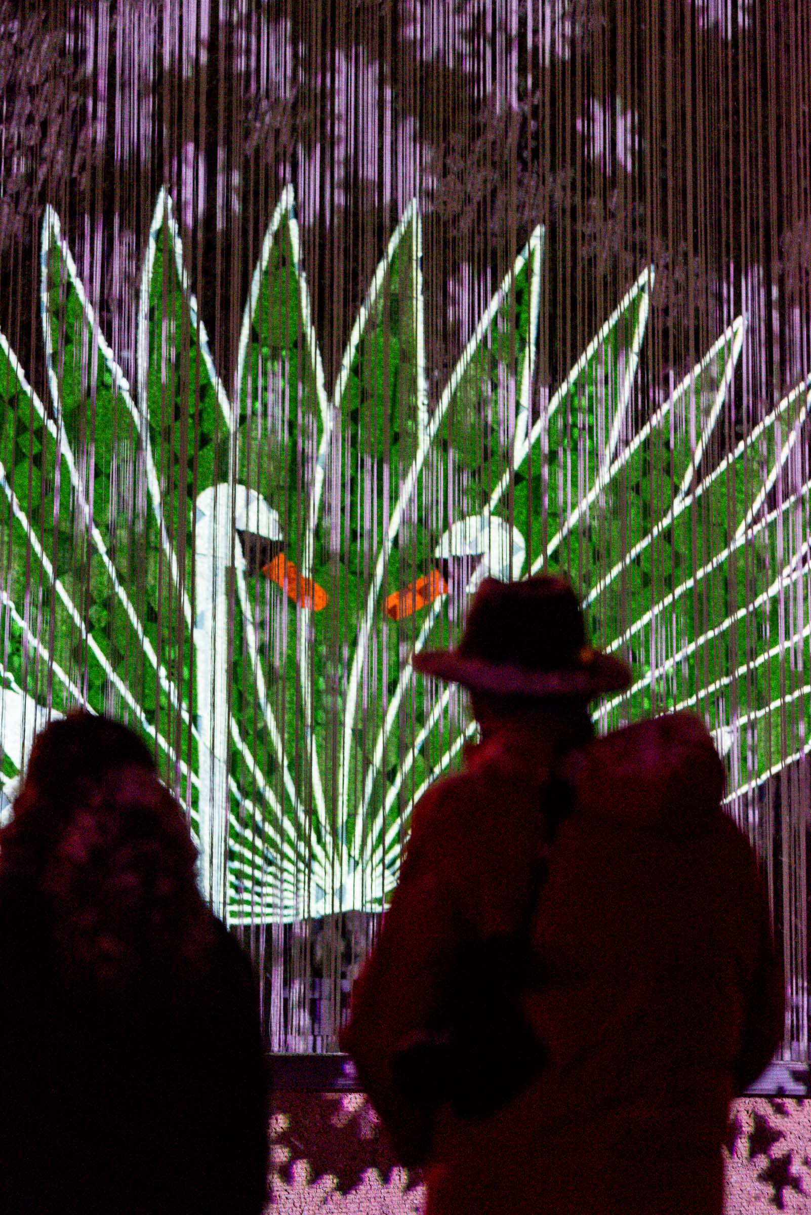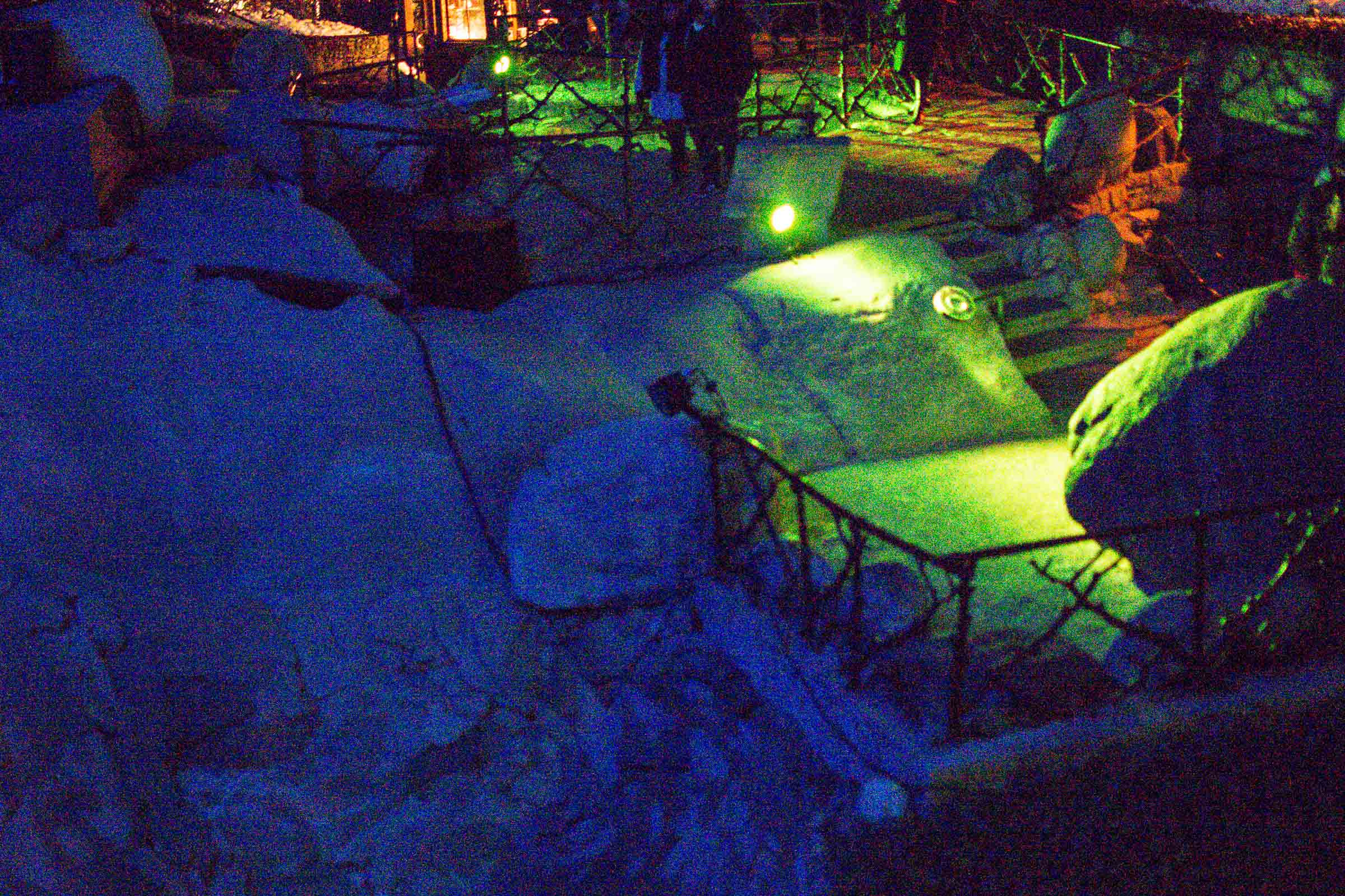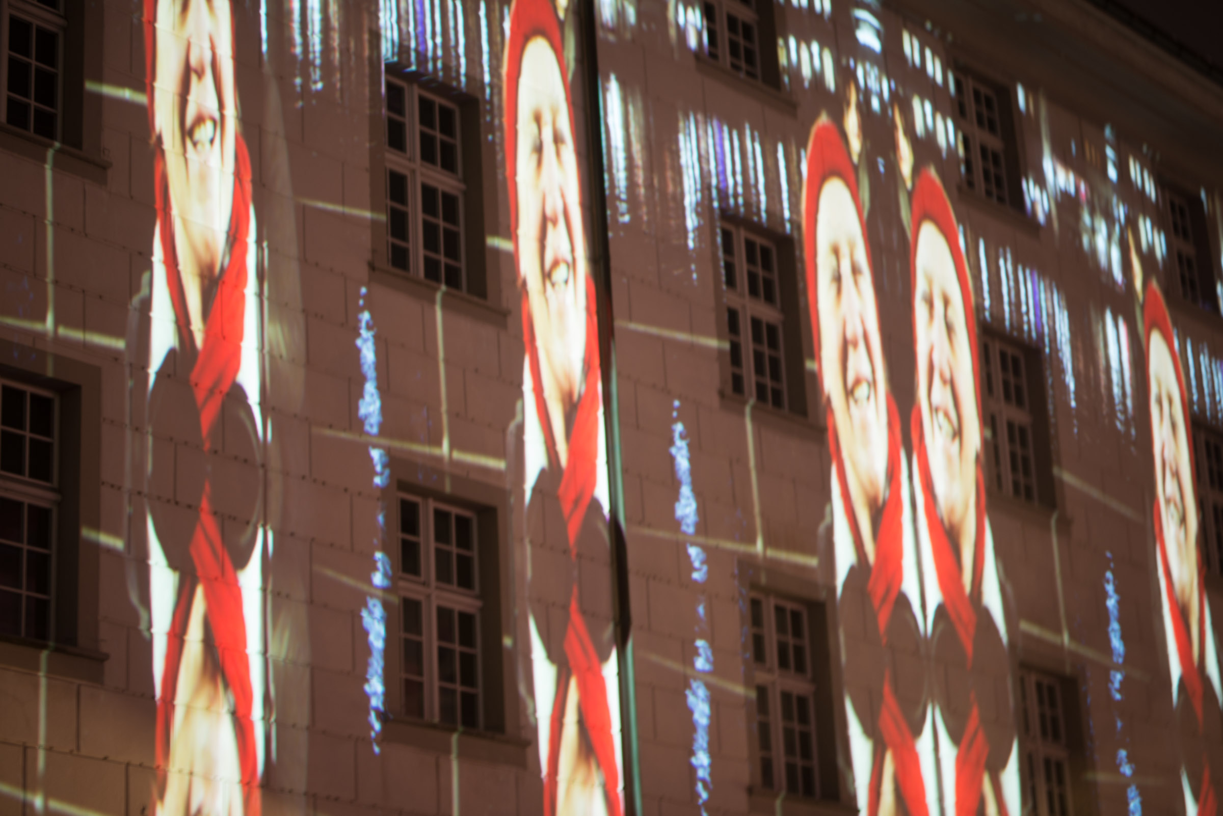 Die Umgebung des Schneemann "Olaf" auf der Bühne im Musipavillon, lässt sich mittels einer Kugel interaktiv mitgestalten. Farben und Formen wirbeln durch die Nacht.