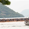 Lange Warteschlangen und 30 Grad im Schatten. Jetzt geht's weiter durch die Gassen, über einen Steg auf den floating pier. Damit nicht zu viele Personen gleichzeitig auf das ohne Geländer im Wasser schaukelenden Pier gelangen, sind pro Stunde höchstens 11'000 Personen zugelassen.
