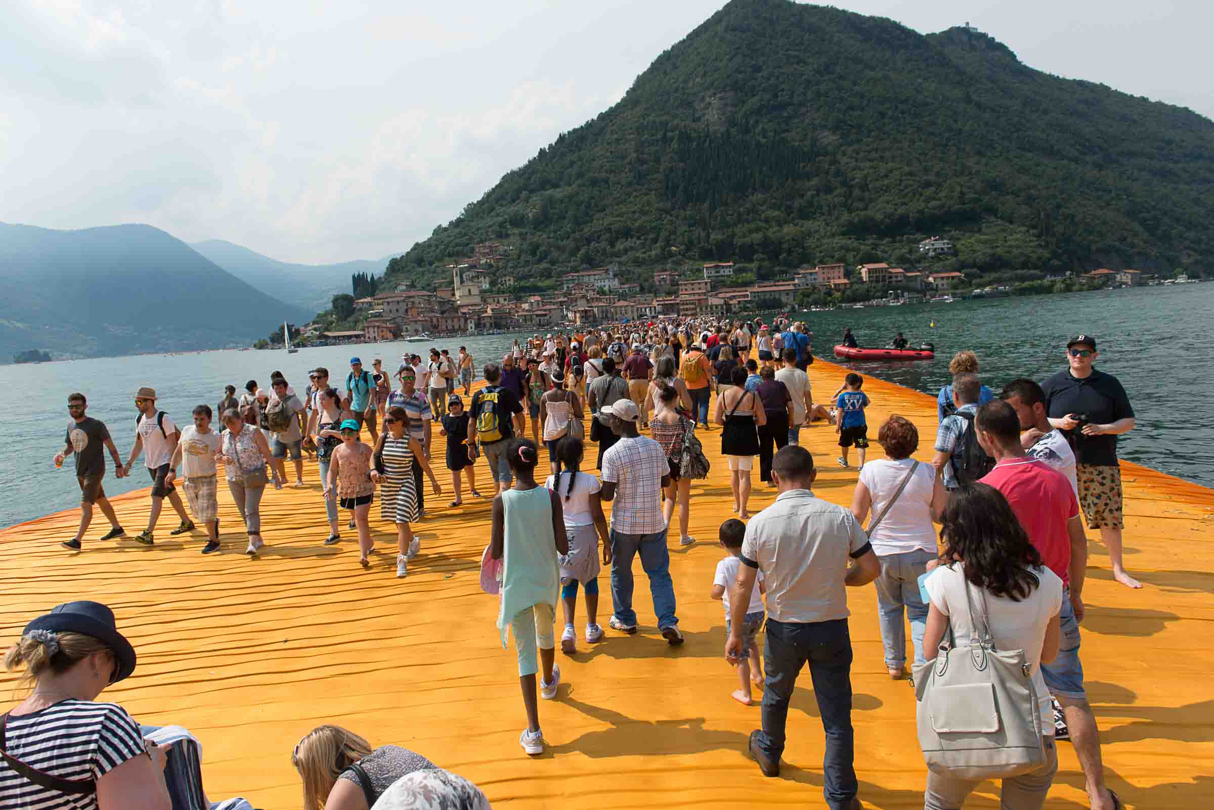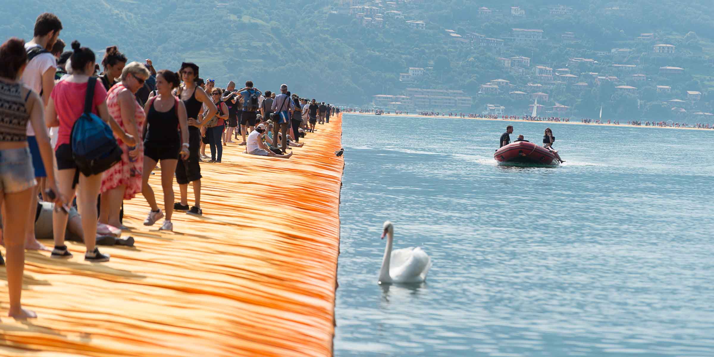 Während fast drei Wochen wurde auf dem norditalienischen See Iseo, der Weg über den See geöffnet. Über eine Million Schaulustige besuchten das vom Verpackungs-Künstler Christo initierte Projekt. Die Idee die zuerst in zwei Ländern gescheitert ist, wurde innerhalb eines Jahres geplant und umgesetzt.