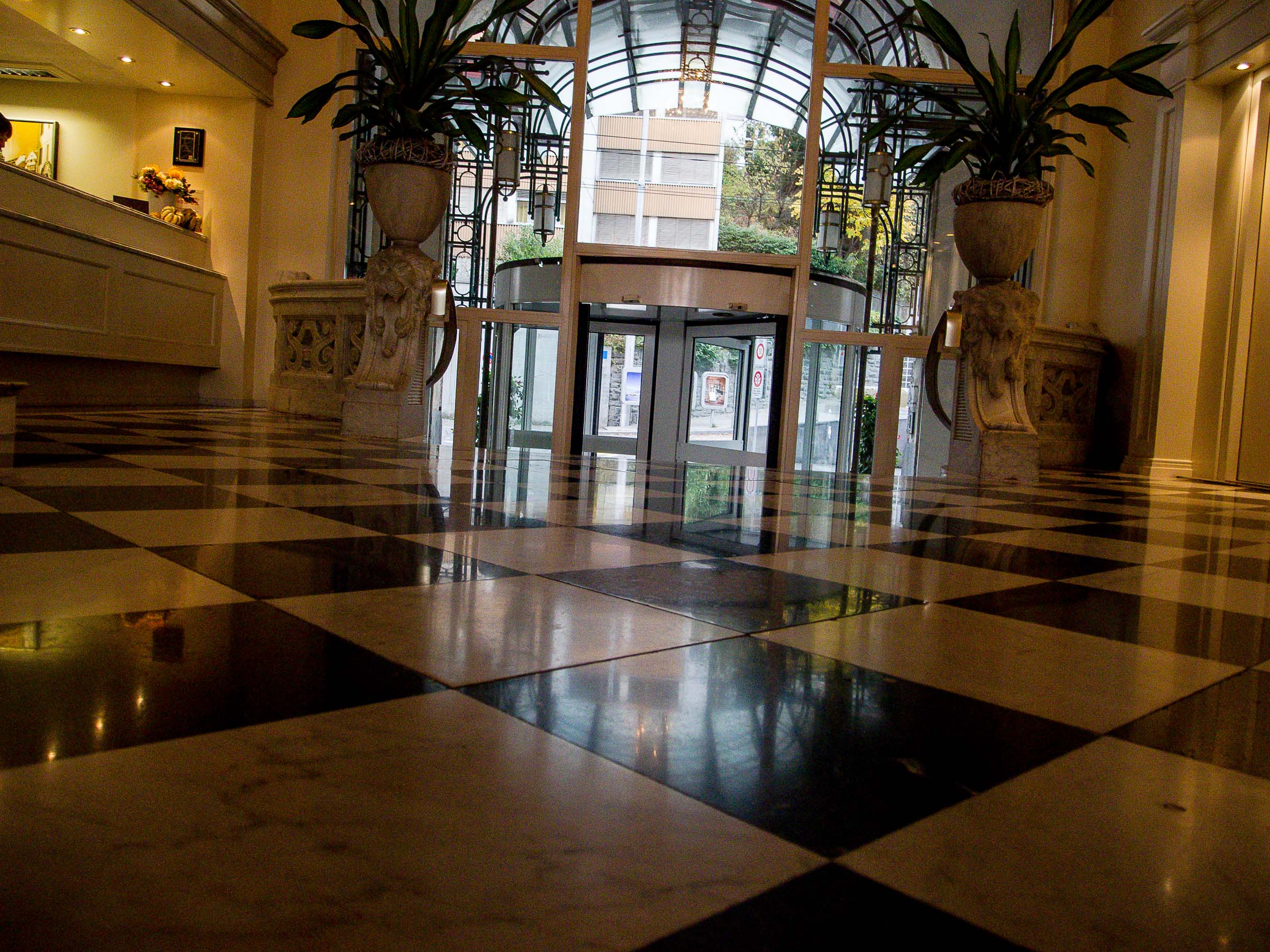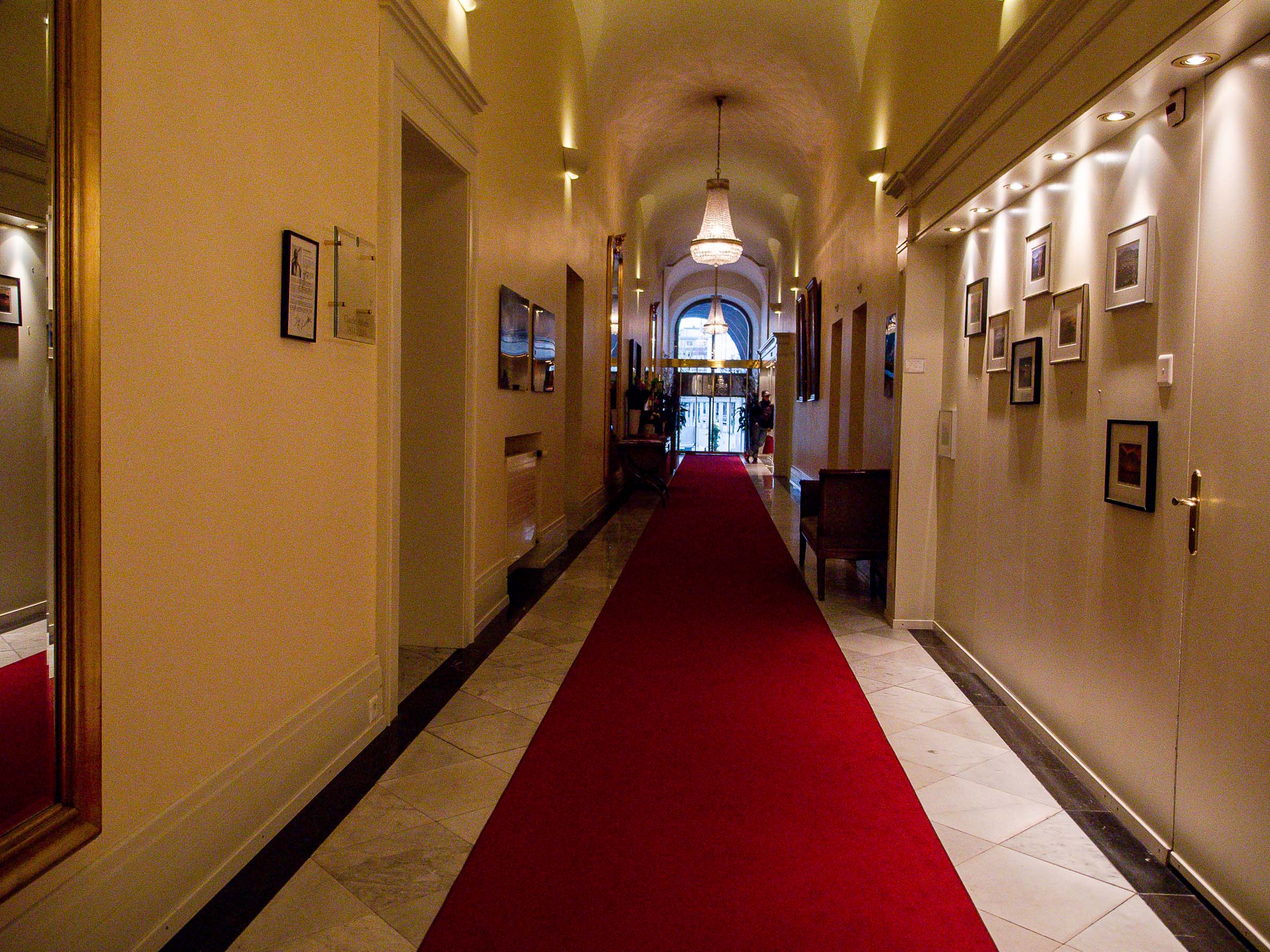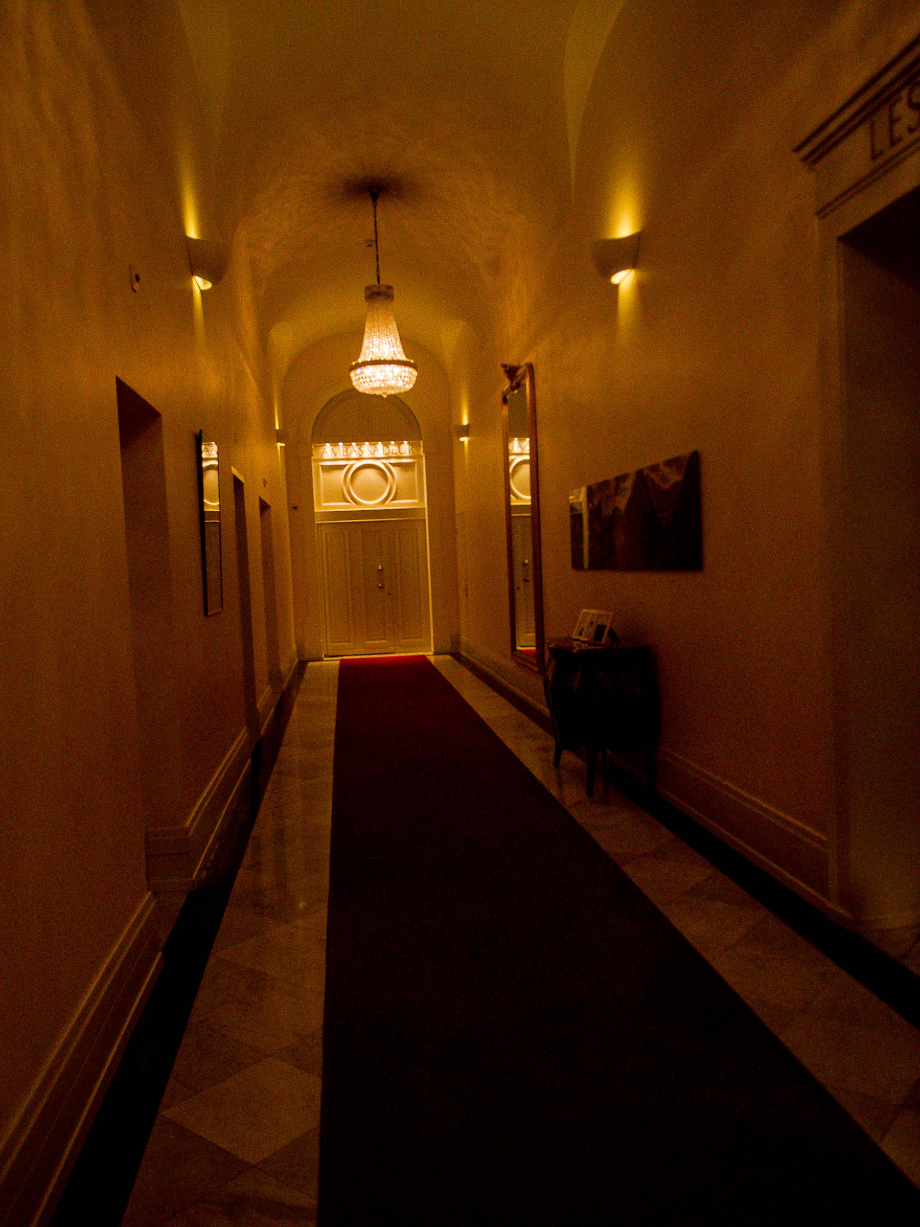 Bis ans Ende des Nationalquais schallt die Musik des Blueballs. Sind die Blues-Rhythmen laut genug, um das Hotel Palace aus dem Dornröschenschlaf zu erwecken? Die Steintreppe versteckt sich hinter einem grünen Pflanzen-Teppich. Die Zeit scheint in diesem Hotel stehen zu bleiben.