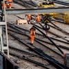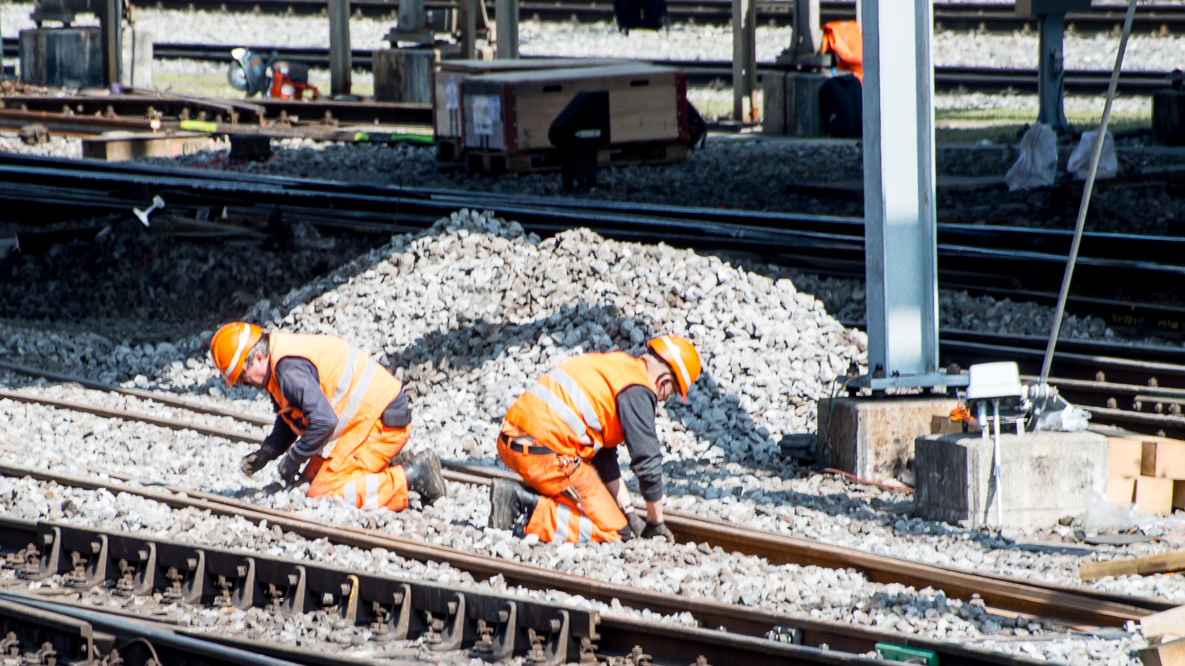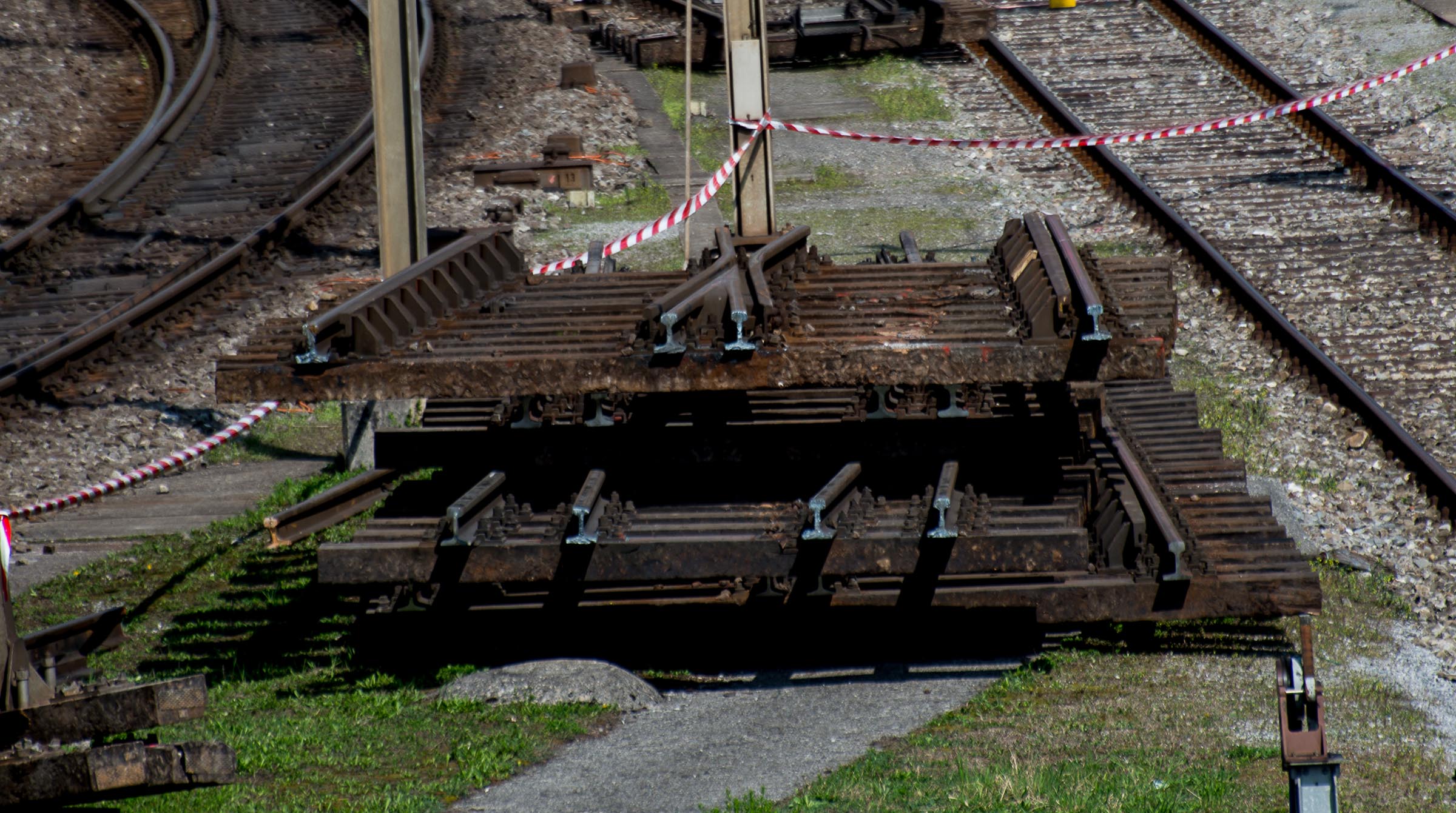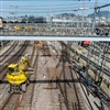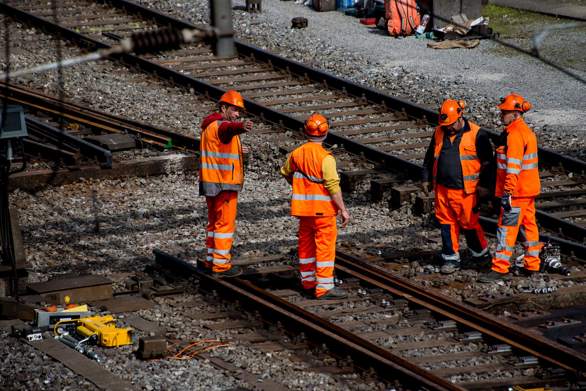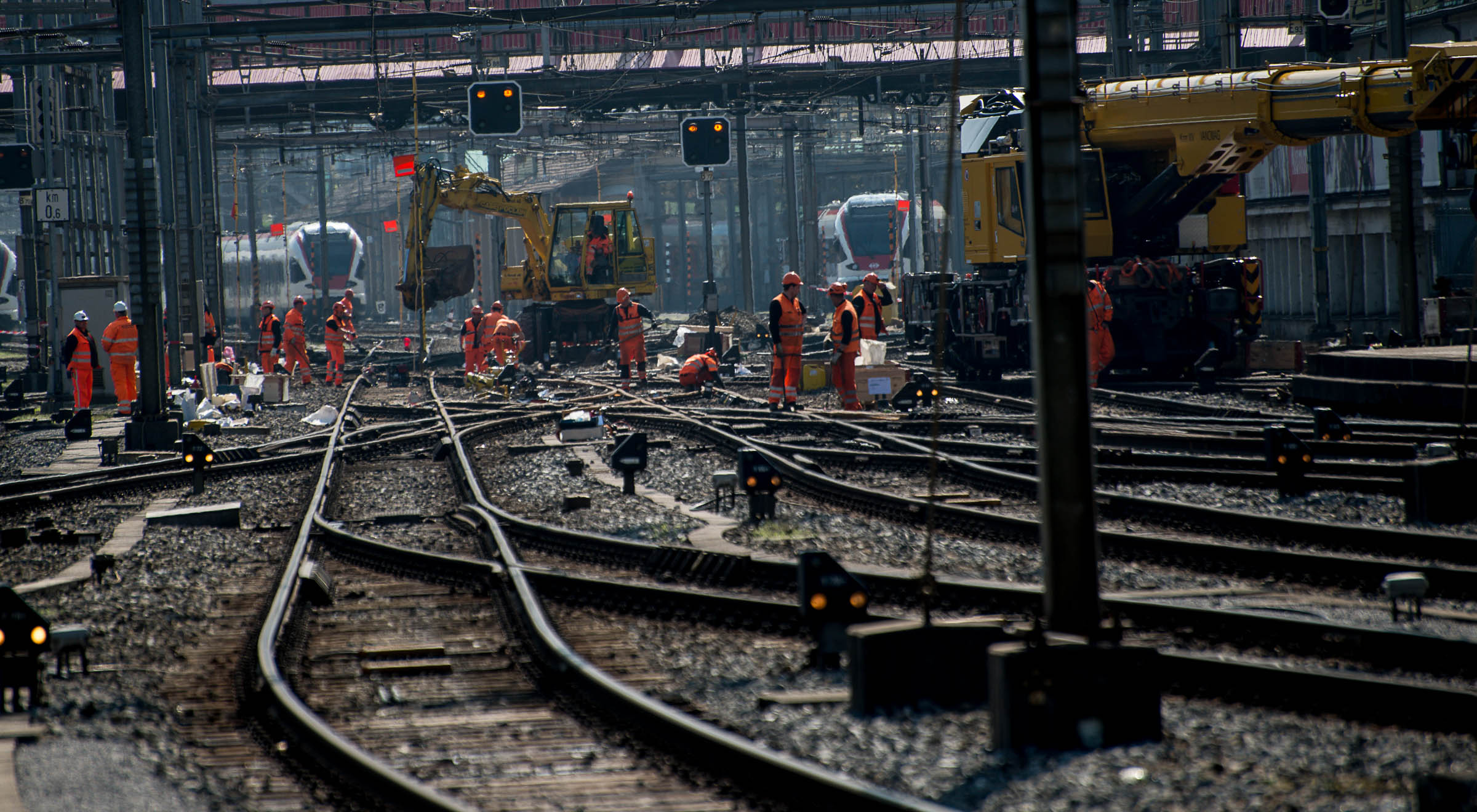 Die Weichen 37-77, 38-88 und 38 werden heute eingebaut. So steht's auf dem Sicherheitsdispositiv. Nebenan können die Züge der Zentralbahn Richtung Allmend mit 6o km/h vorbeifahren. Bevor ein Zug vorbeifährt, tönt ein akustisches Alarmsignal.