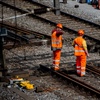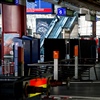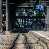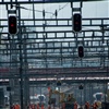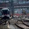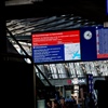 Anstatt Werbung auf der grossen Anzeige-Tafel leuchtet viel rote Farbe und eine unübersehbare Mitteilung - "Einschränkung im Bahnverkehr". Und die Kundenlenker sind da und helfen mit Rat den chinesischen Touristen mit Koffern.