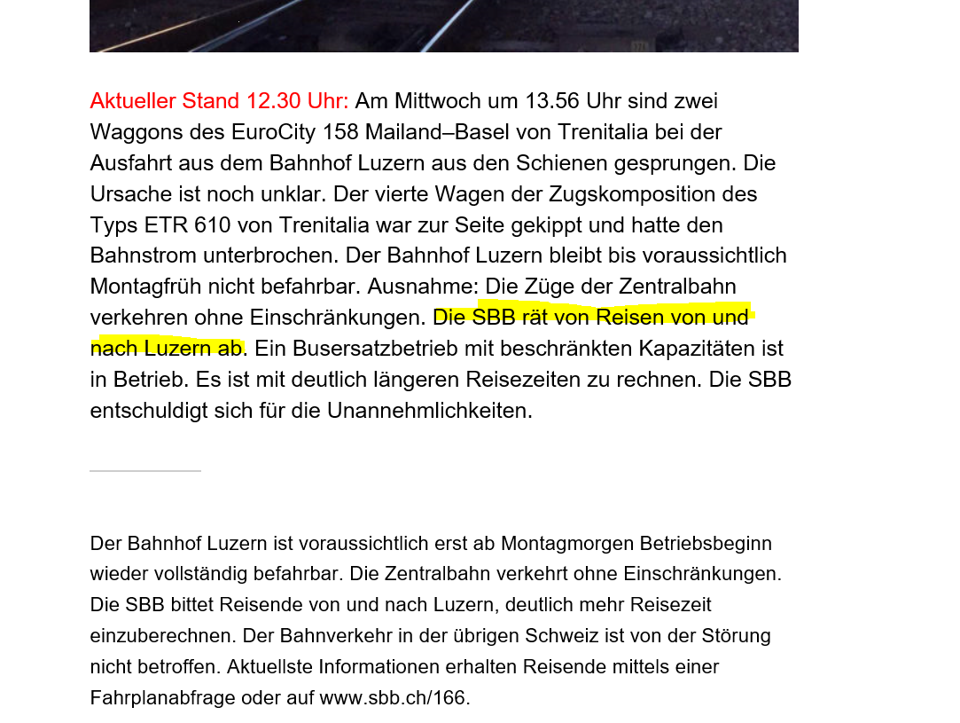 PrintScreen Original Text von der Webseite https://sbb-medien.ch/entgleisung-luzern/ am Do, 23.3.2017/ 12:42 Uhr