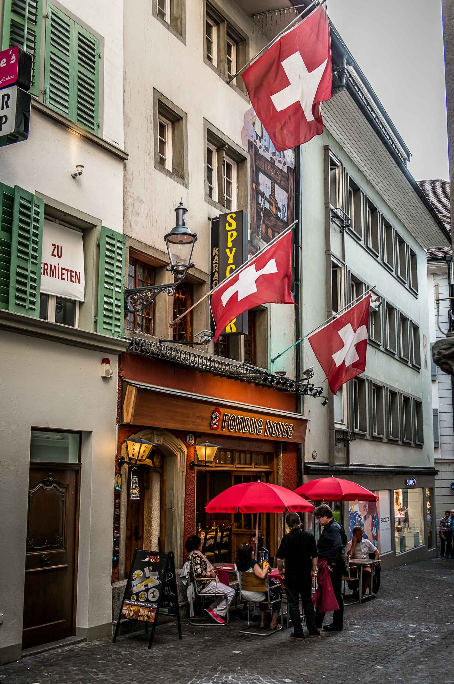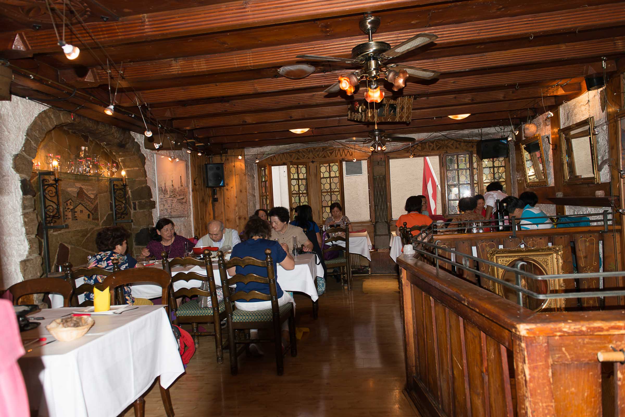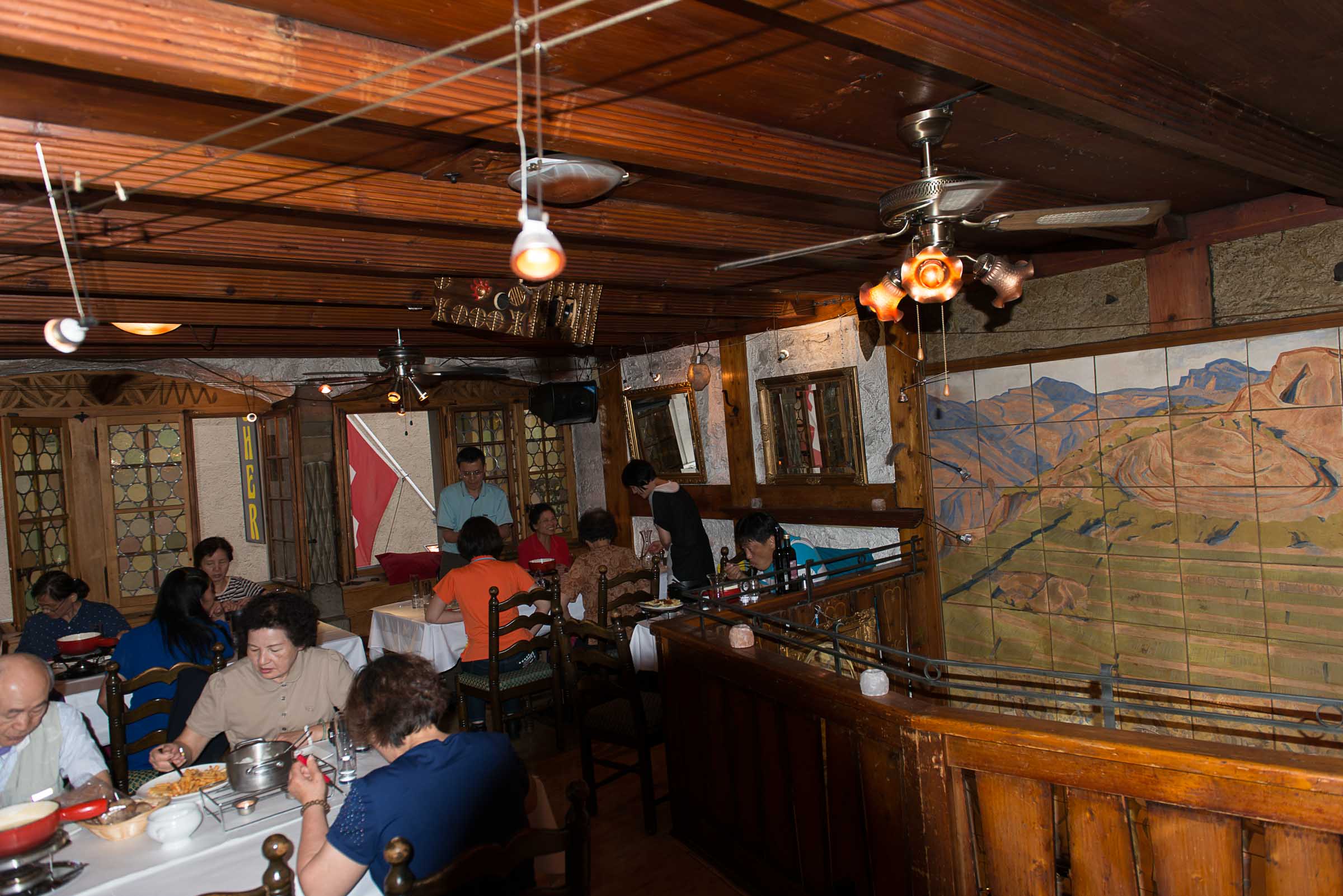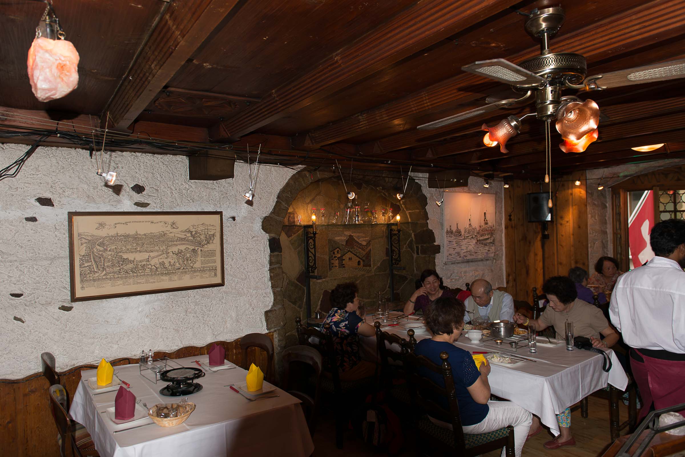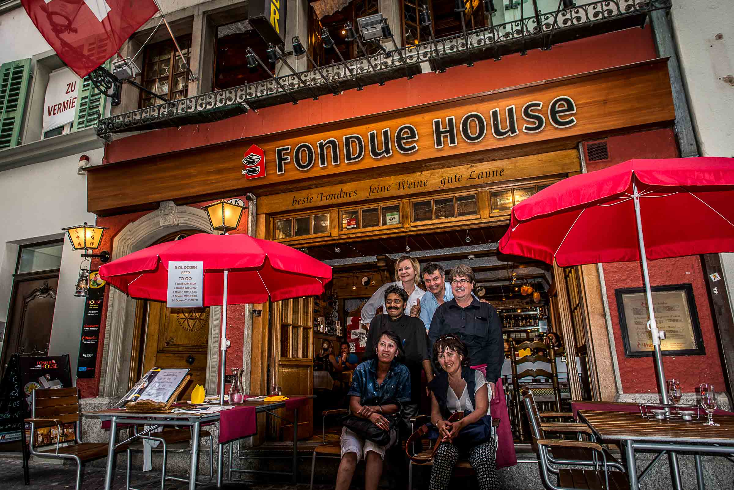 Nicht nur für Touristen sind am letzten Oeffnungstag des Fondue-House anzutreffen. Ueber 100'000 Besucher sind am Luzernerfest2015 in der Stadt Luzern. Einigen haben an diesem schönen Abend dennoch den Weg ins Fondue-House gefunden und geniessen ein original Schweizer Raclette.