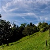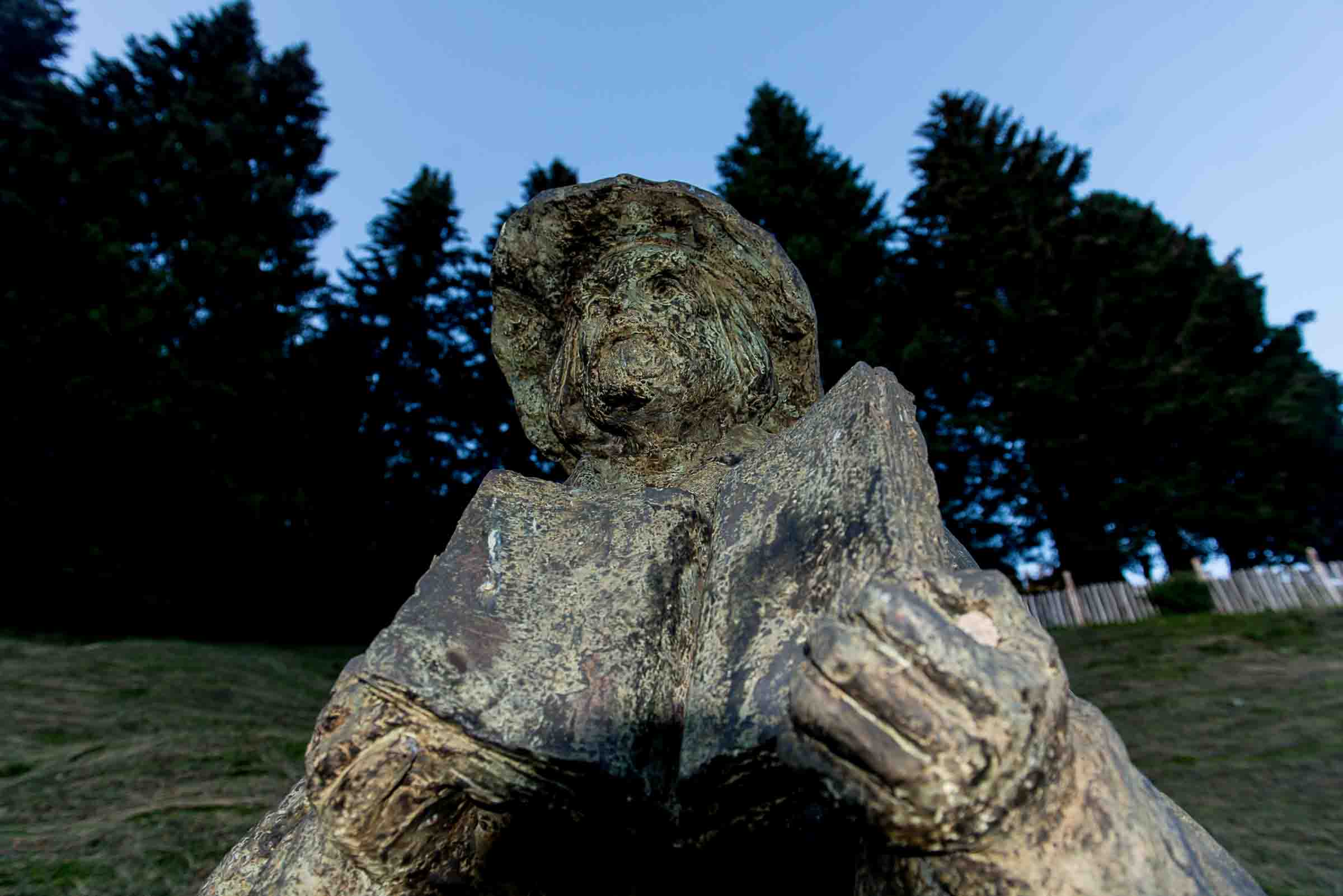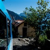 Hinauf gehts bis zum Haus, das eigentlich ja keines mehr ist - von Weitem. Es ist jetzt versteckt hinter Bäumen, kaum sichtbar für die Gäste, und wird bald verschwunden und entsorgt sein. Früher sass ein Mann auf der Bank und winkte den Vorbeifahrenden.