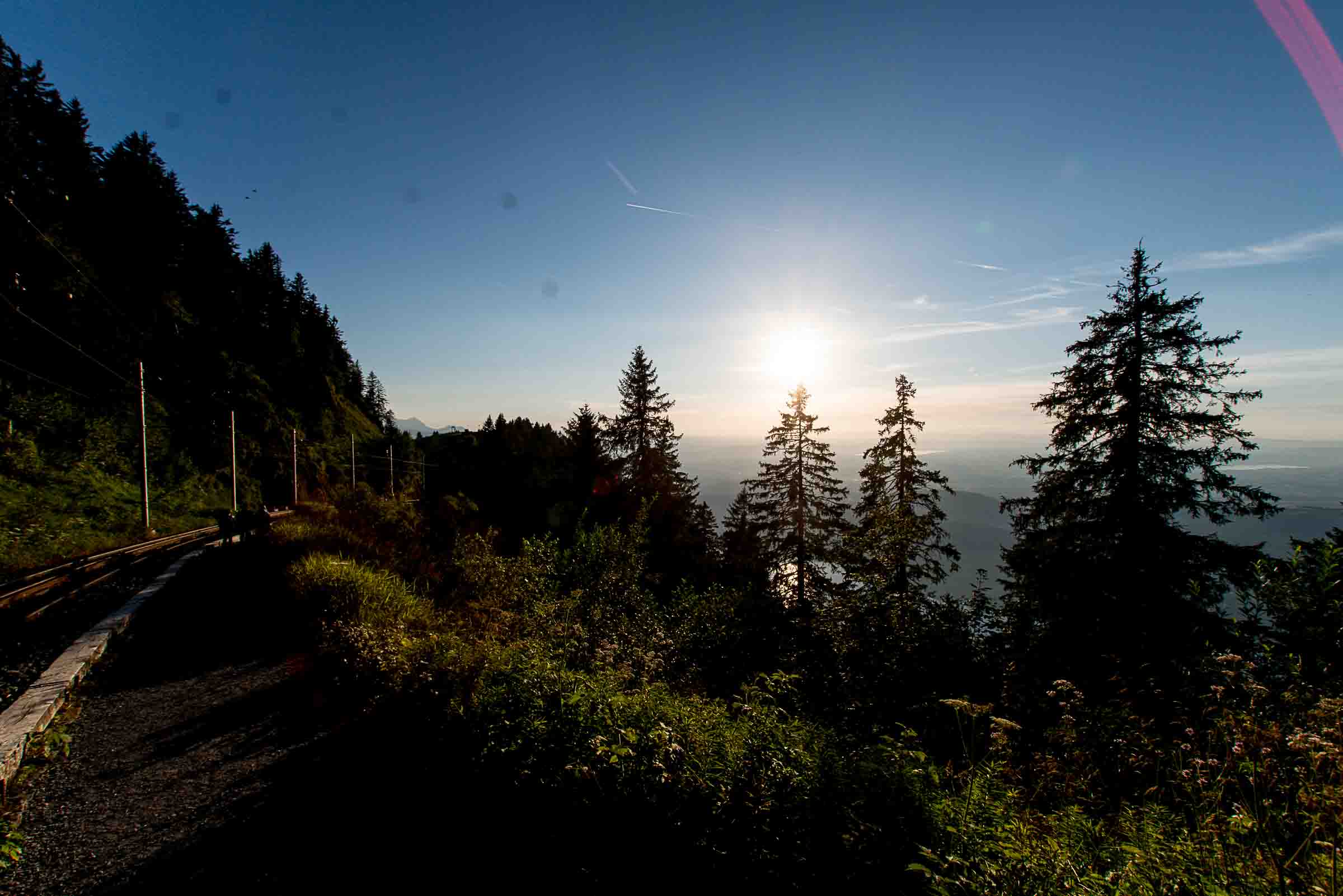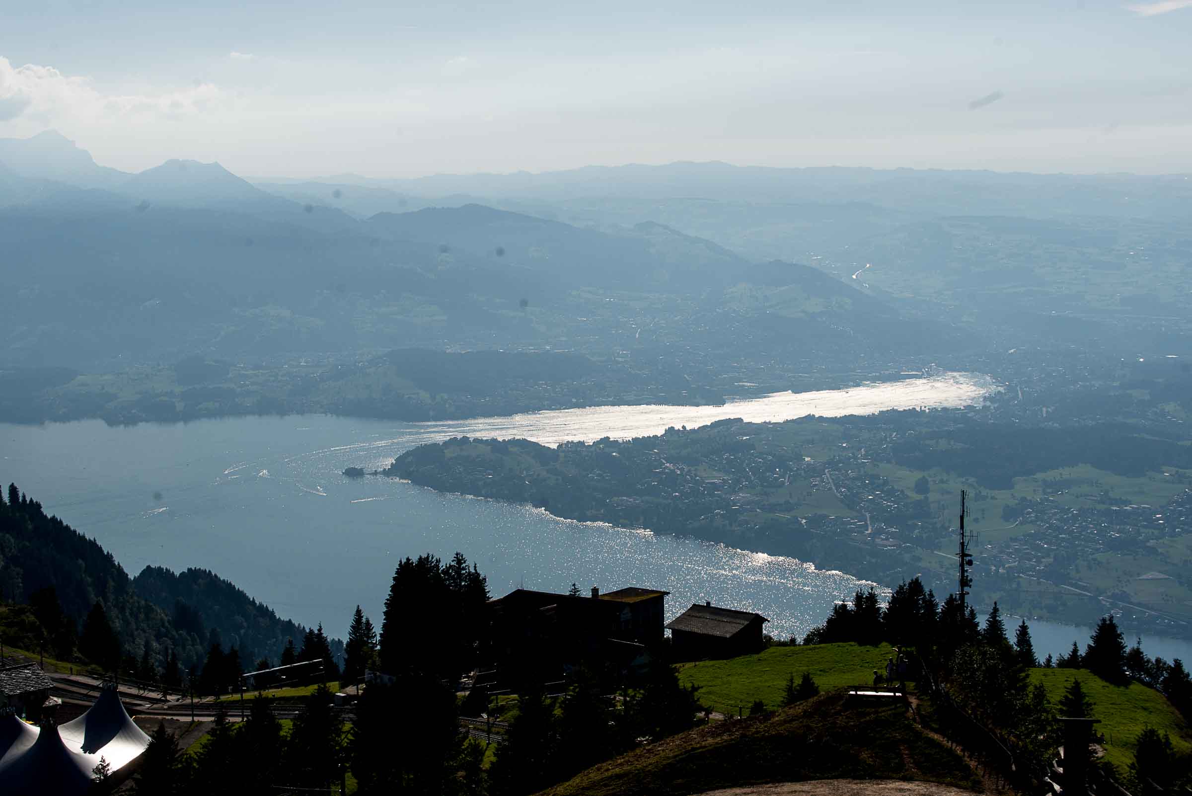 Im Wagen ist das Licht aus. Der Wagen fährt Richtung Rigi Kulm. An der Haltestelle Rigi Staffelhöhe vorbei, jetzt am Wanderweg der links und rechts vom Trasse führt, sehen wir keine Seen mehr, nur ein Meer, ein Lichtermeer. Der Blick von links nach rechts, ah! Oh! Vom Vierwaldstättersee über Küssnacht zum Zugersee. Jeder der im Wagen noch gesessen hat, steht jetzt auf und blickt auf das Lichtermeer, geniesst und fährt bergauf.