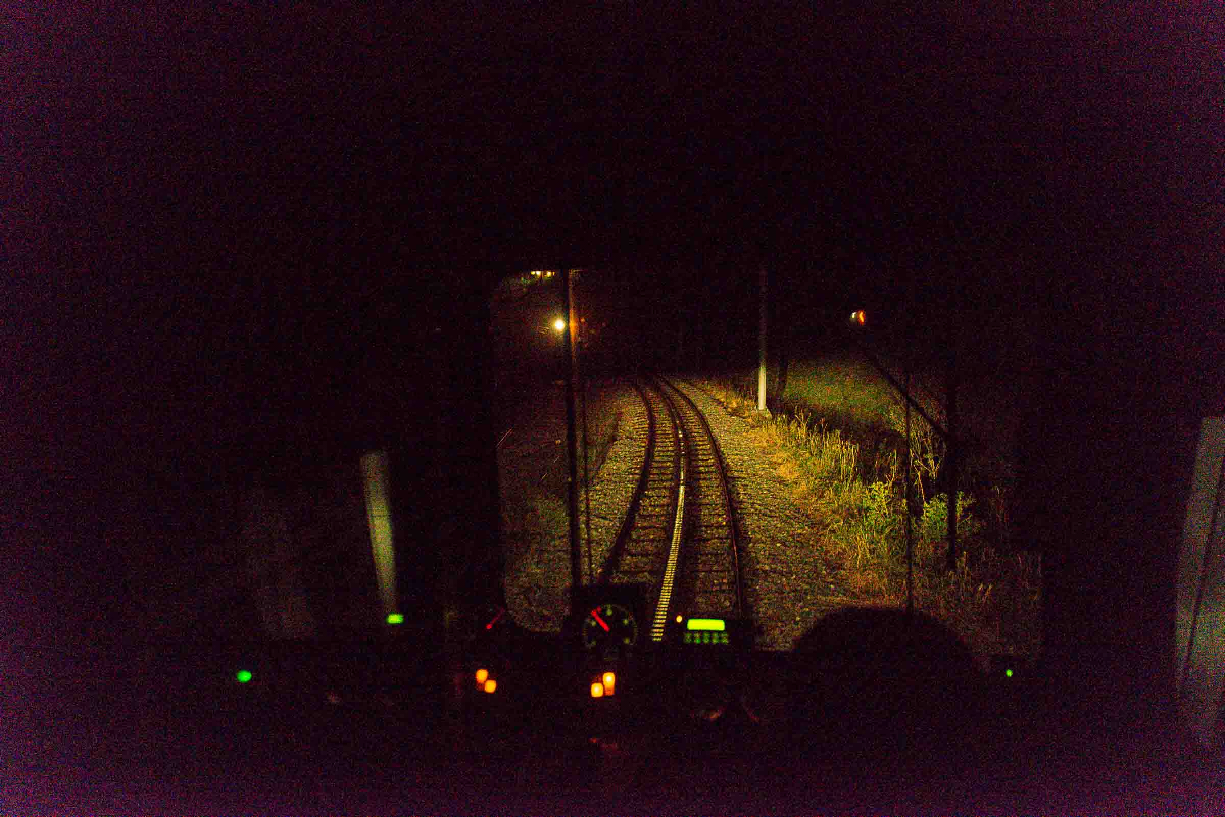 Die Rigibahn fährt am Freitag und Samstag diesen Kurs. Vor 10 Jahren beim Einsteigen noch den Wagenführer gefragt, ob er das grelle, unromantische Licht verbannen kann, was ohne Nachfrage abgelöscht wurde, ist heute courant normal. Im Roten im Dunkeln durch die Nacht fahren, welch ein Erlebnis.