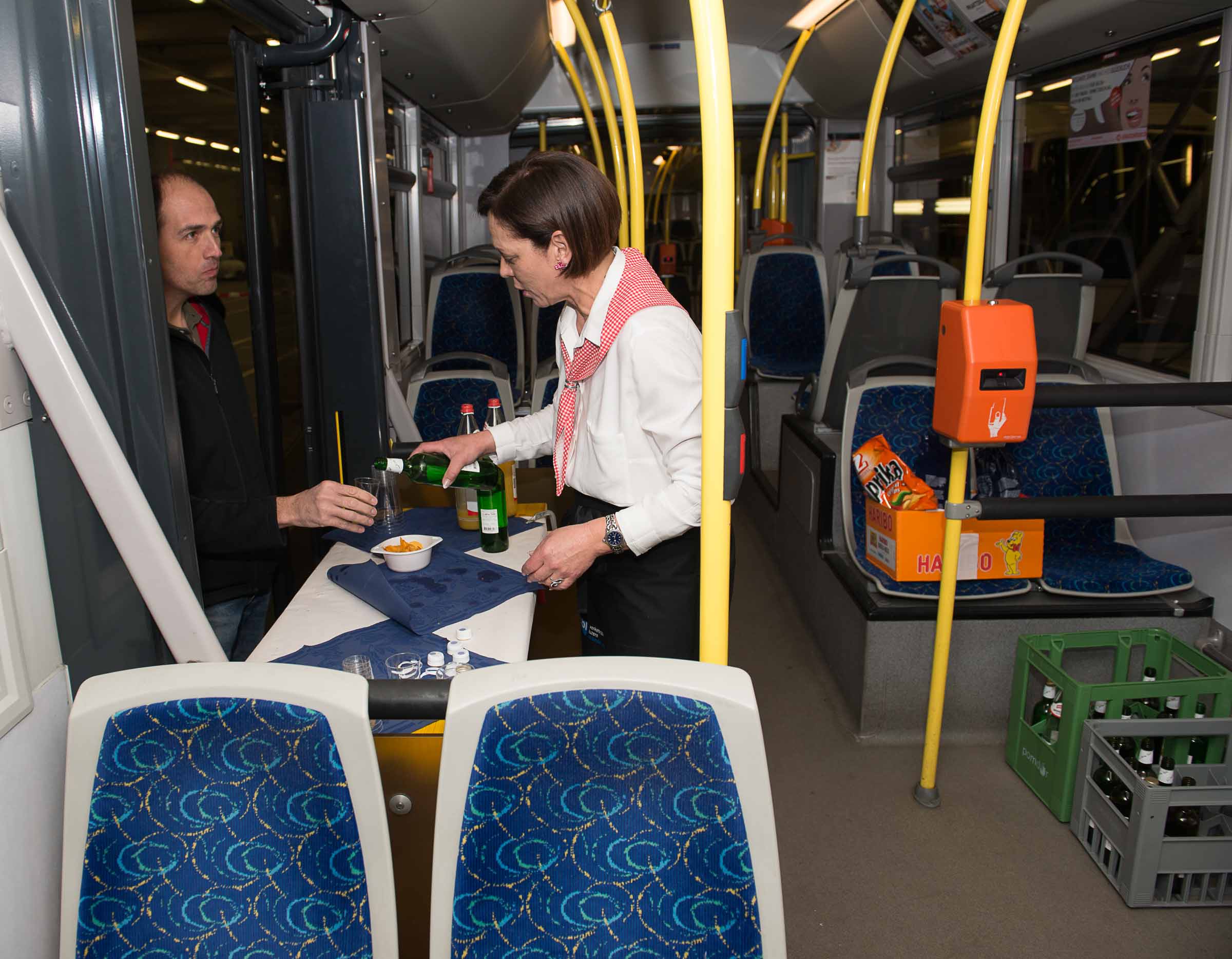 An diesem Abend war es sogar erlaubt, im VBL-Bus offene Apéro-Getränke und Gebäck aufzutischen.