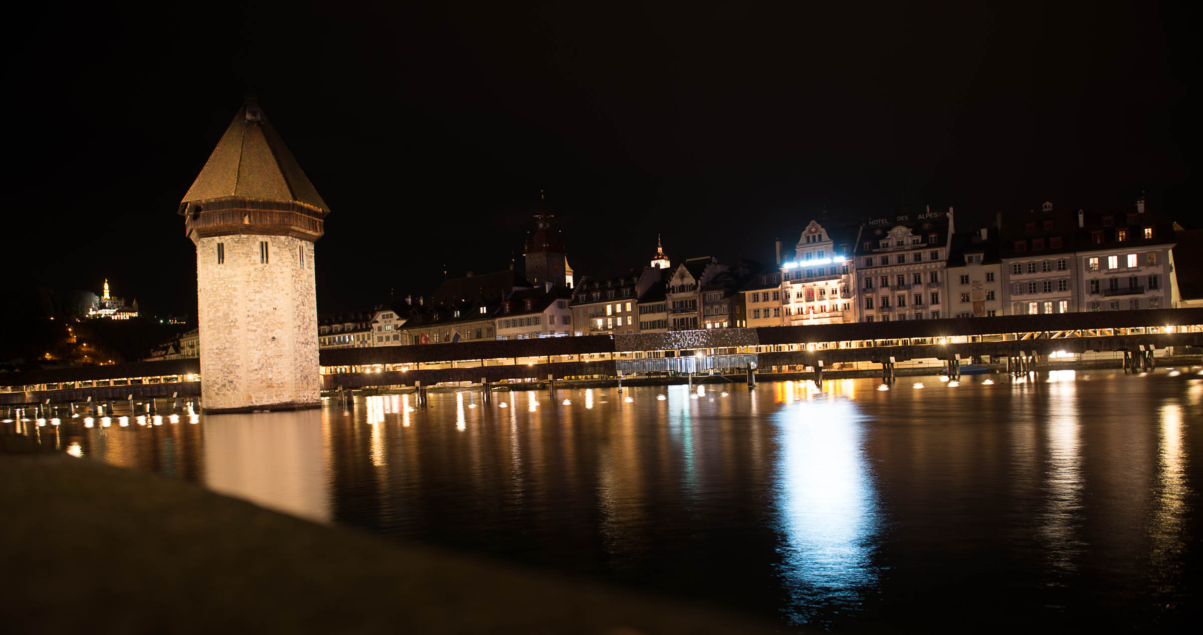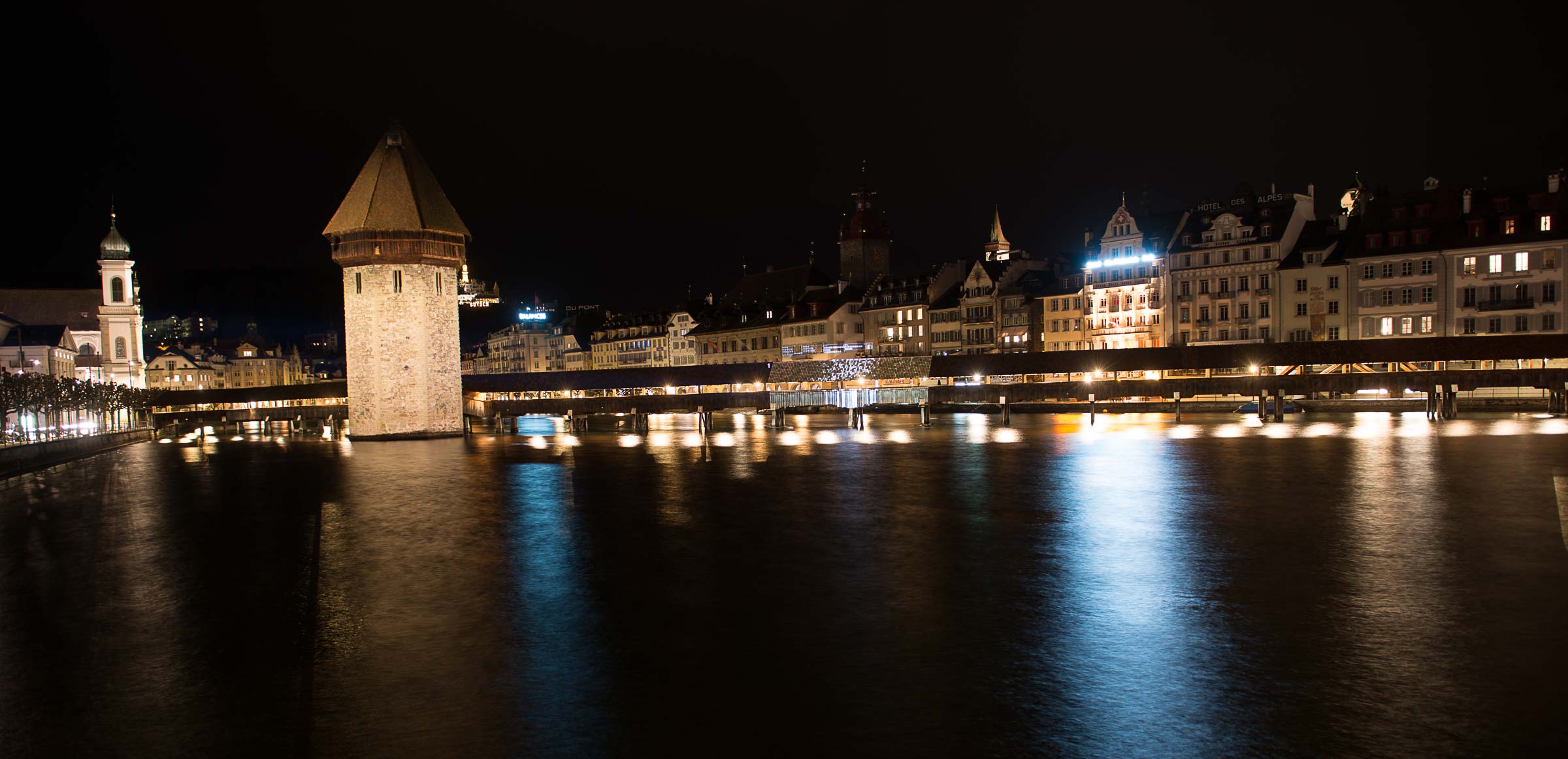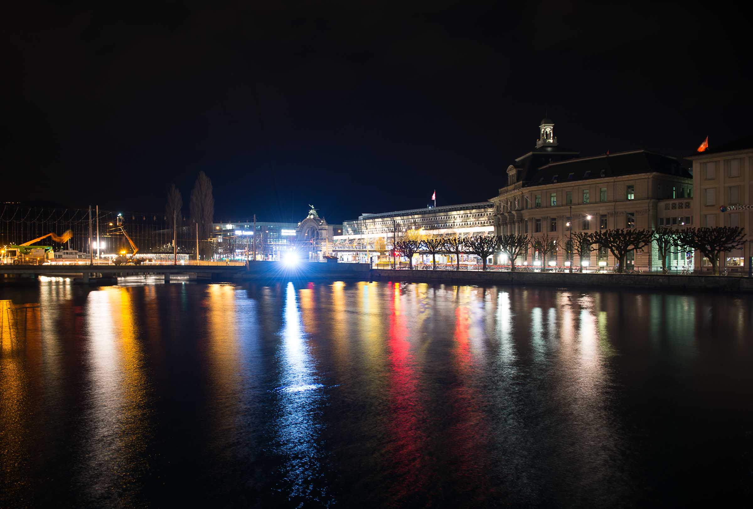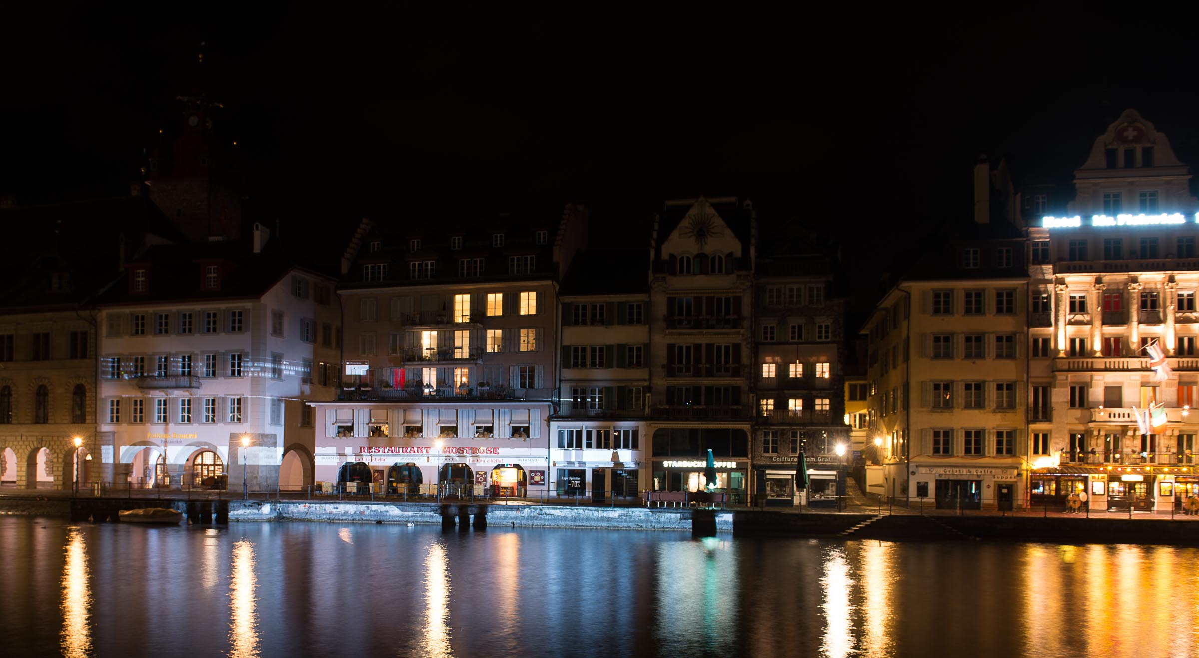 Liegt es vielleicht an den auffälligen Leuchtreklamen die von einigen Häusern ihr Licht auf die Reuss werfen und der Licht Inszenierung der Kapellbrücke die Show stehlen?