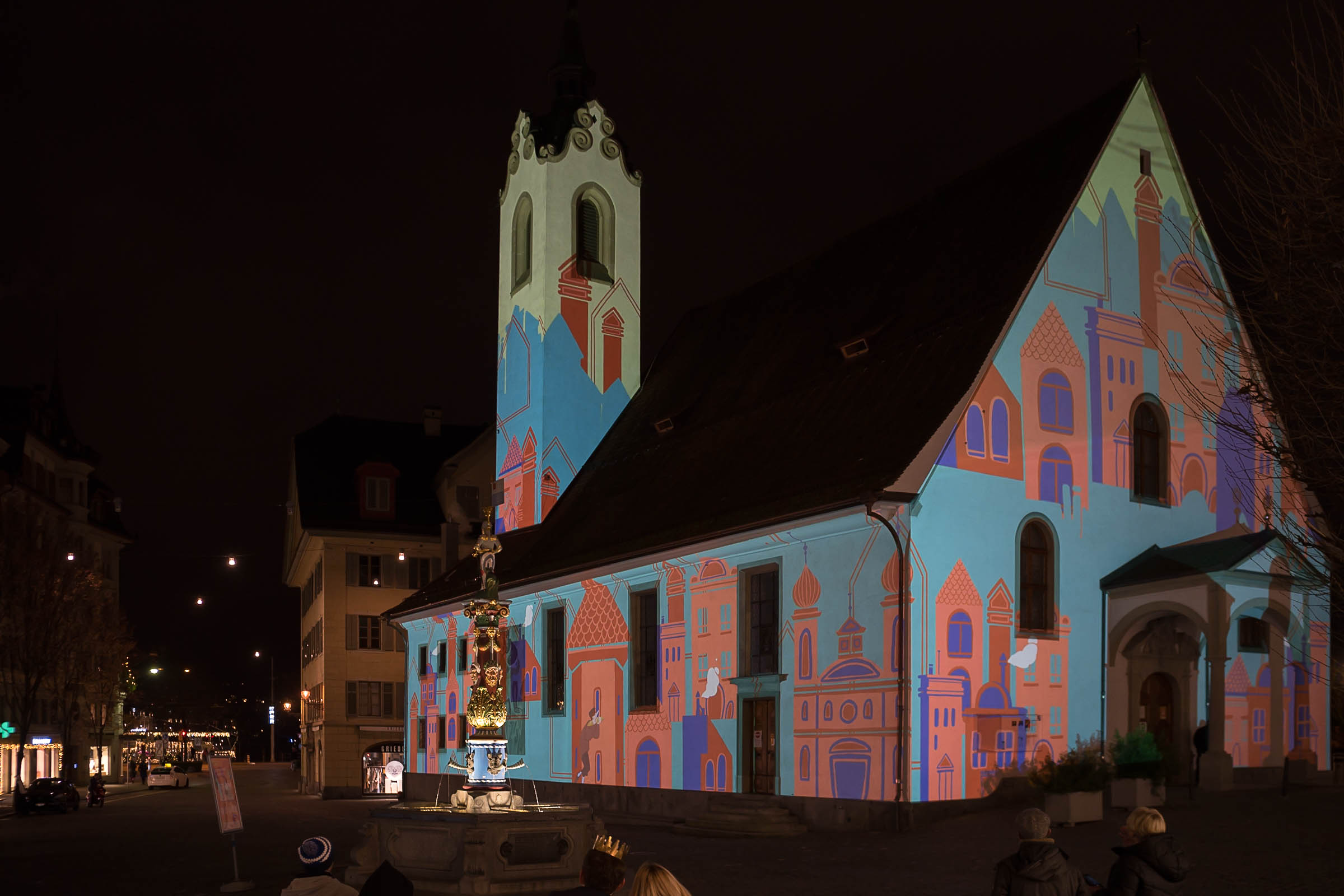 Mit Sicherheit kann diese Frage beantwortet werden. Überall wo es eine Light Installation zu sehen gibt. Dazu lädt ein Rundgang zu den über 20 Lichtplätzen in der Leuchtenstadt ein. Und wenn die Kälte einem den Appetit auf Lichtshow überhandnimmt, gibt ja diverse Restaurant, die offen haben.