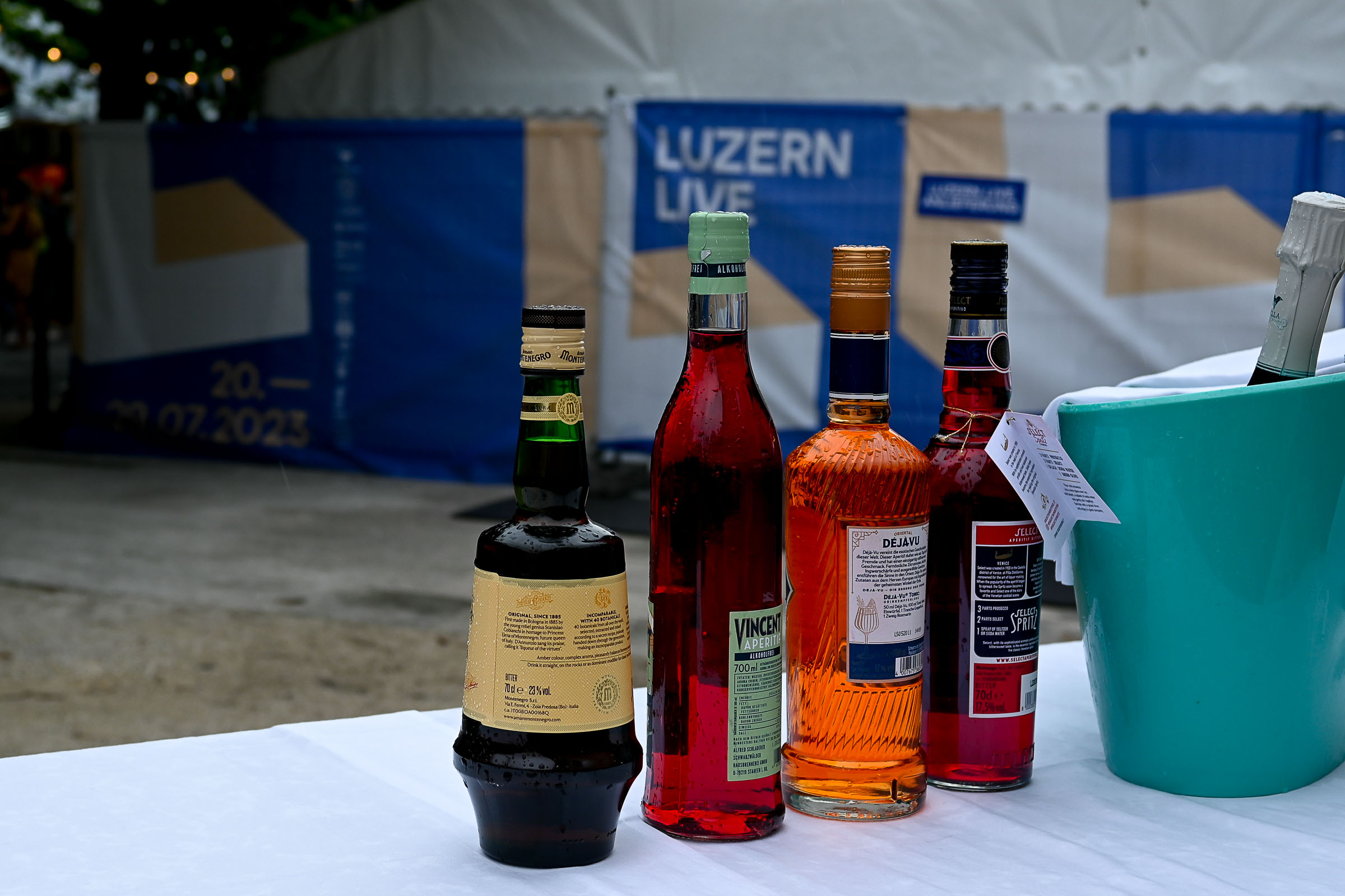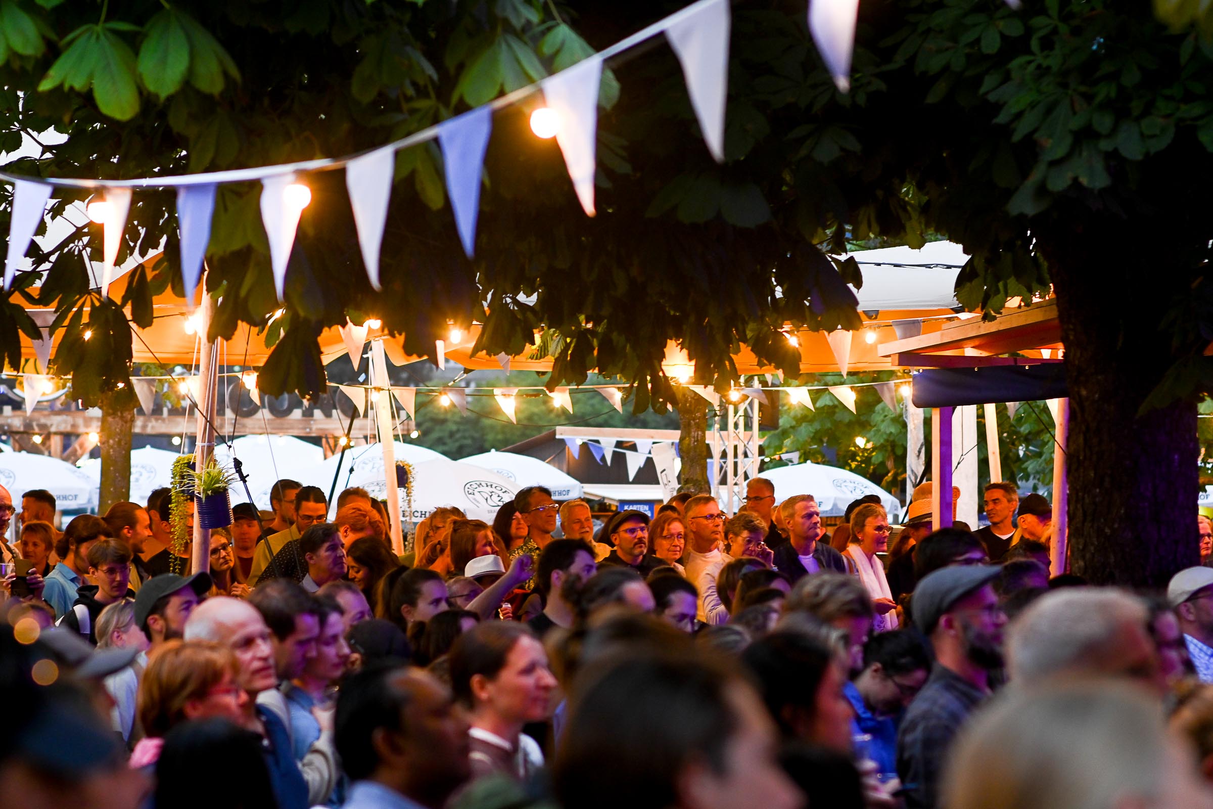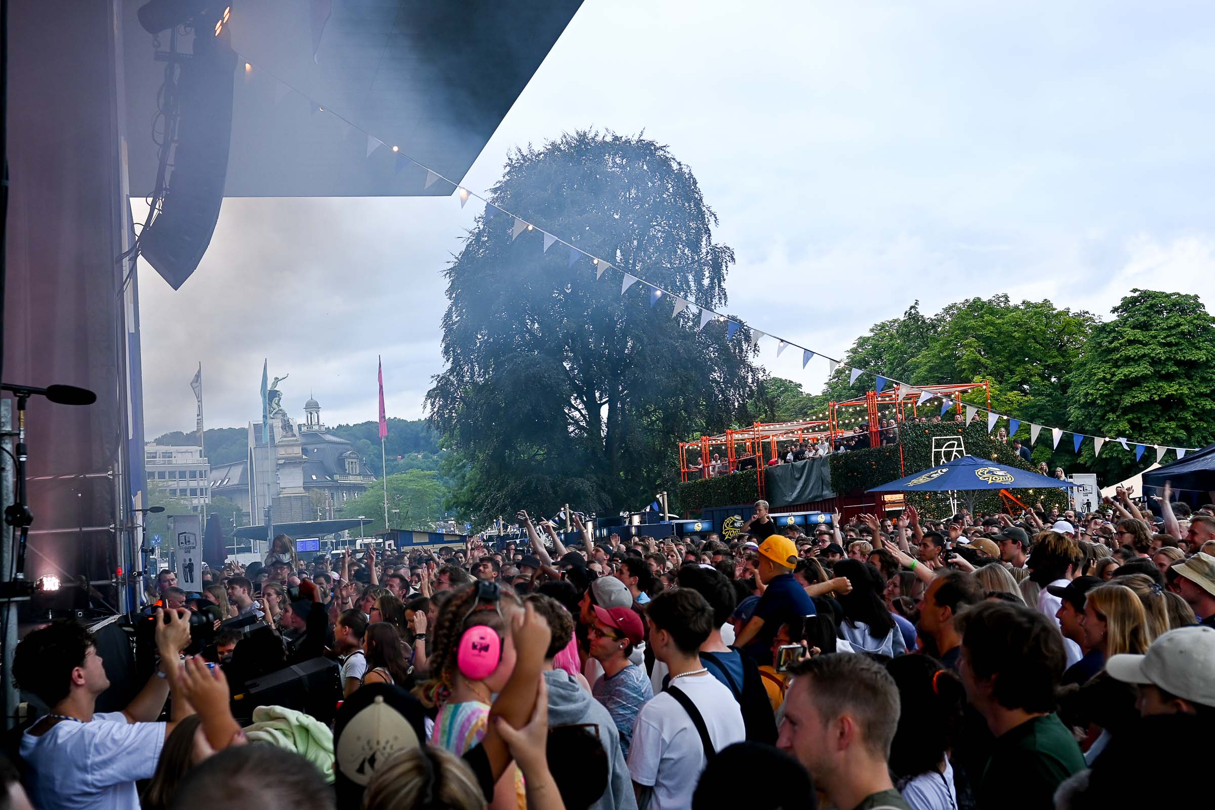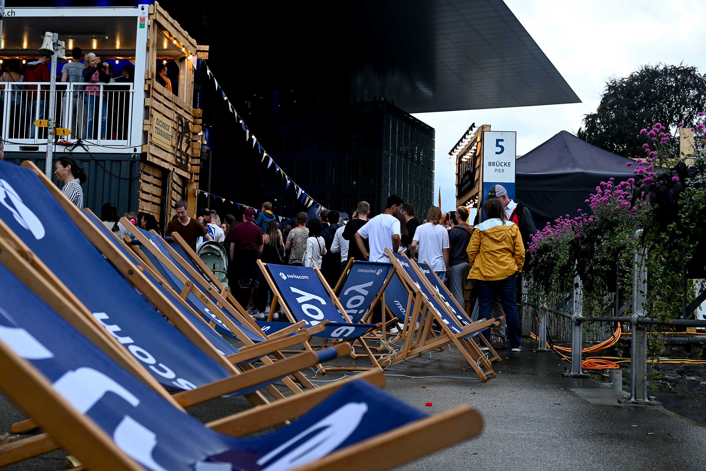 Und falls mal ein Sommer-Gewitter über den Pilatus Richtung Luzern zieht, die Zelte lassen den Regen schön draussen und die freie Sicht auf die Bühne ist inklusiv, und für die Regentropfen gibts ein DisLike vom Publikum.