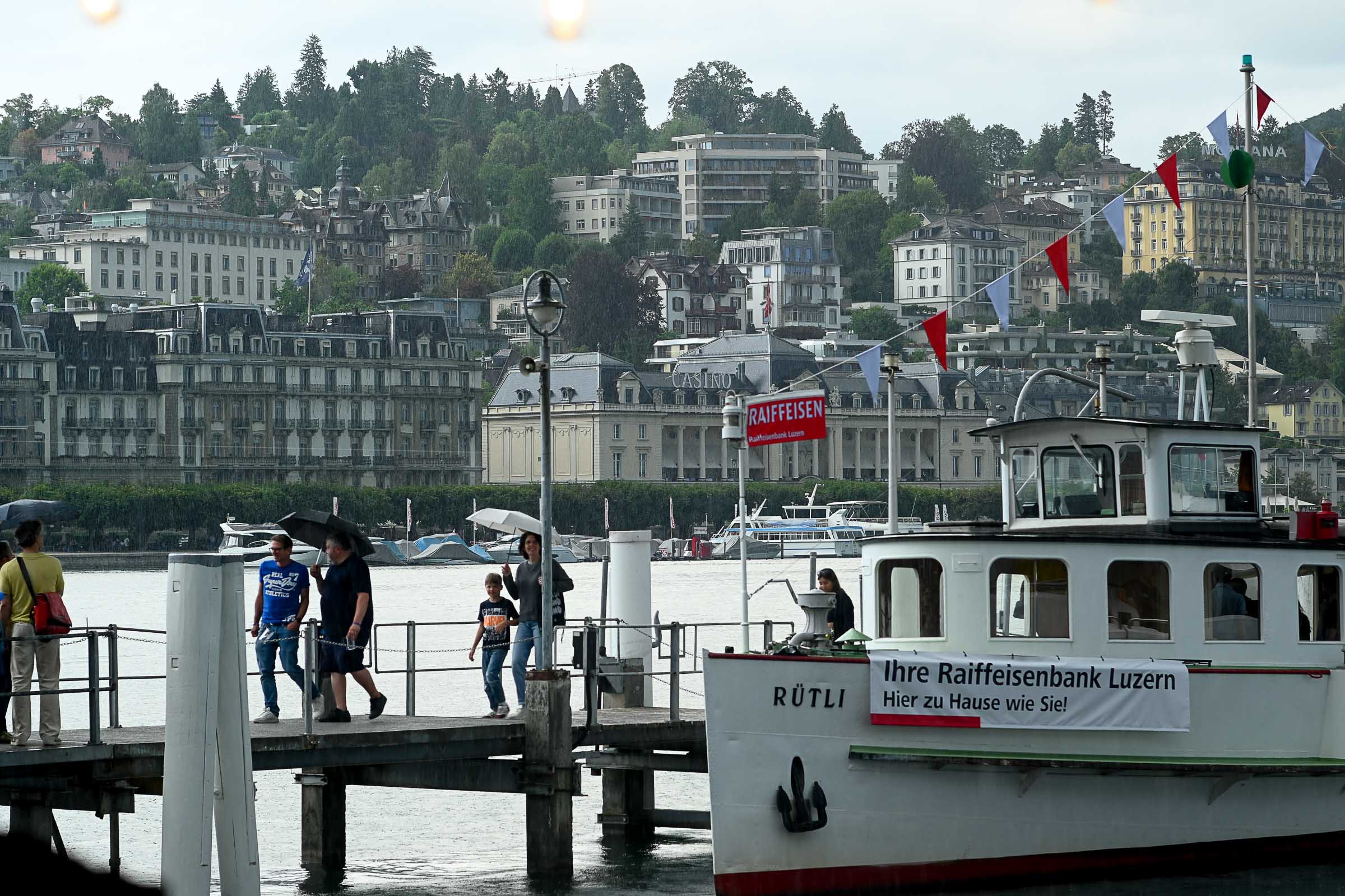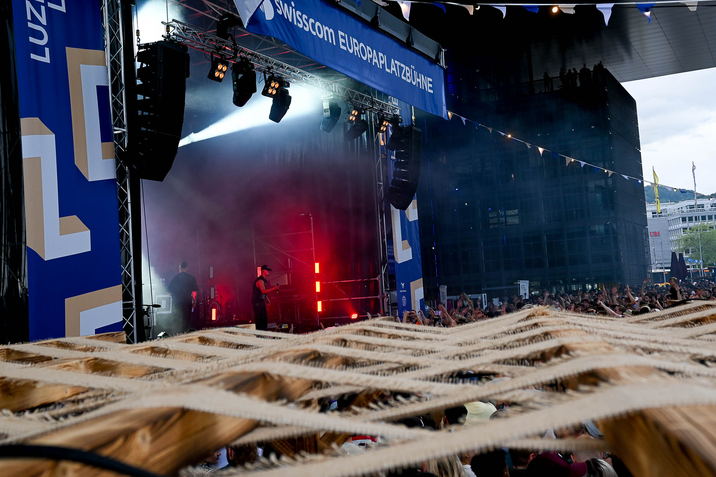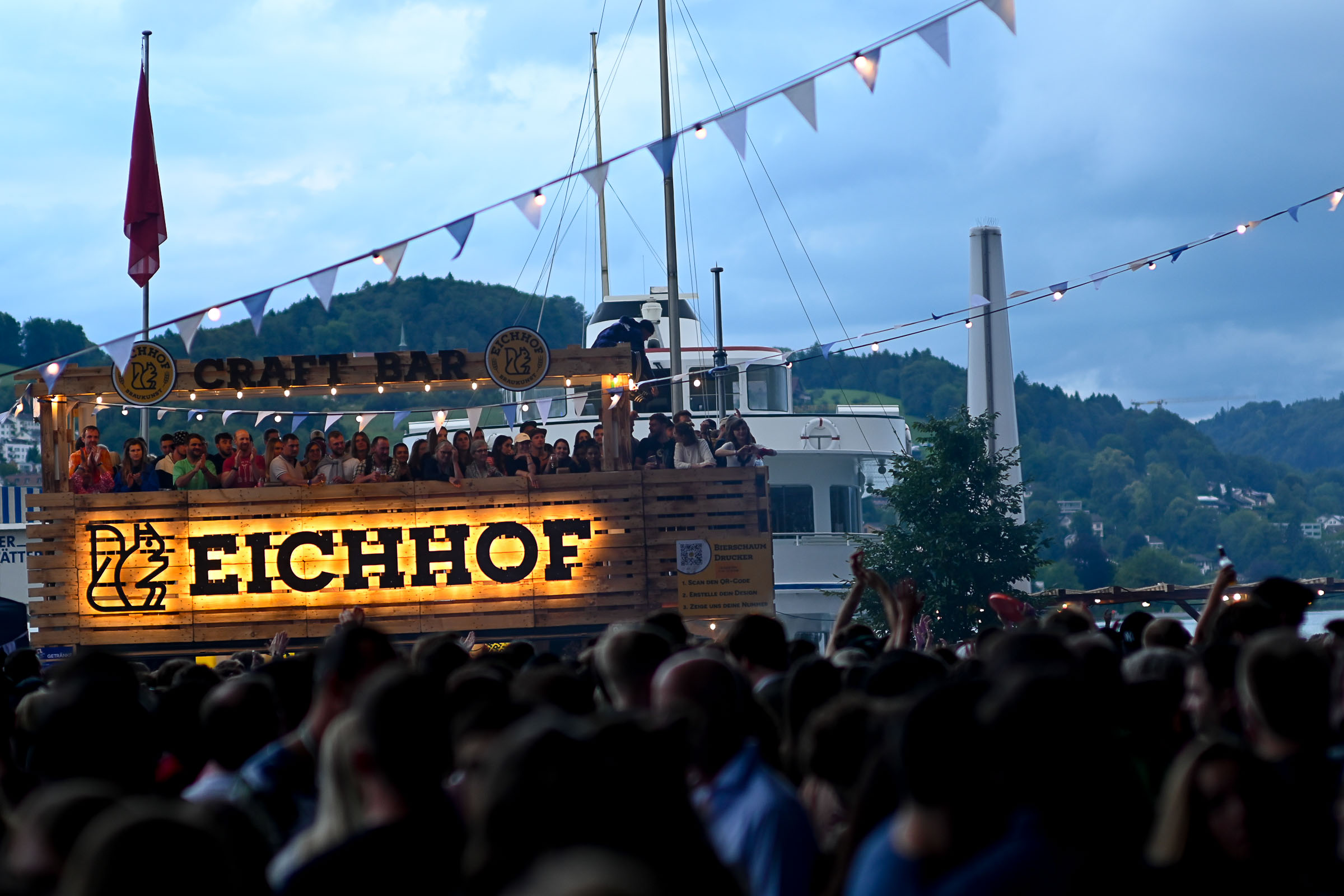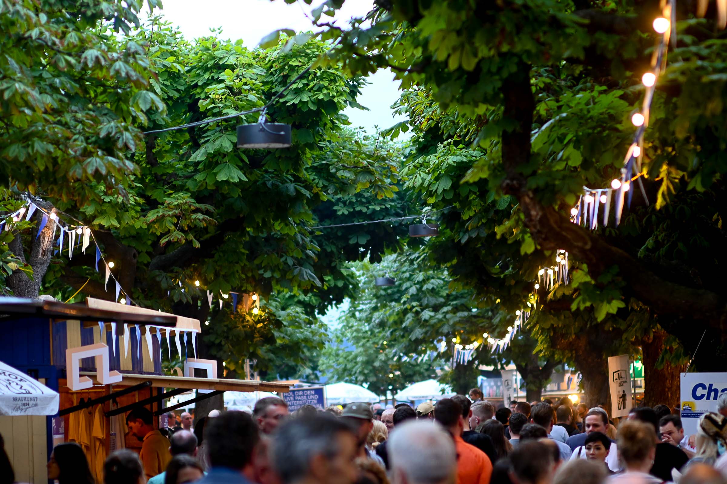 «Die Stadt vibriert!» meinten 4 Besucher:innen am Eröffnungsabend am Donnerstag auf der KKL Terrasse. Nach einer Pause von zwei Jahren ist das Nachfolge Festival in voller Pracht am See angekommen. Ob Getränke mit moderaten Preisen (ohne Preiserhöhungen beim Bier), Essen oder Musik geniessen. Und wie sagte der Raiffeisen-Sponsor des Shuttle Schiffs, das zwischen KKL und Quai im Einsatz ist.
