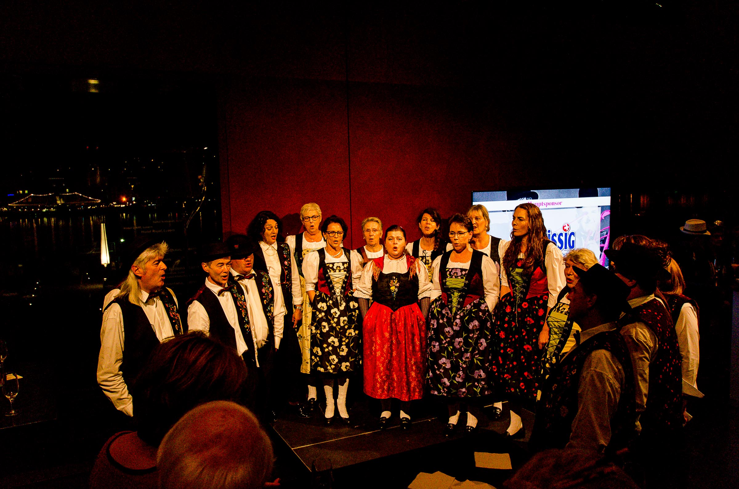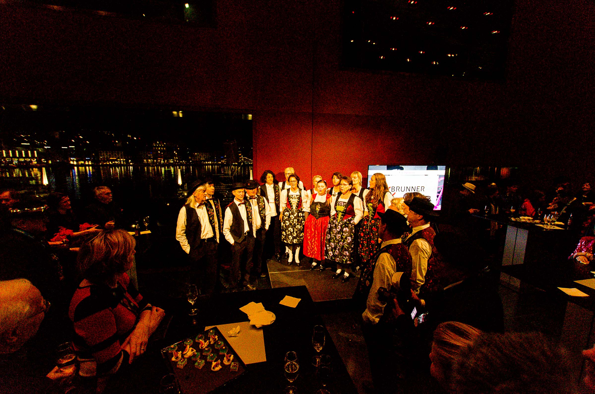 Eine Geschichte über No-Konfetti im KKL, ein roter Slip der an einem Mikrophon hängt und kunstvoll von einem Chor-Mitglied geschwungen wird, die Erfolgs-Geschichte vom Jodlerklub Pilatus der vor 10 Jahren noch keine Homepage hatte und vor dem Aus stand und auf eine geniale Idee wartet um weiterzubestehen, und einem Herr L. aus M., der als einziger im Saal aufstand als eine blaue Fahne vom Chor-Ensemble enthüllt wurde.