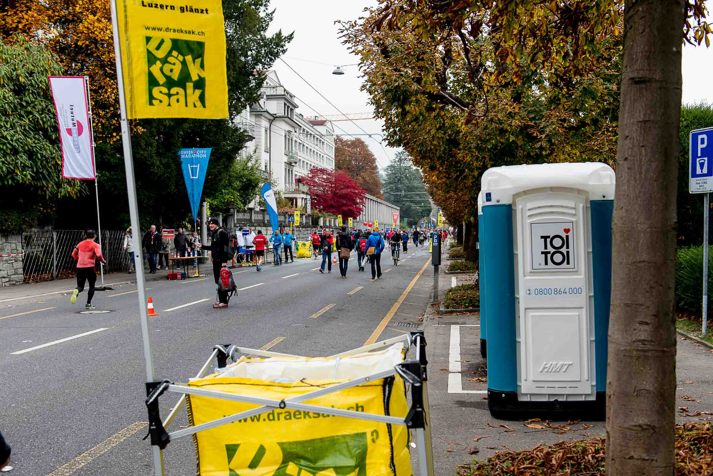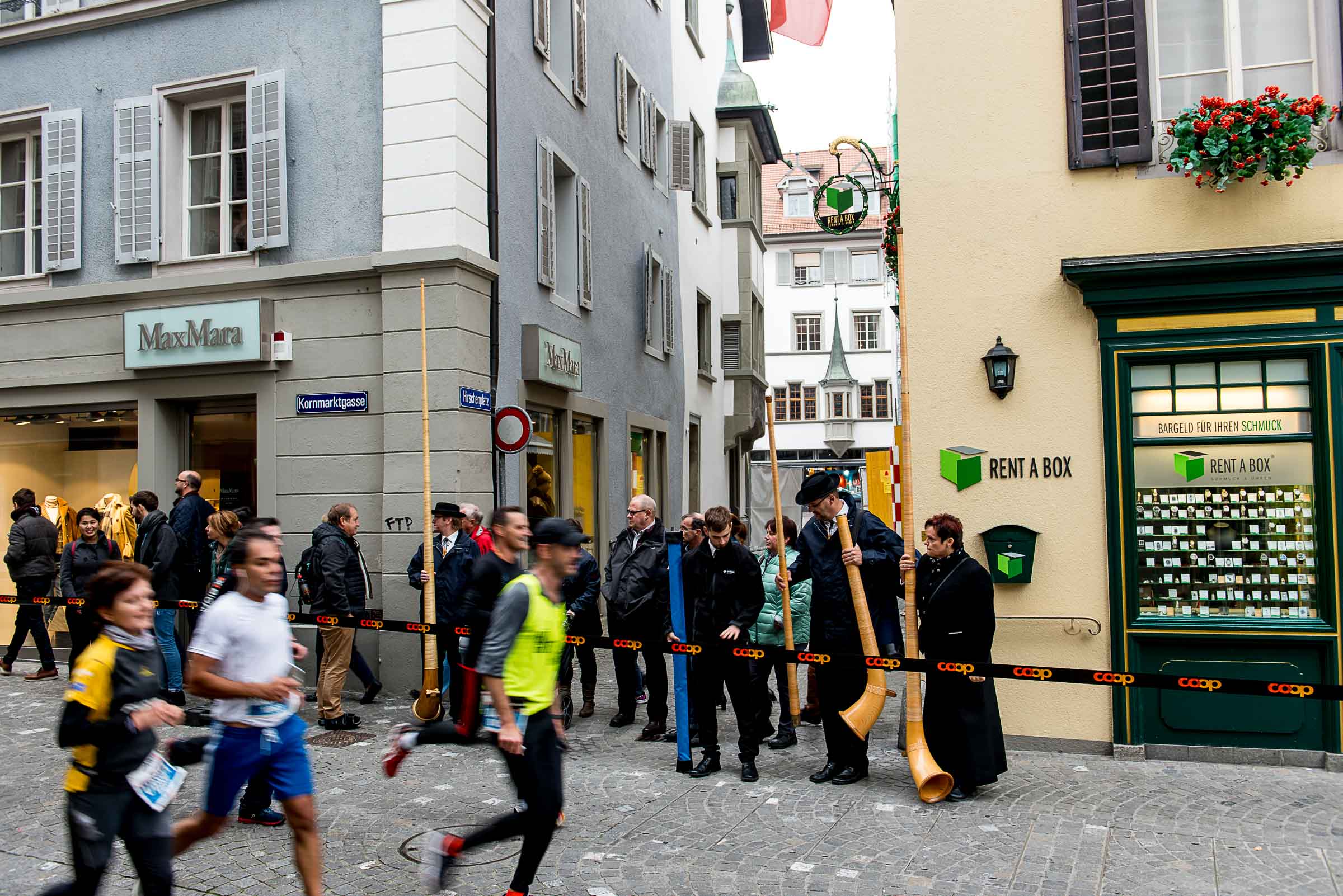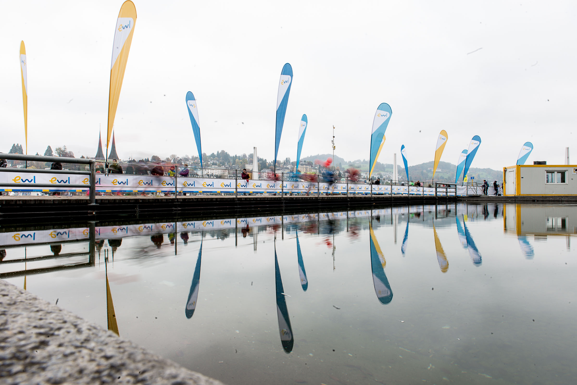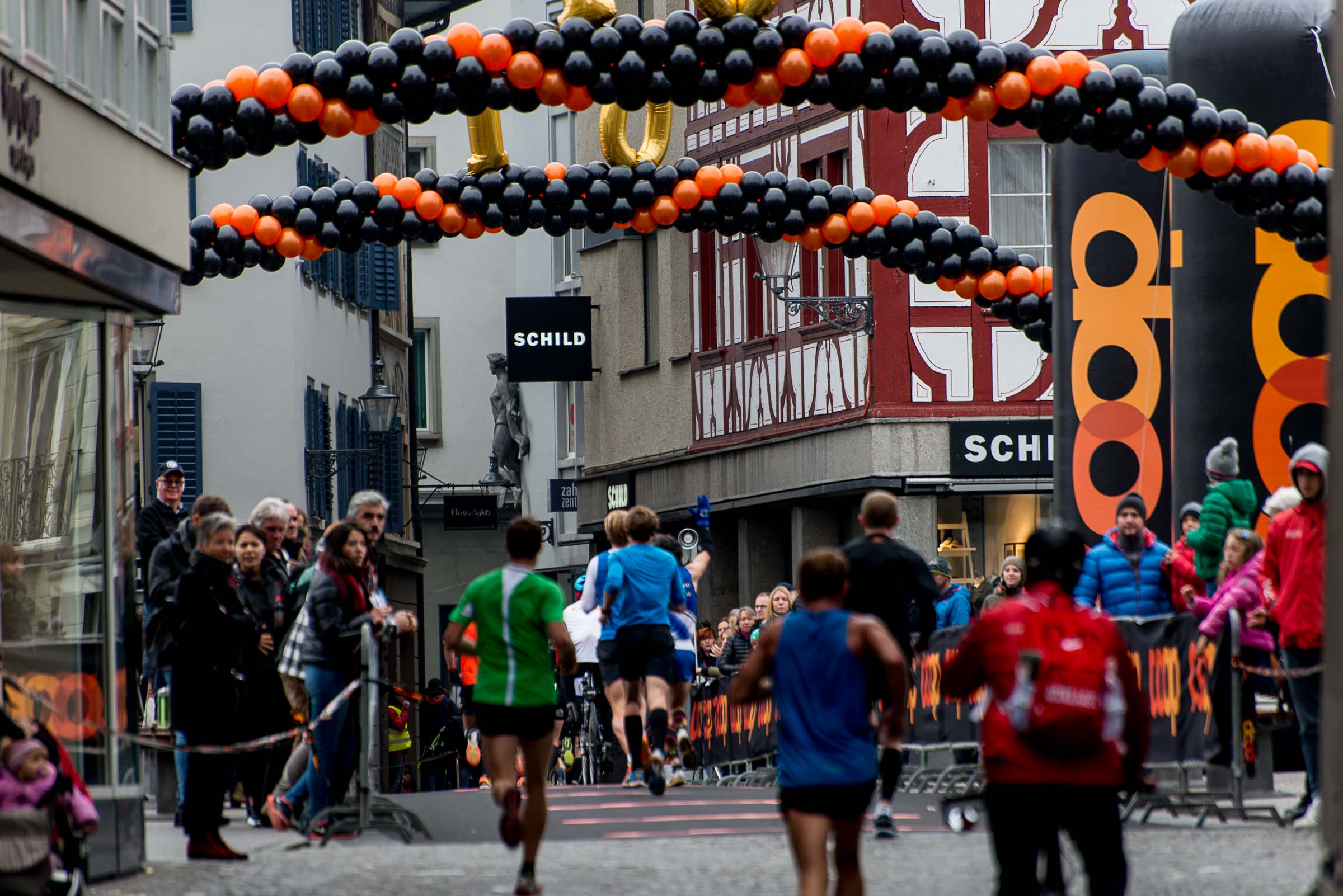 Für den Spitzenläufer ist die Sicht auf die aktuelle Zwischenzeit immer frei. Ob er die goldigen 10 Jahres Jubi Zahlen über der Reussbrücke gesehen hat oder nur seine Zeit?