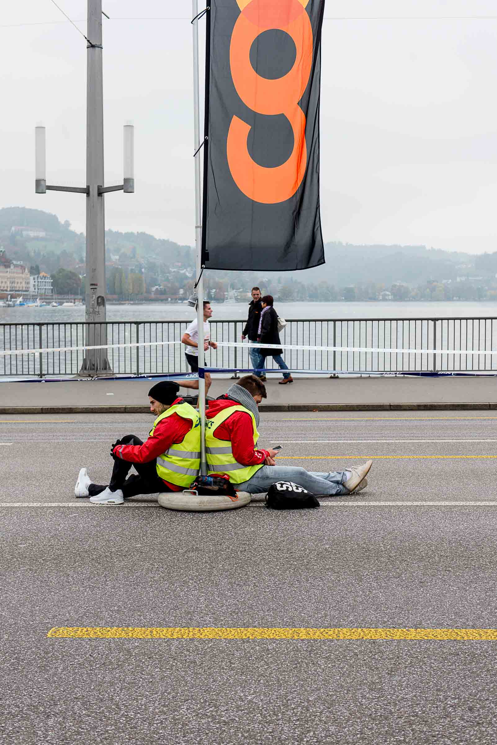 Rolf testet heute seine neue Nikon D5, weiss aber nicht genau, wann seine Protagonisten durch die Strassen flitzen. Urs hat sein Hochstativ mitgenommen und schiesst drohnenartig Photos. Andy fährt mit Velo, Bockleiter und Photoausrüstung durch Luzern, und schiesst unter Mithilfe von wegweisenden Lotsen Photos.