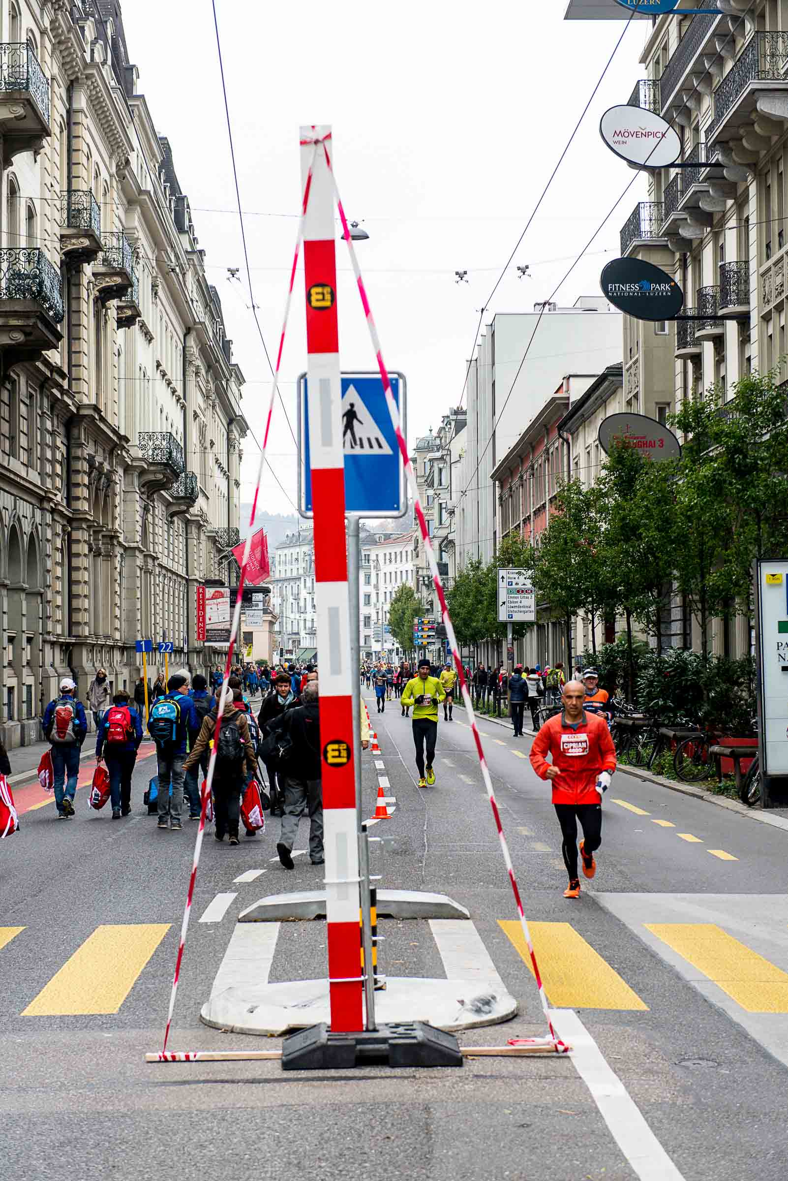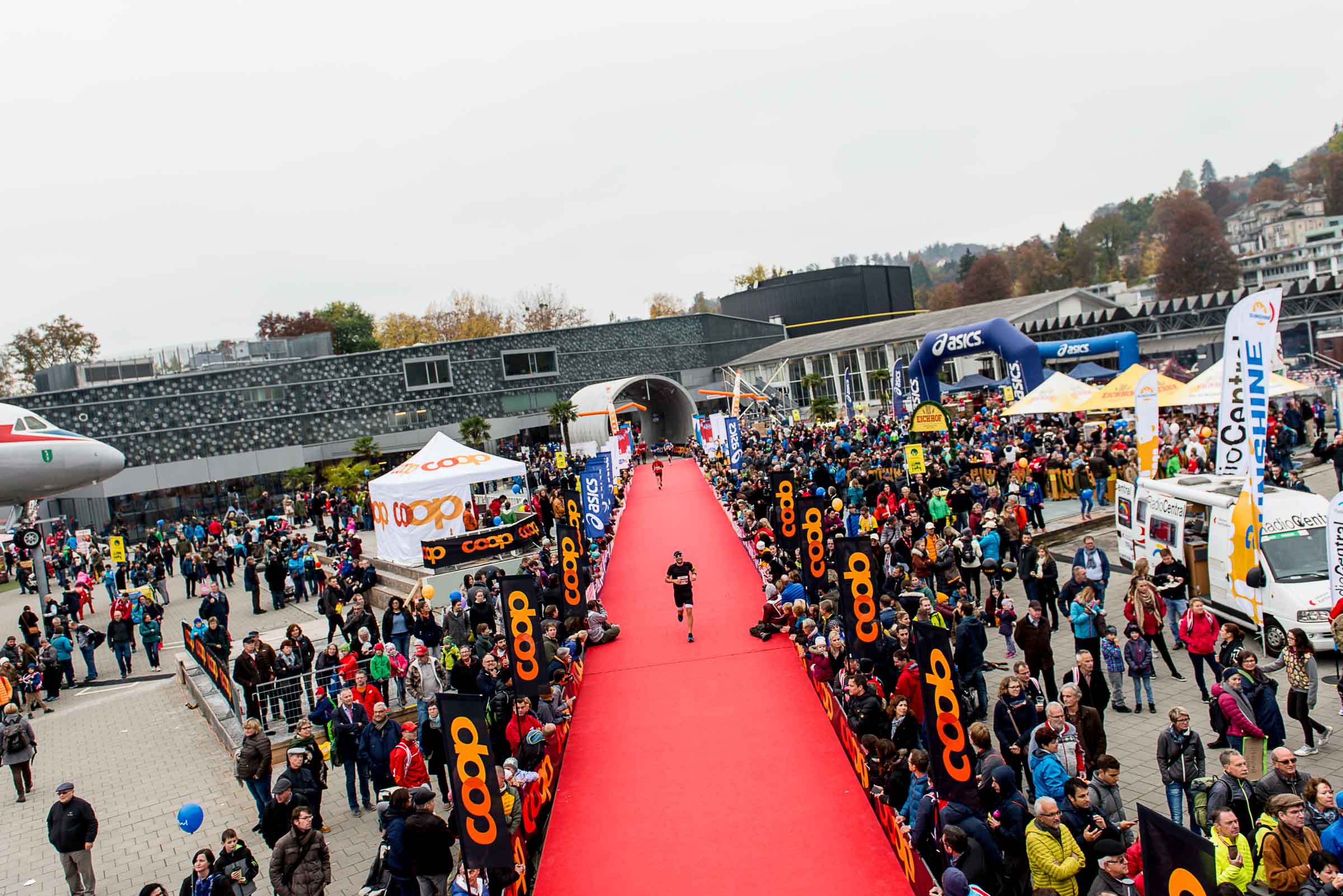 Das Ziel ist im Verkehrshaus, vorbei an Verpflegungs-Posten, Kleider-Depots, WC-Posten, Güsel-Posten. Für die Halb- und Marathon-Teilnehmer ist mit dem Gang durch die (Gotthard) Röhre der Schlusspunkt erreicht.