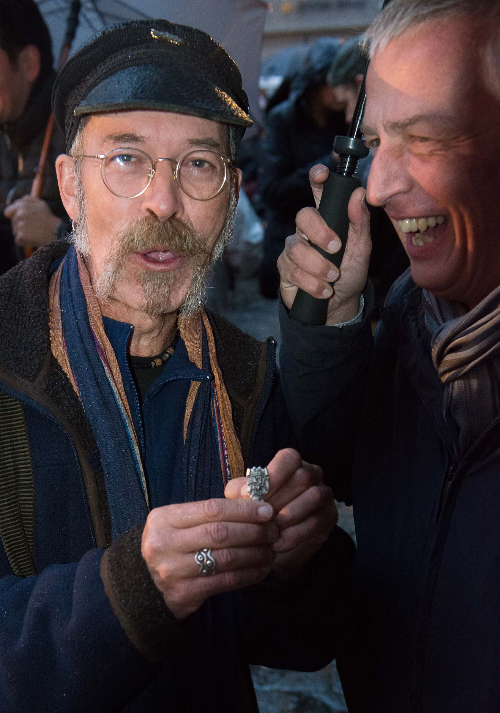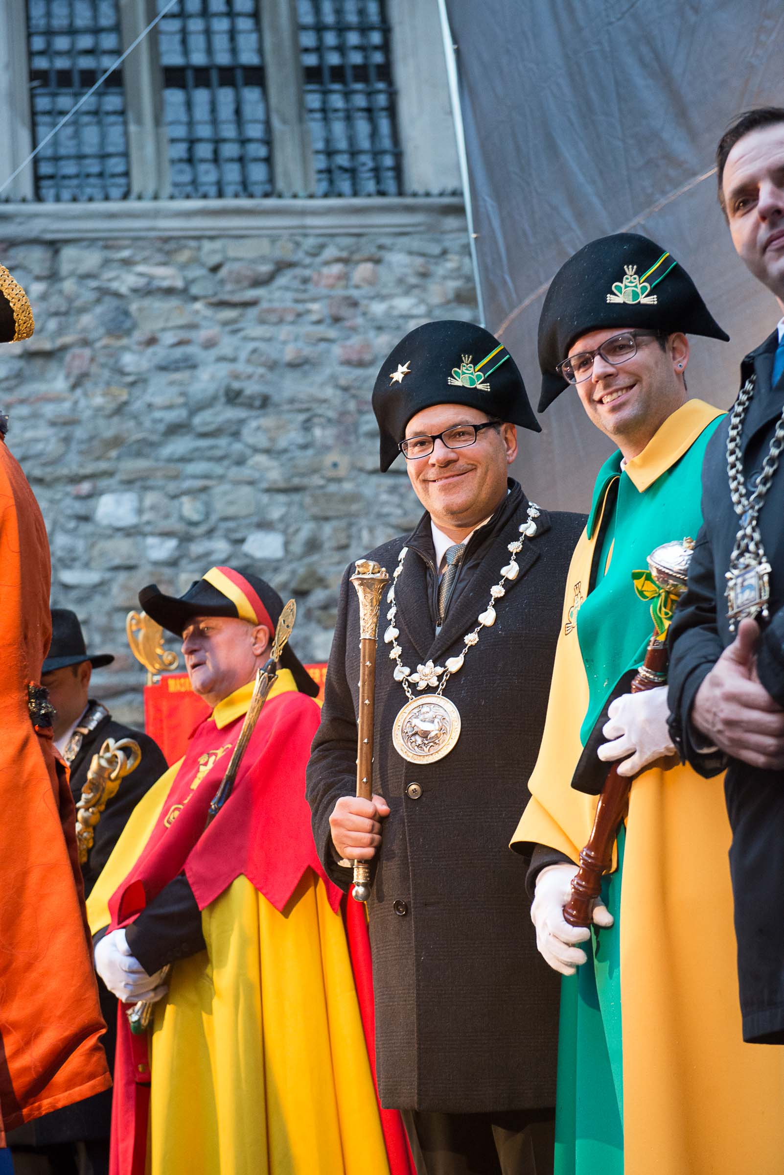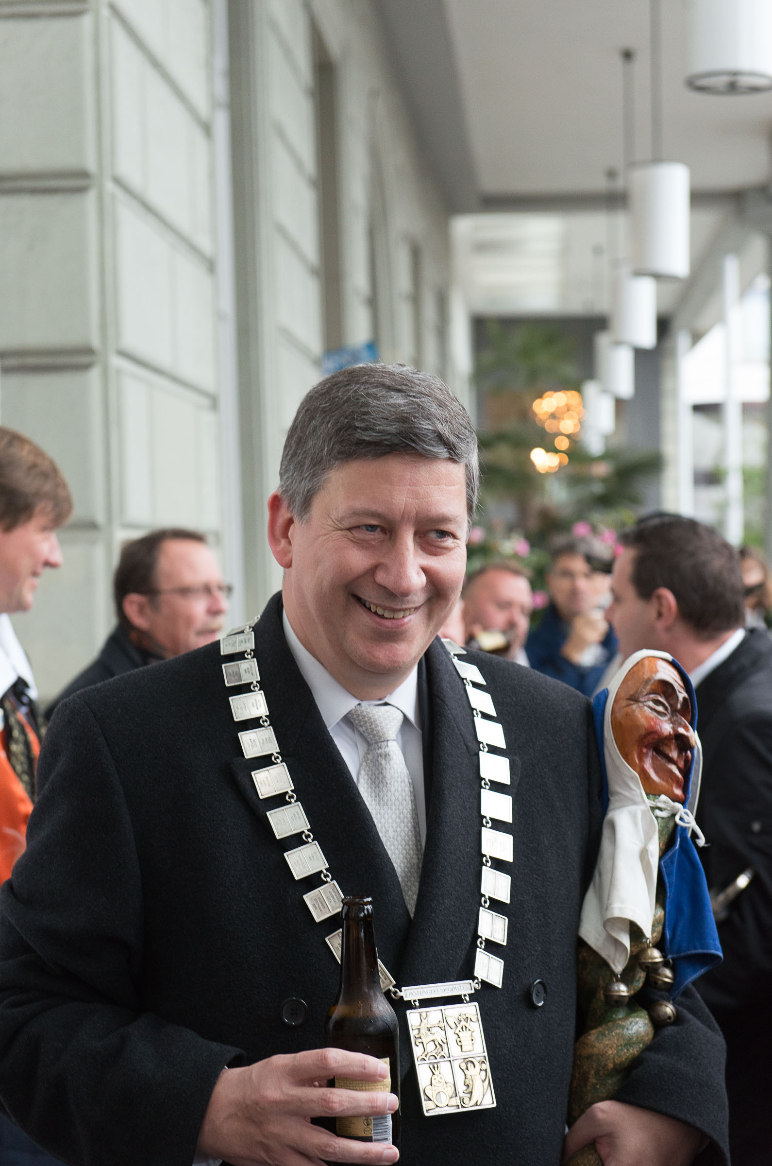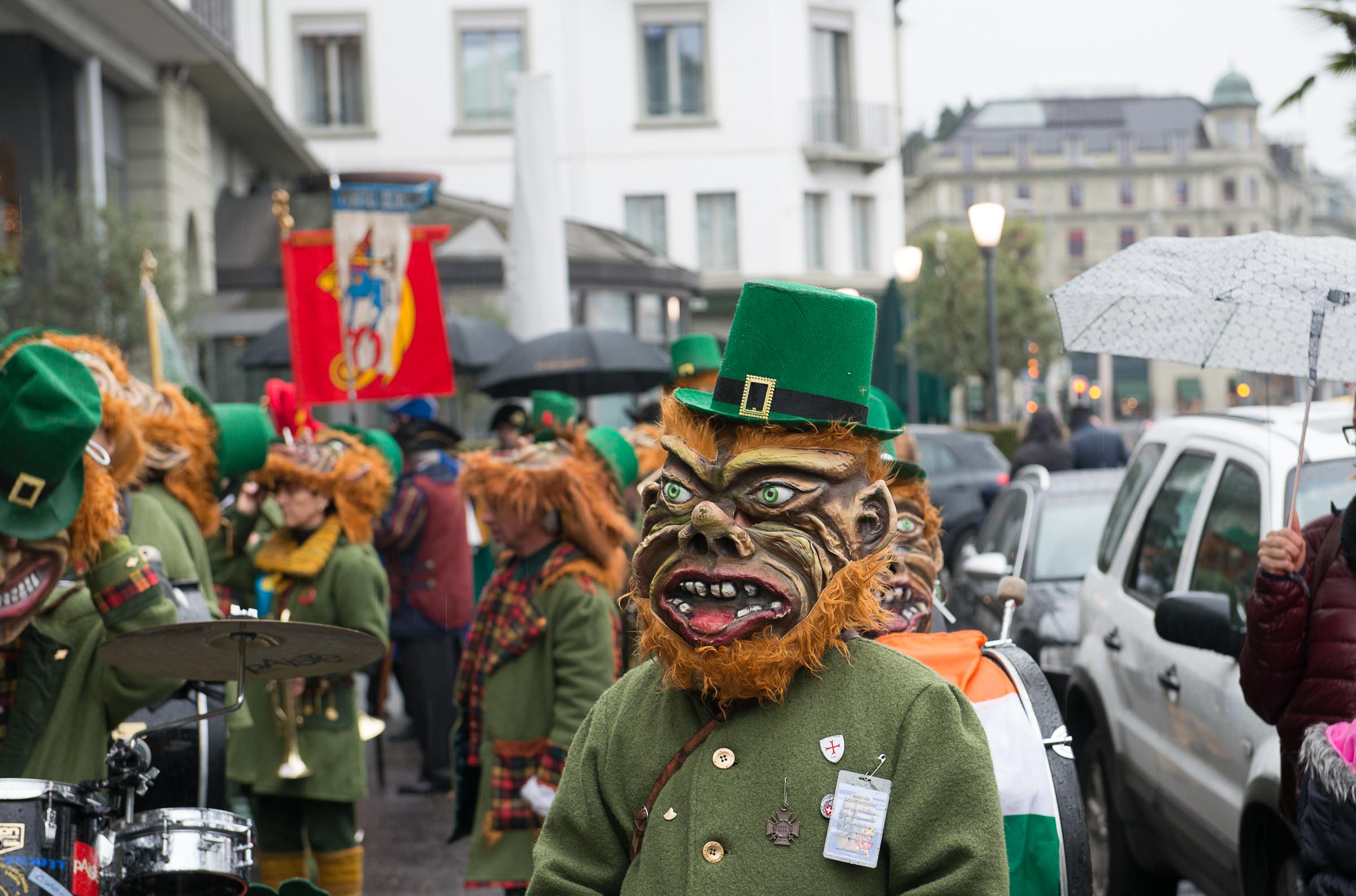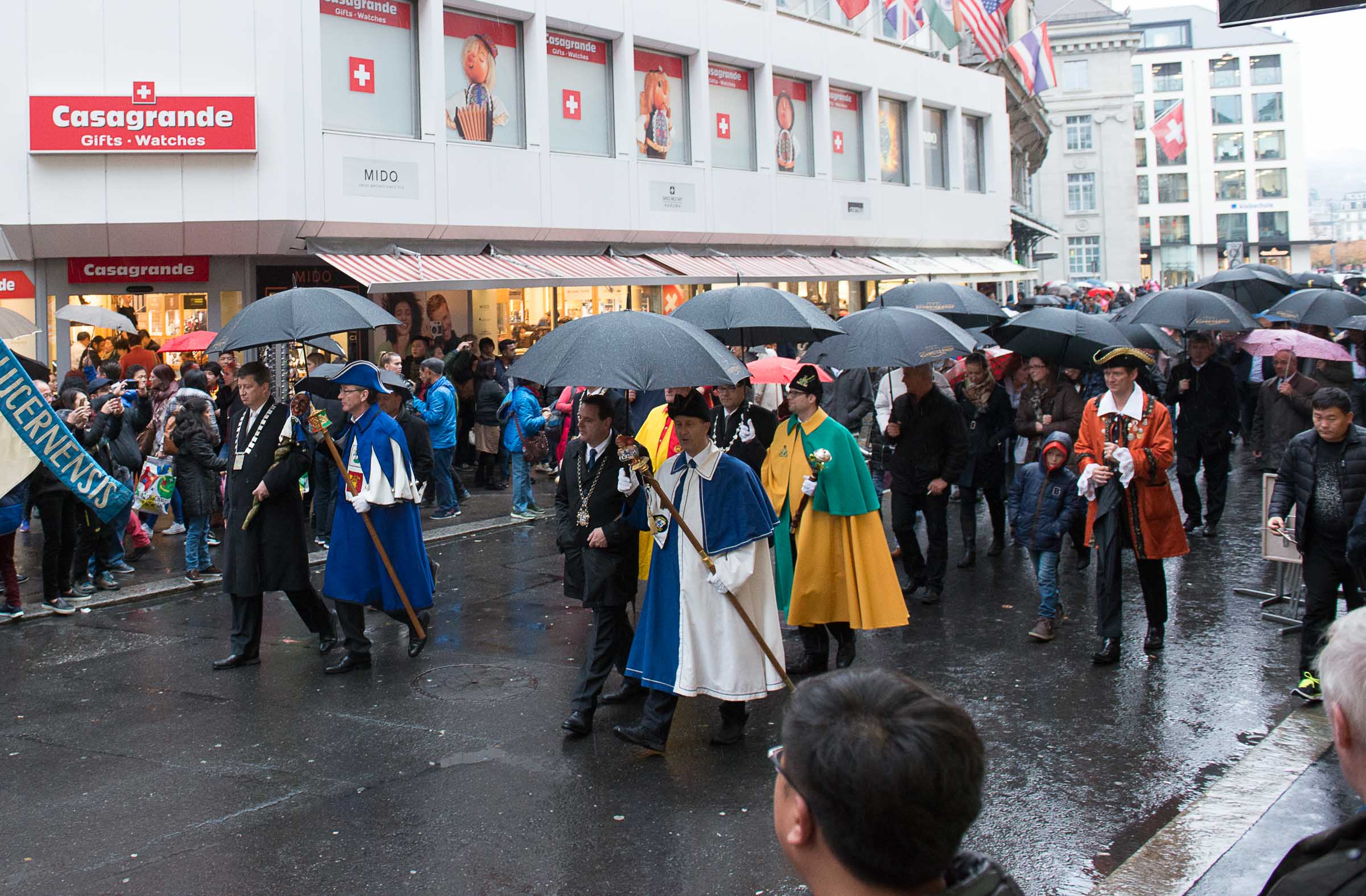 Ja, geregnet hat's an der diesjährigen Luzerner Fasnachtsplaketten Präsentation. Speziell die Enthüllung auf dem Kornmarkt war Schwerarbeit.