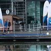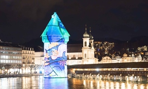 Die Photographen steigen von den Bergen (Davos) hinunter und steigen gleich auf Leitern für die perfekte nonHelikopteraufnahme.