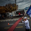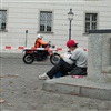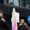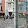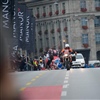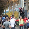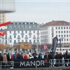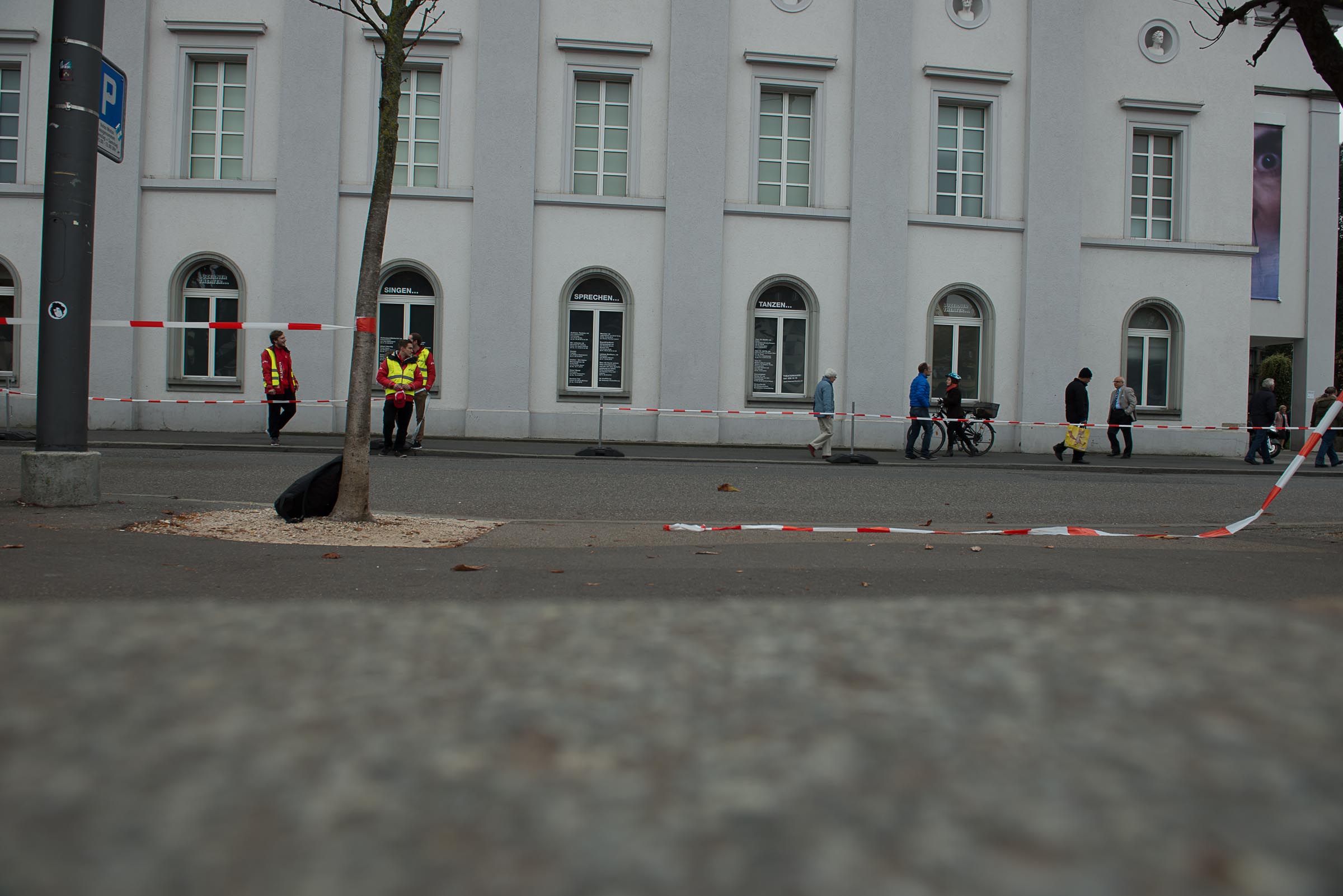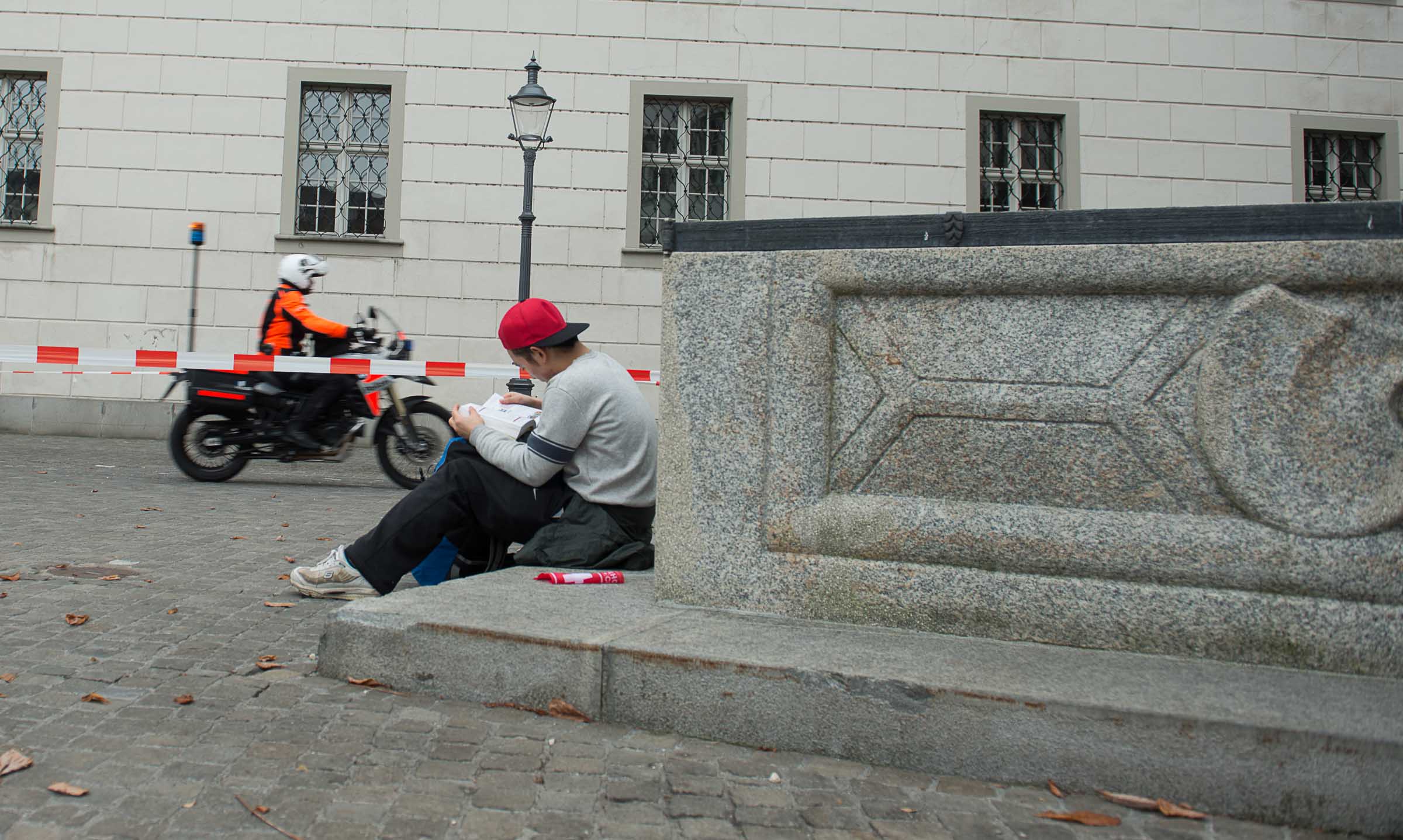 Und so stolzieren sie am Schwanenplatz um die Kurve inkl. Fahne.