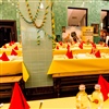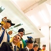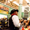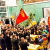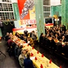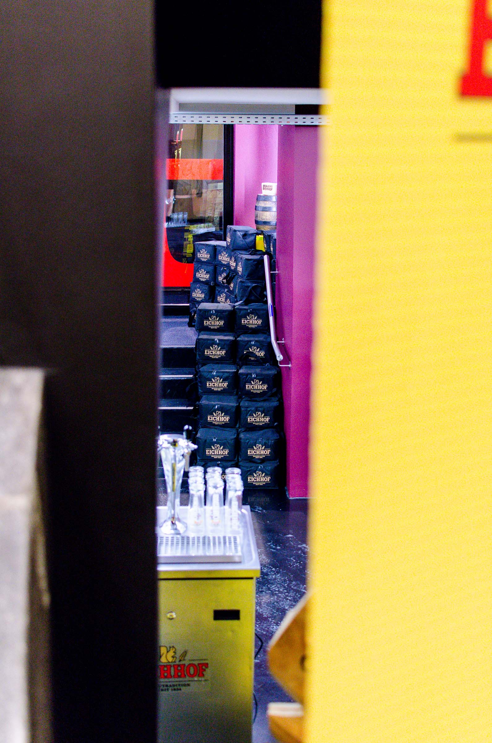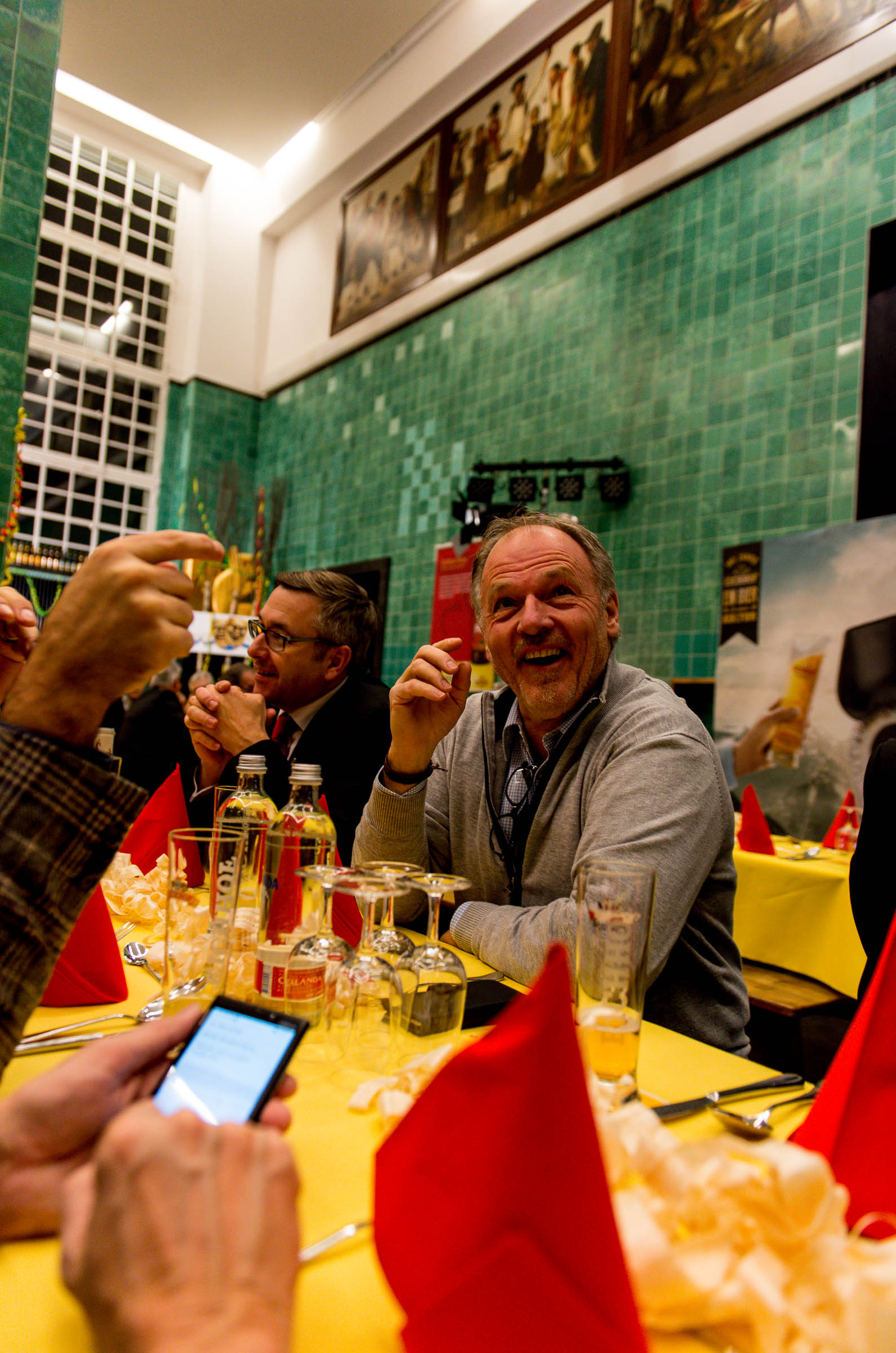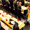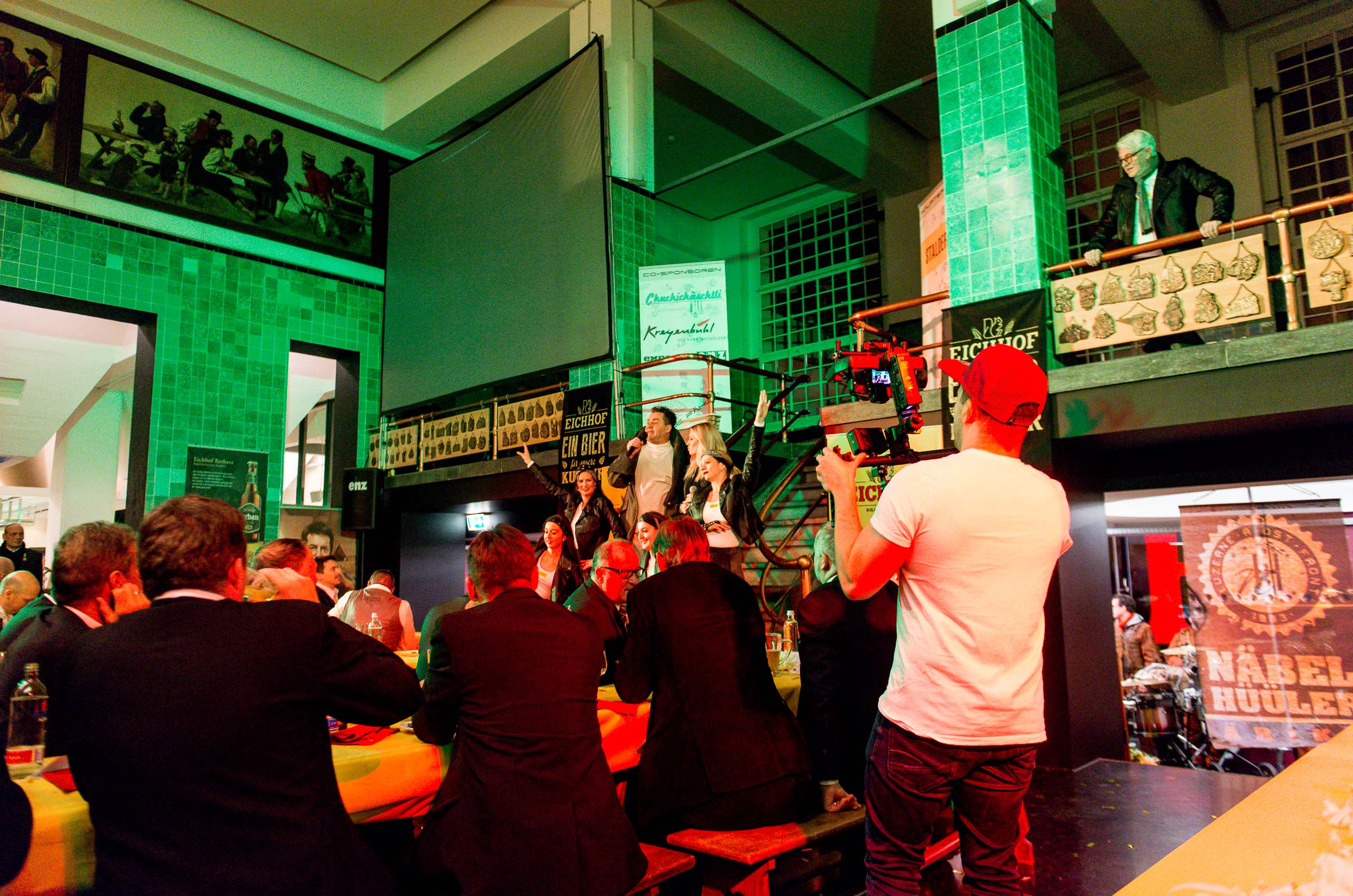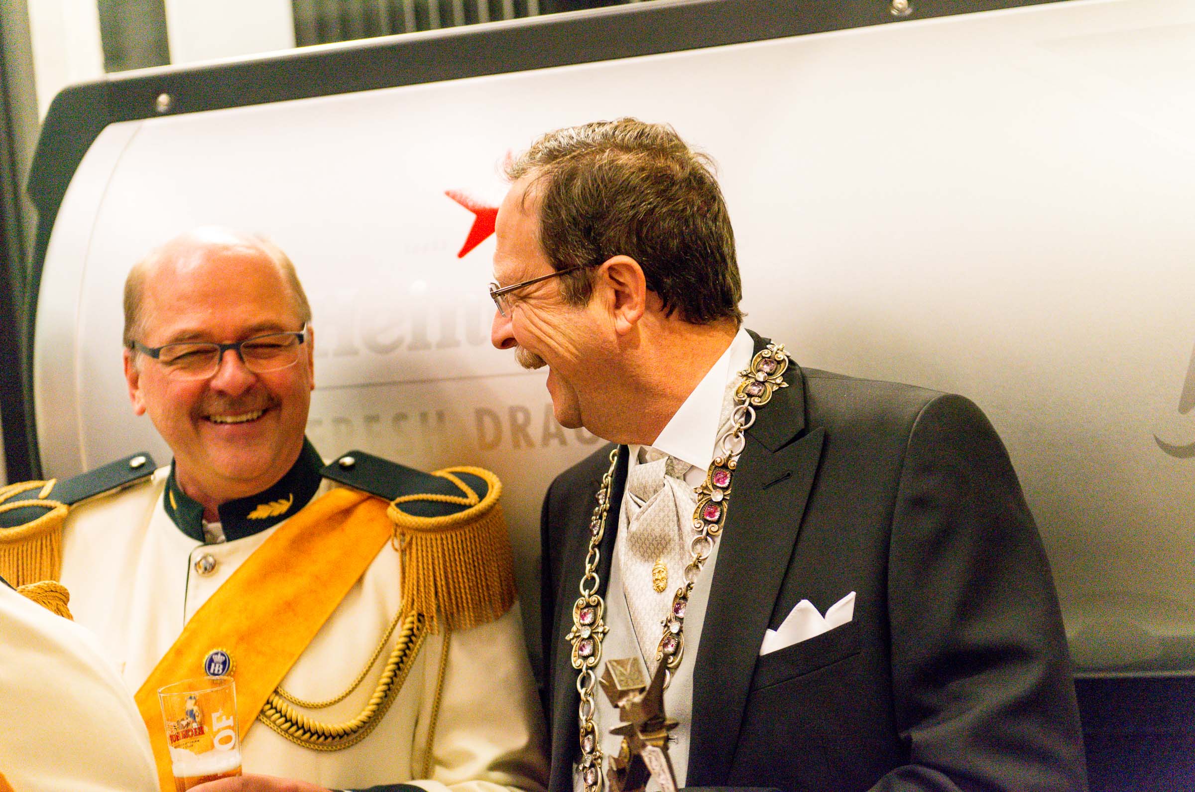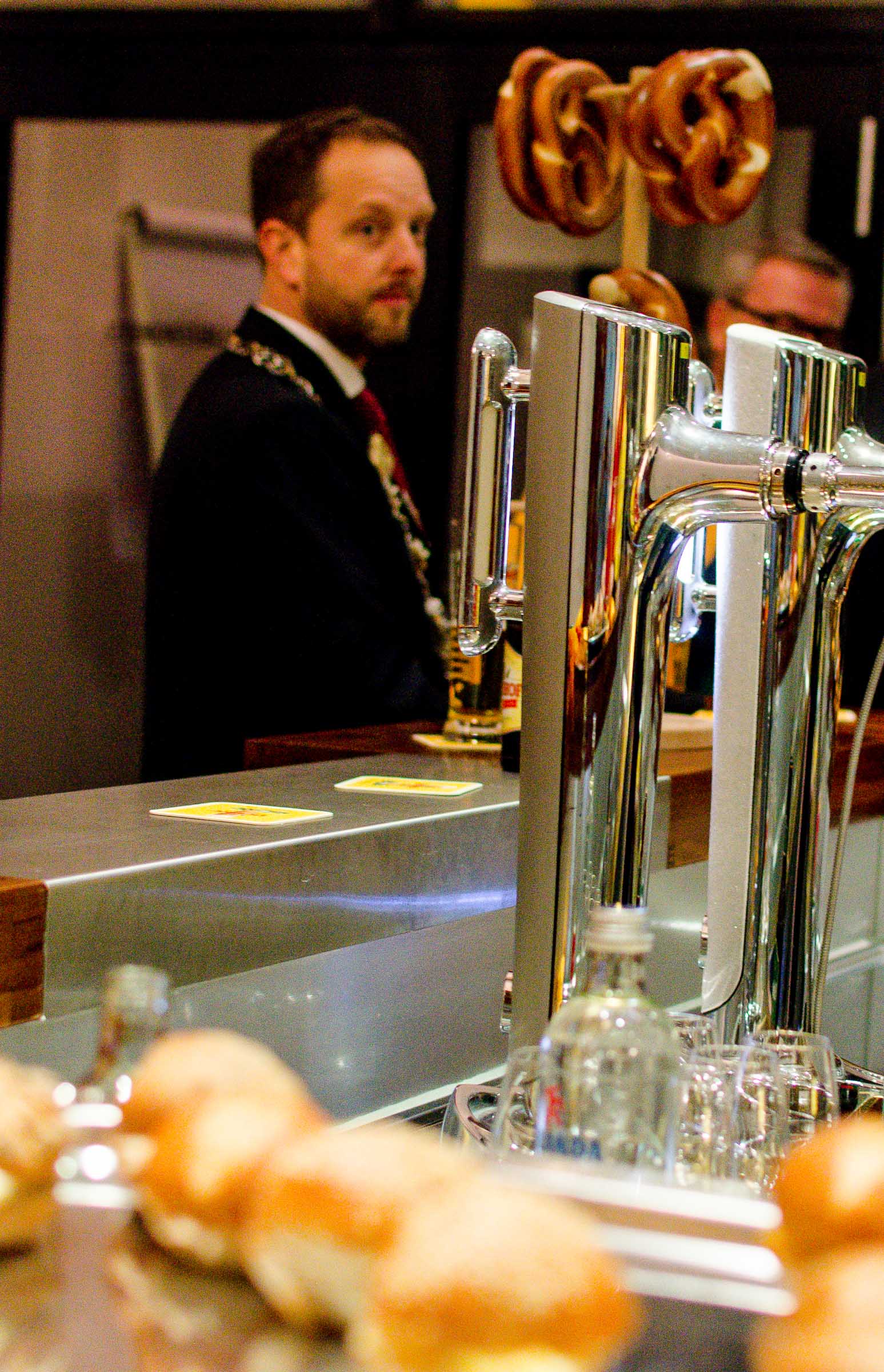 Vor dem grossen Einmarsch werden alle Details geprüft. Der Weibel hilft natürlich. Die Gäste sitzen, noch fehlen die Fasnachtsgewaltigen. Einmarsch mit Weibel und Bannerherr und Musik. Falls kein Fähndrich da ist, dann schreitet der Chef (LFK-Präsideten) gleich mit vier Bannerträgern in den Schalander ein. Man gönnt sich etwas.