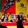 Das Gedränge auf dem Podest ist gross bis jeder seinen Platz hat. Und wenn alle sitzen kann es ja los gehen mit den Reden.