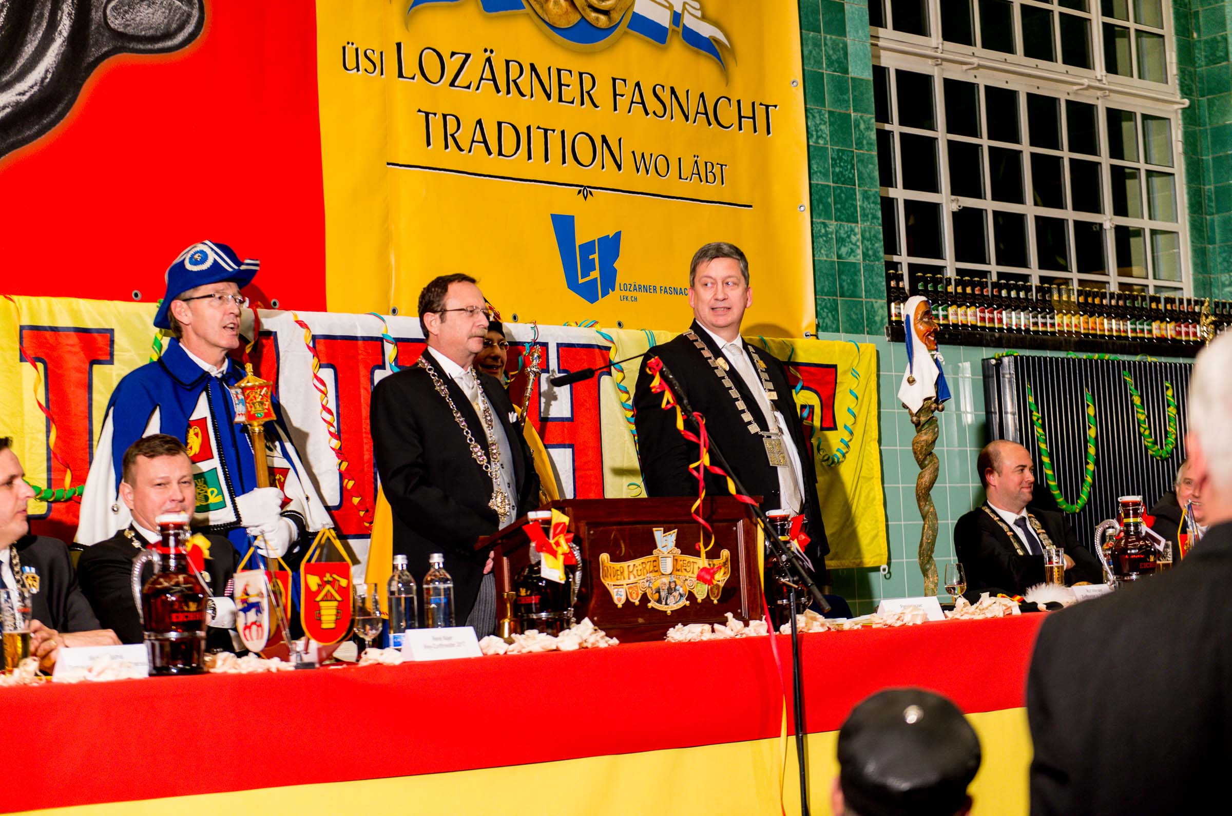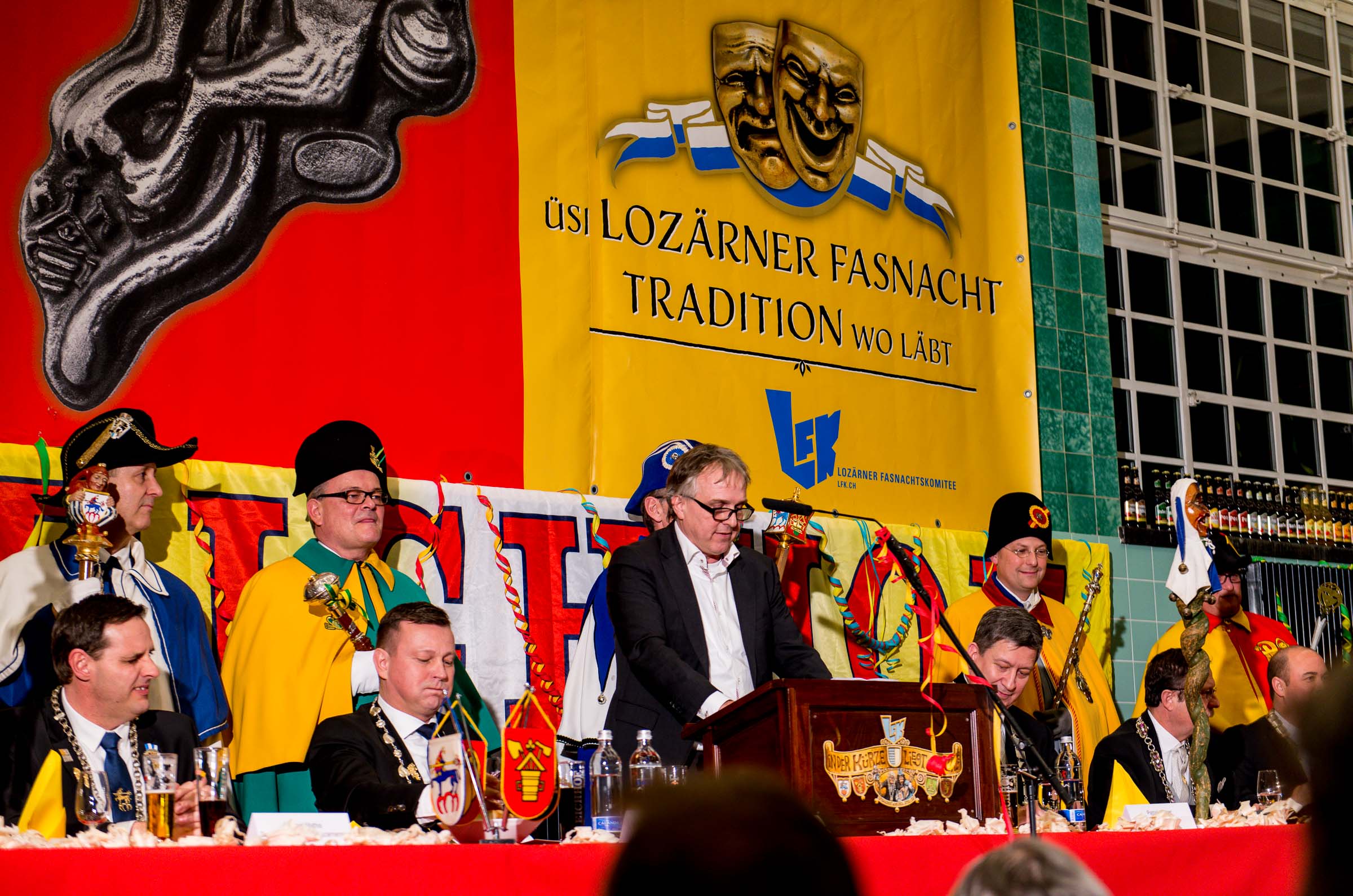 Nach 16 Jahren Weibel bei der Fidelitas Lucernensis ist das für Herbert Brunner ein Grund ans Mikrophon zu treten und sich für die vielen schönen Momente an der Lozärner Fasnacht zu bedanken.