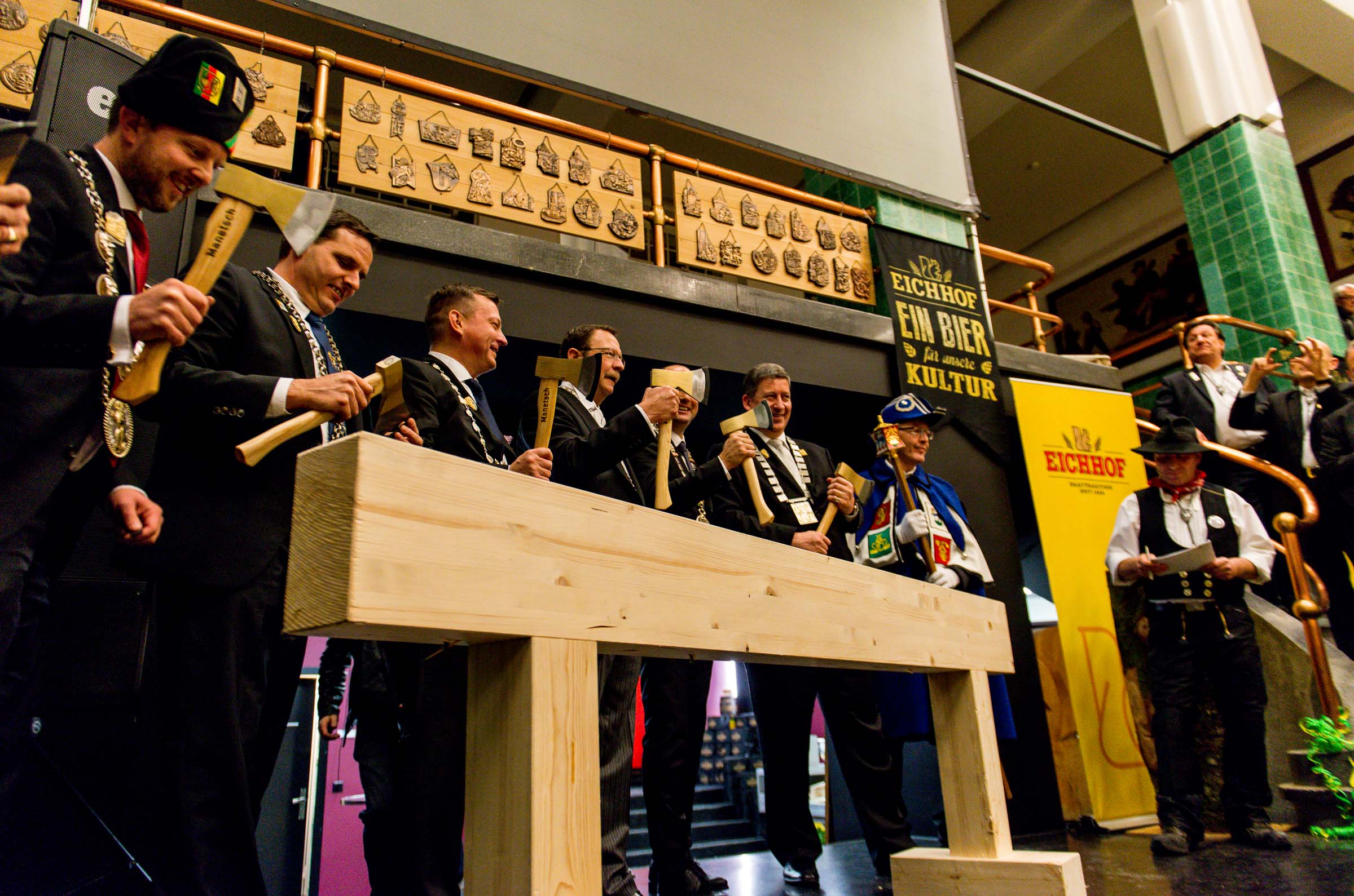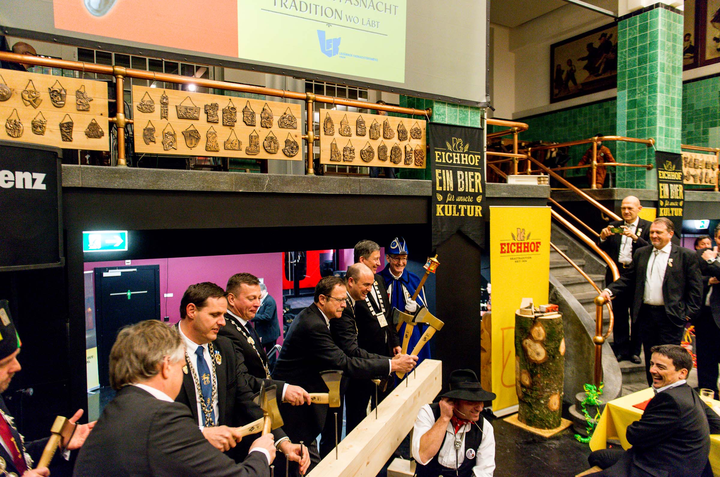 Welcher Fasnachtsgewaltige schlägt am schnellsten den Nagel ein? Und welcher hat den Nagel verhauen und den Photograpenh getroffen?