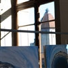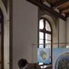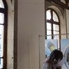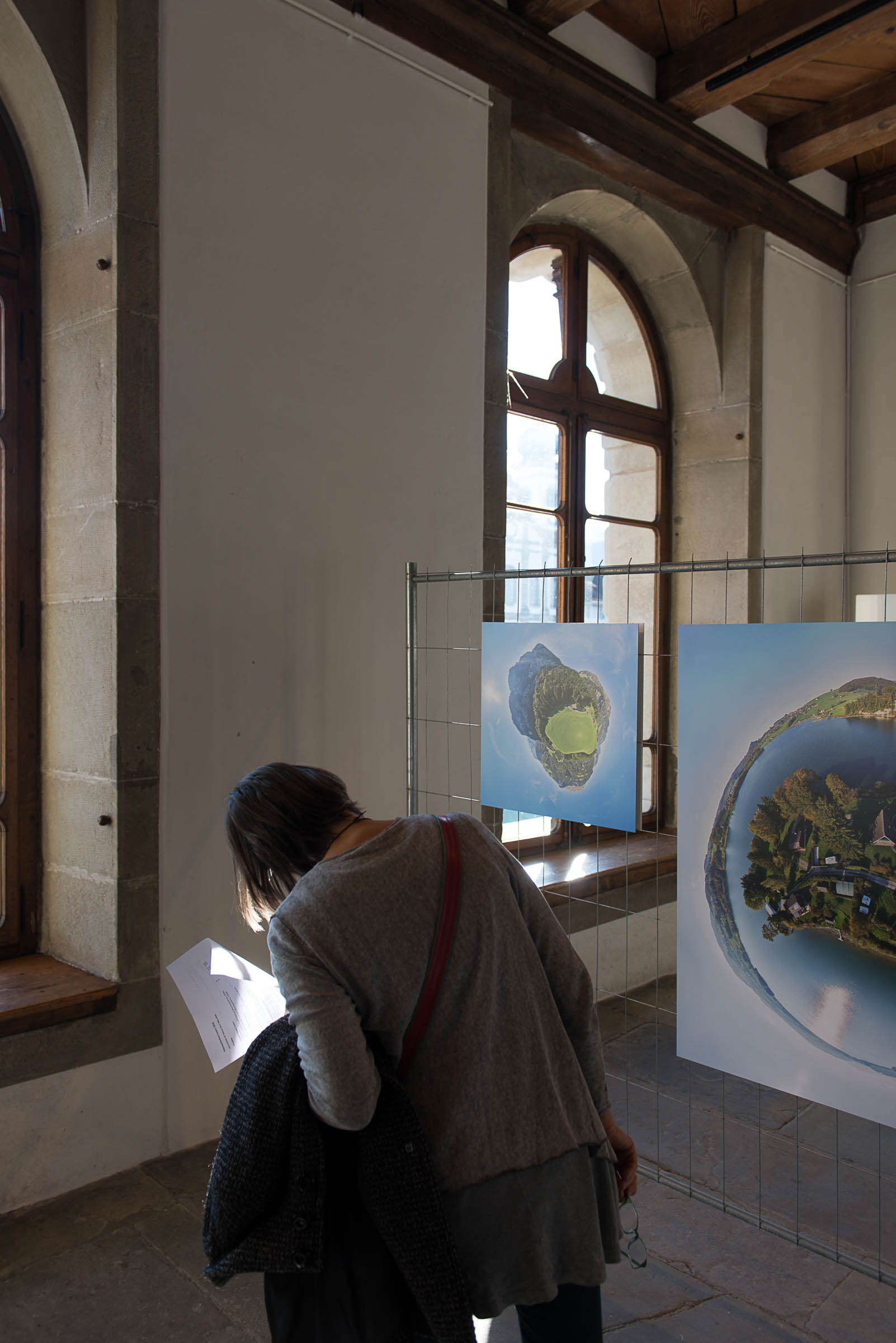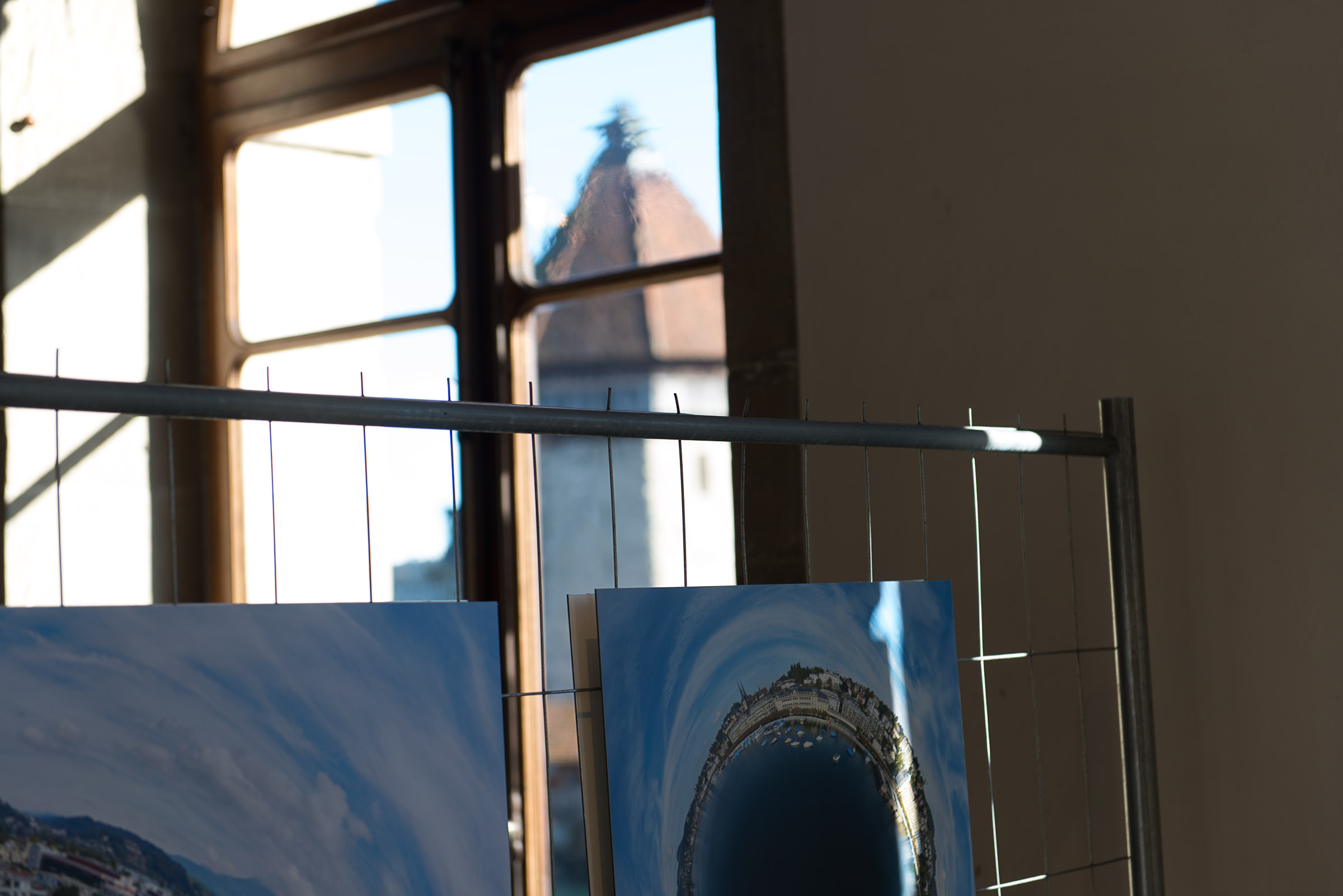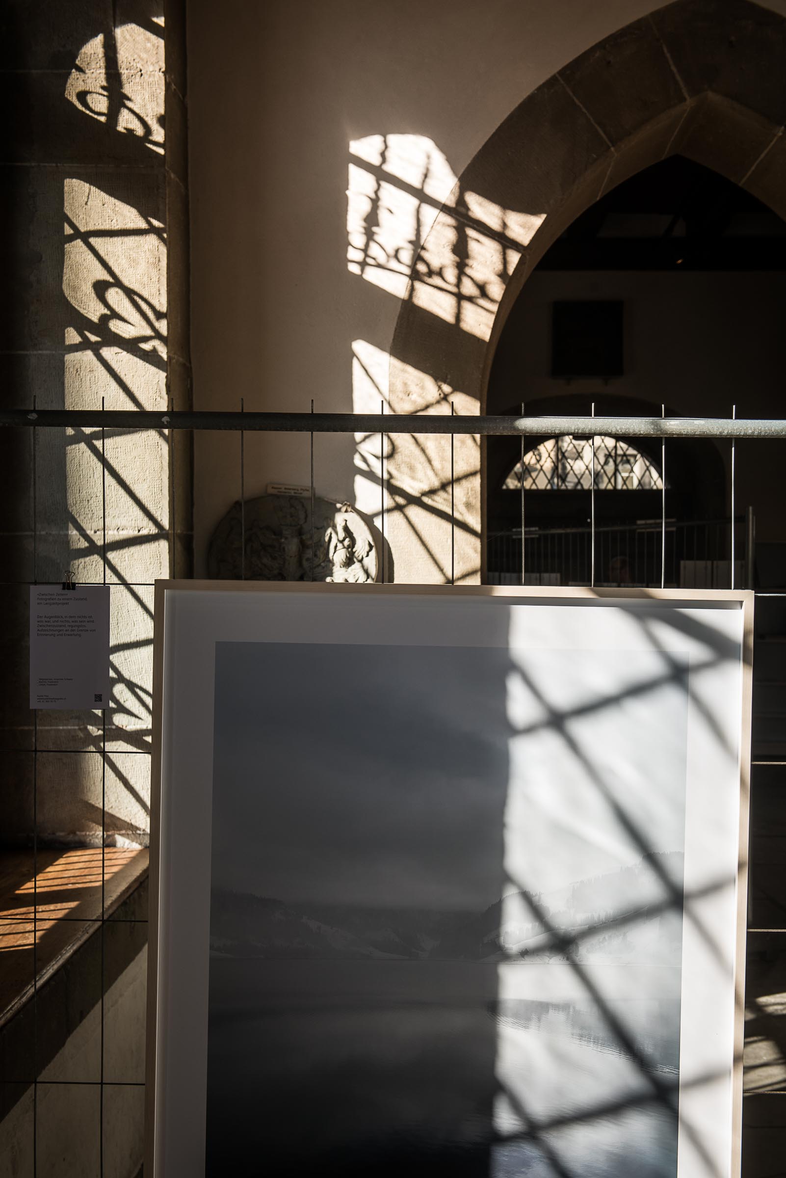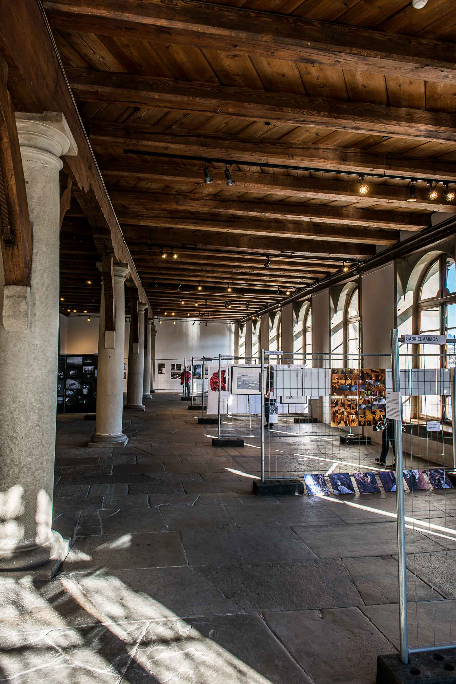 Die Photos sind in der Kornschütte an Gittern aufgehängt.