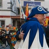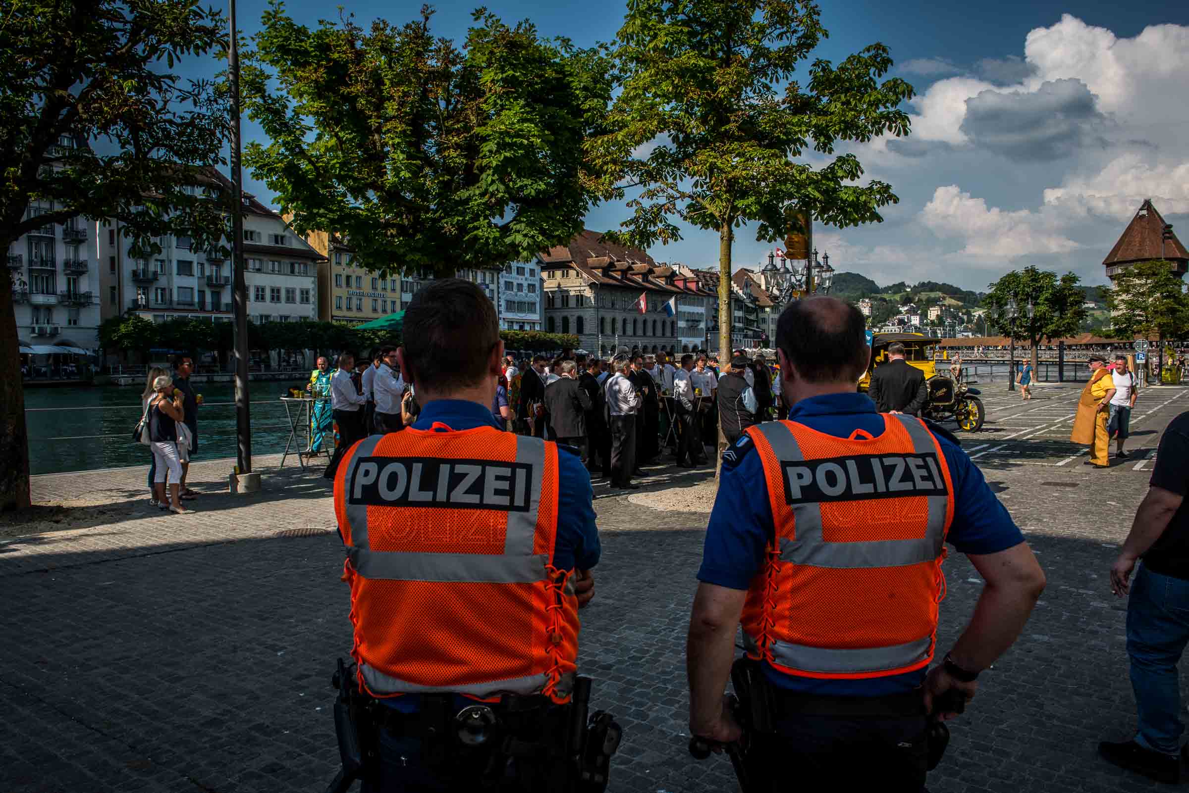 vor der Jesuitenkirche inkl. Apero. Touristen die vorbeiziehen und Einheimische die unsere Chipsli wegschmausen. Hoffentlich reichts für die über 40 aktiven Delegierten, die erwartet werden. Für Nachschub ist gesorgt, der Bierwagen Eichhof, dieses Jahr 100 Jahre jung und mit flotten 29 km/h pro Stunde noch unterwegs, hat noch einige Fässli auf der Ladebrücke für die durstigen Kehlen. Und das Photosujet, alle wollen abgelichtet werden, auch die beiden Weibel in den blauen Gewändern.