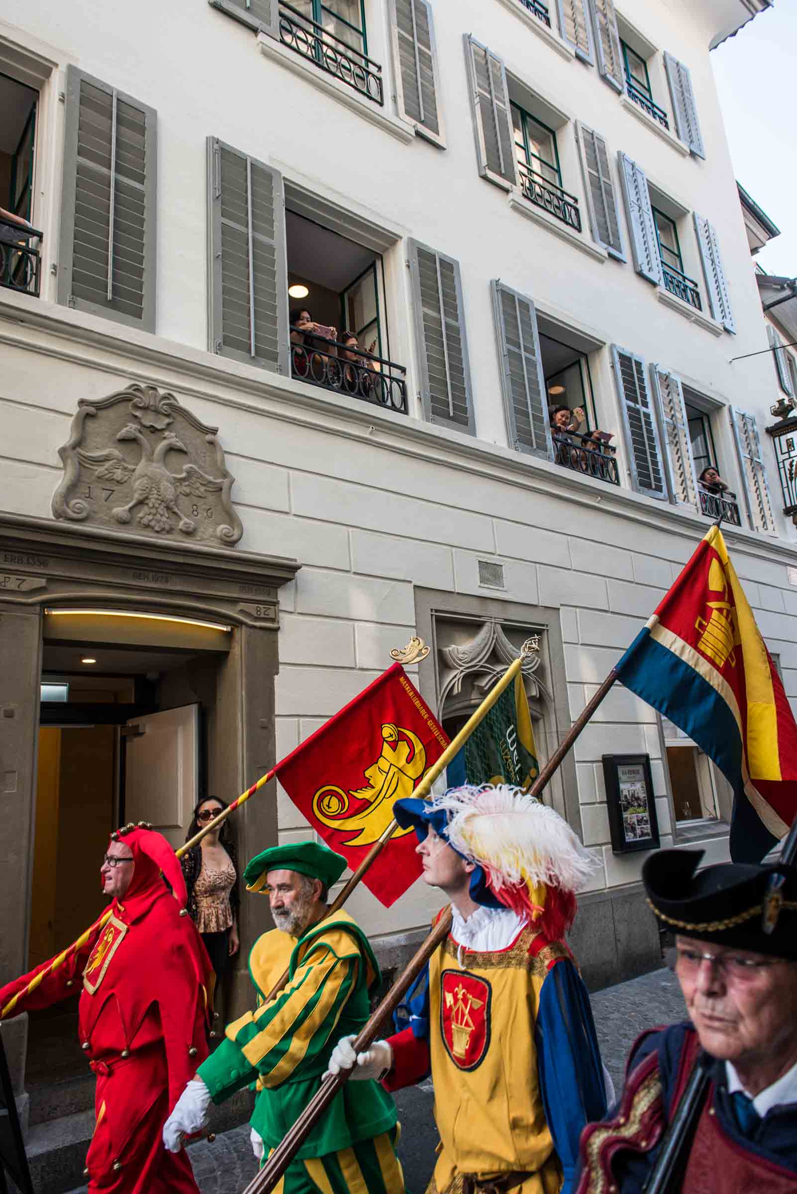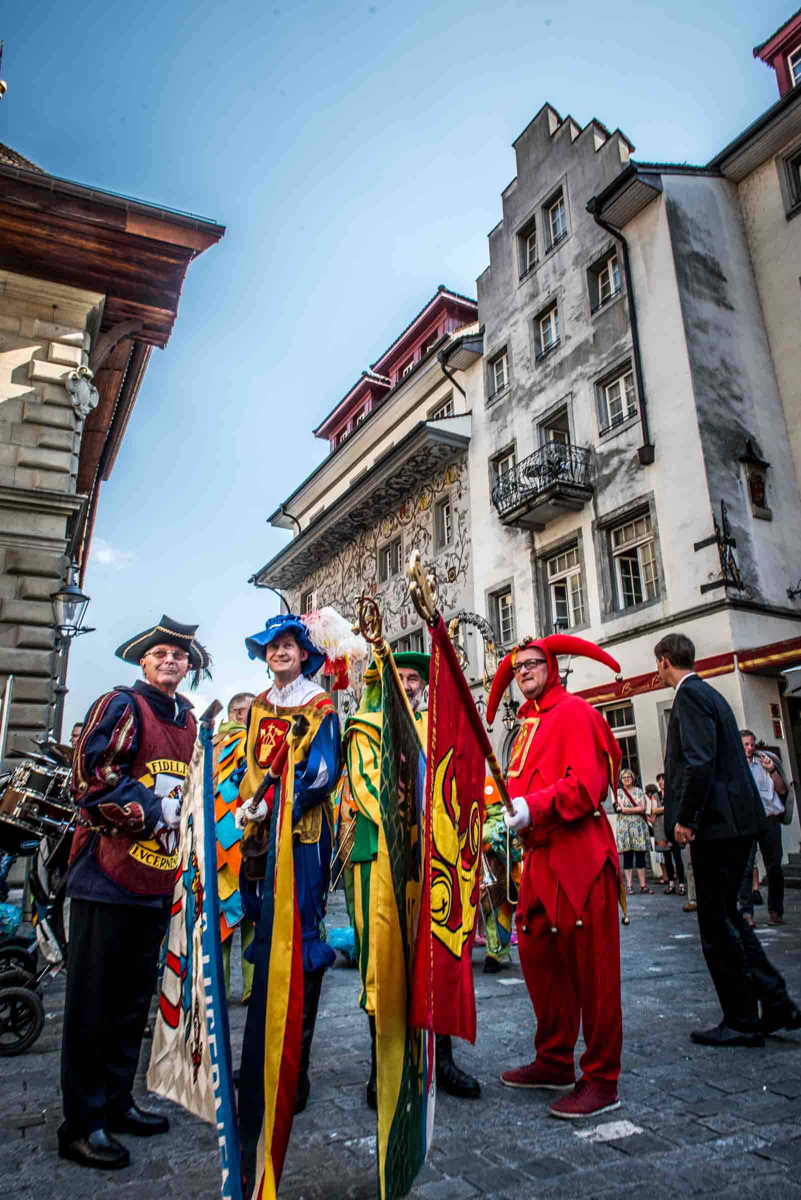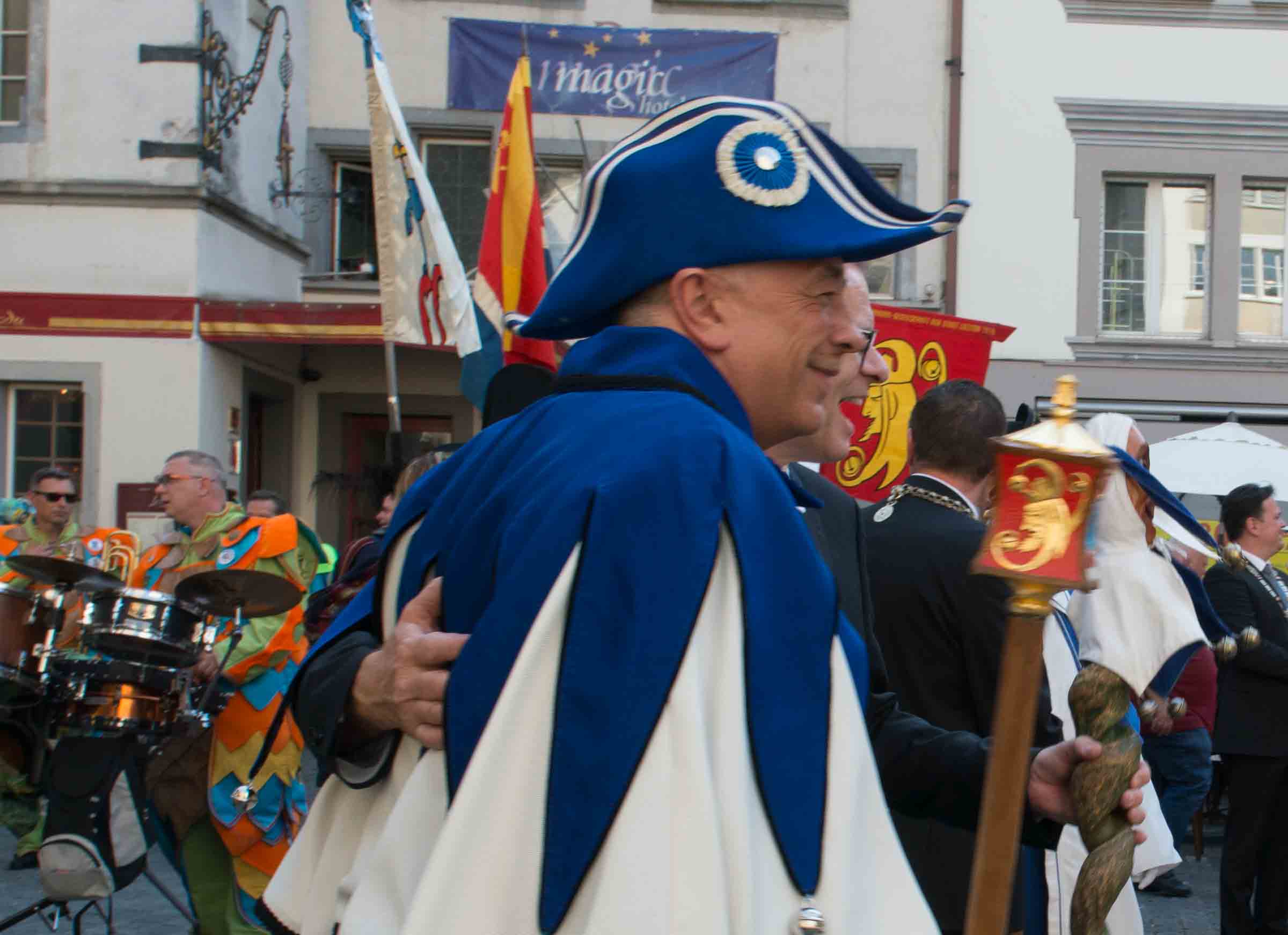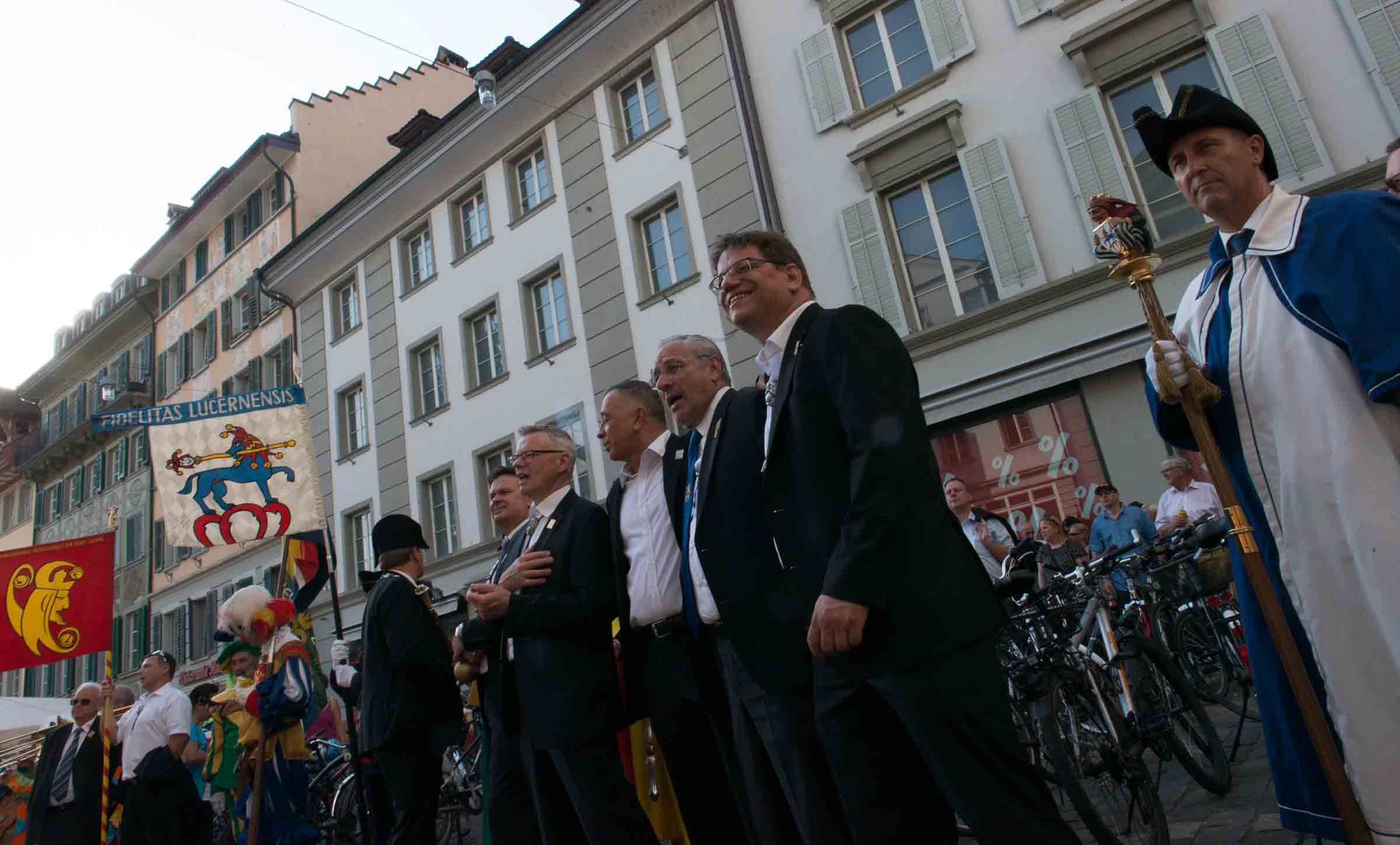 Ich darf nun meinen Schirmherrn verlassen. Der Weibel, Bruno Wespi, wird sein Gewand wieder abziehen dürfen. Ich gelange in die Hände des Präsidenten der Fidelitas Lucernensis. Durch die Kapellgasse, mit Halt beim Stadtkessel,