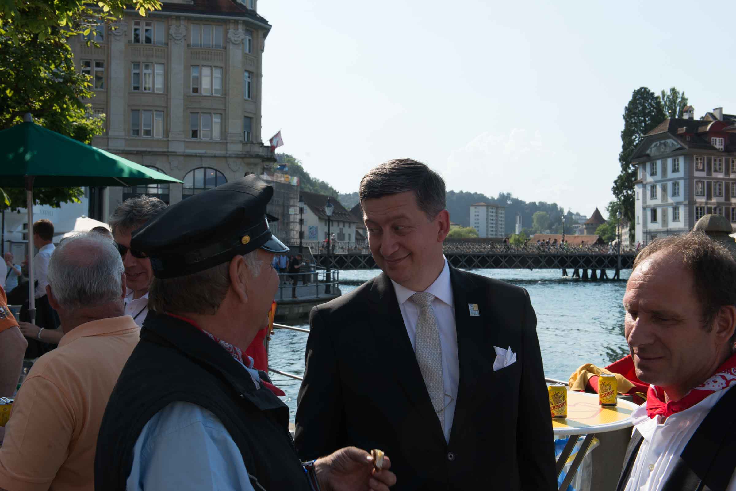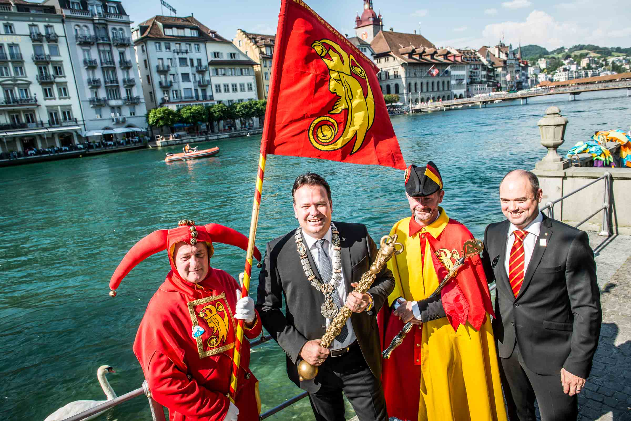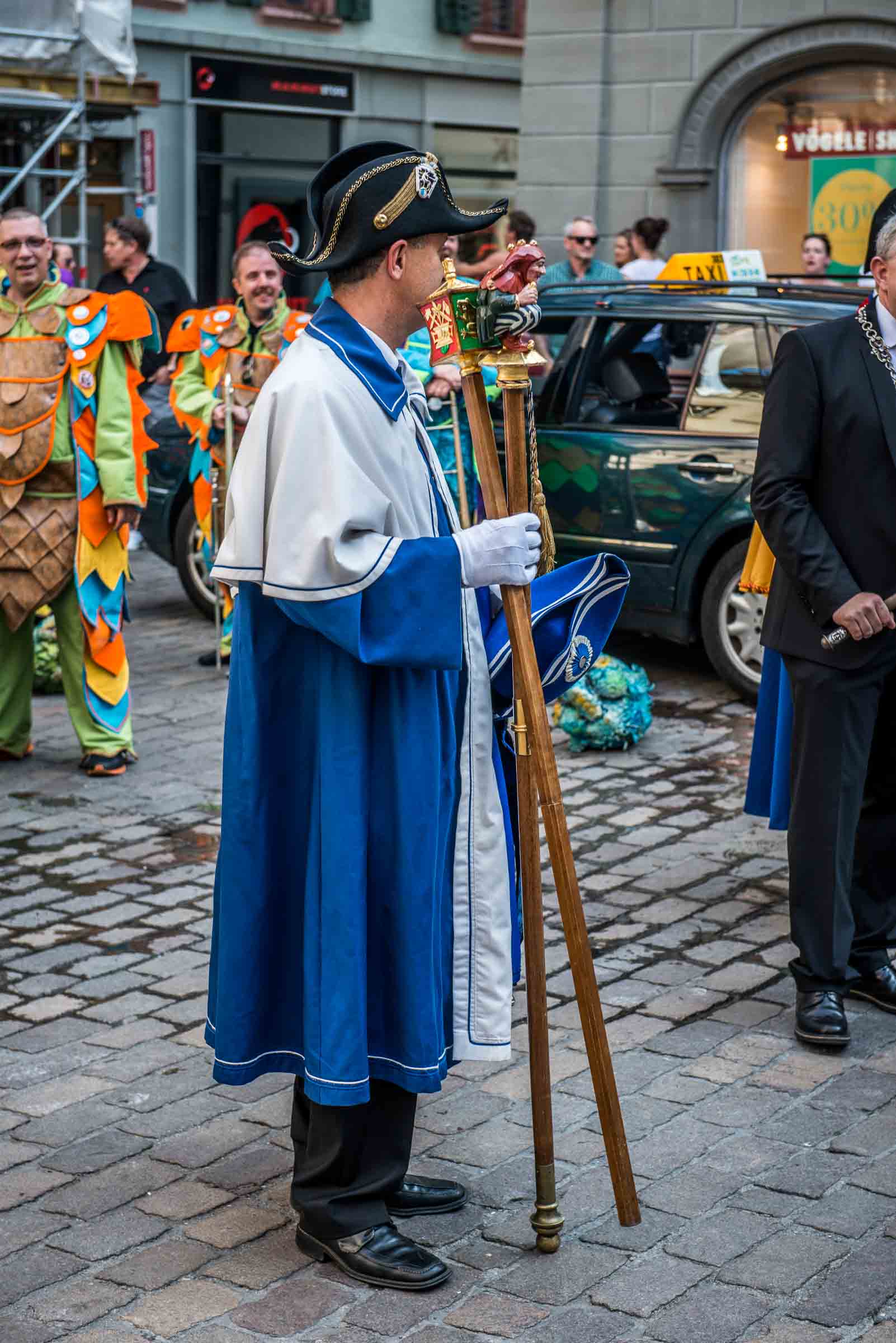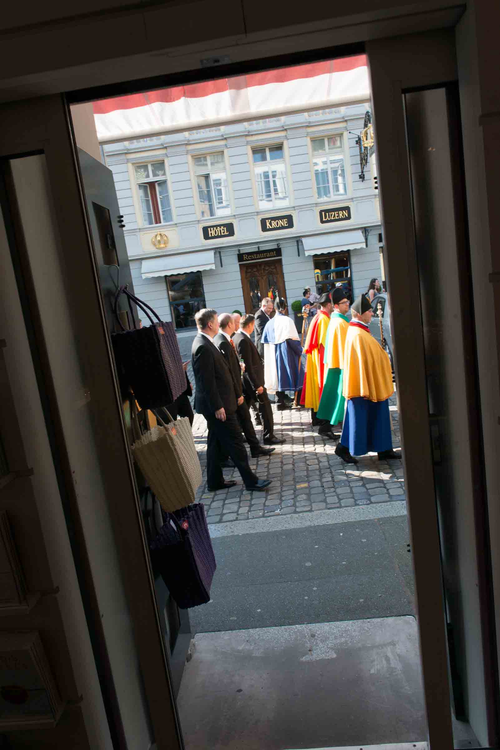 Ich darf nun meinen Schirmherrn verlassen. Der Weibel, Bruno Wespi, wird sein Gewand wieder abziehen dürfen. Ich gelange in die Hände des Präsidenten der Fidelitas Lucernensis. Durch die Kapellgasse, mit Halt beim Stadtkessel,